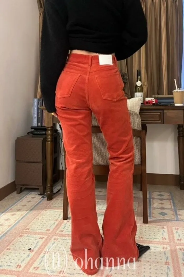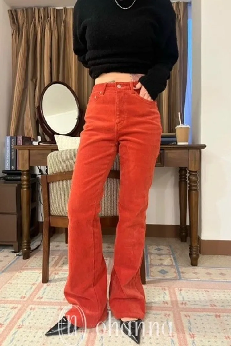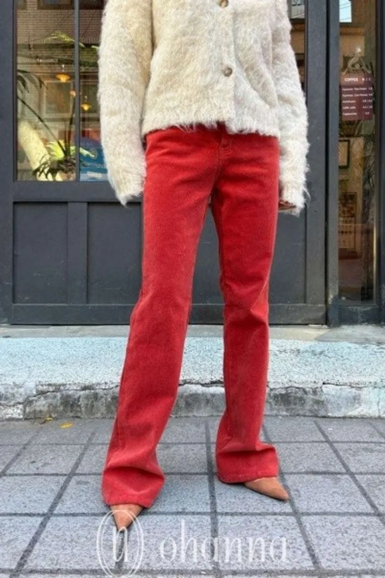D015橘紅素面靴型褲