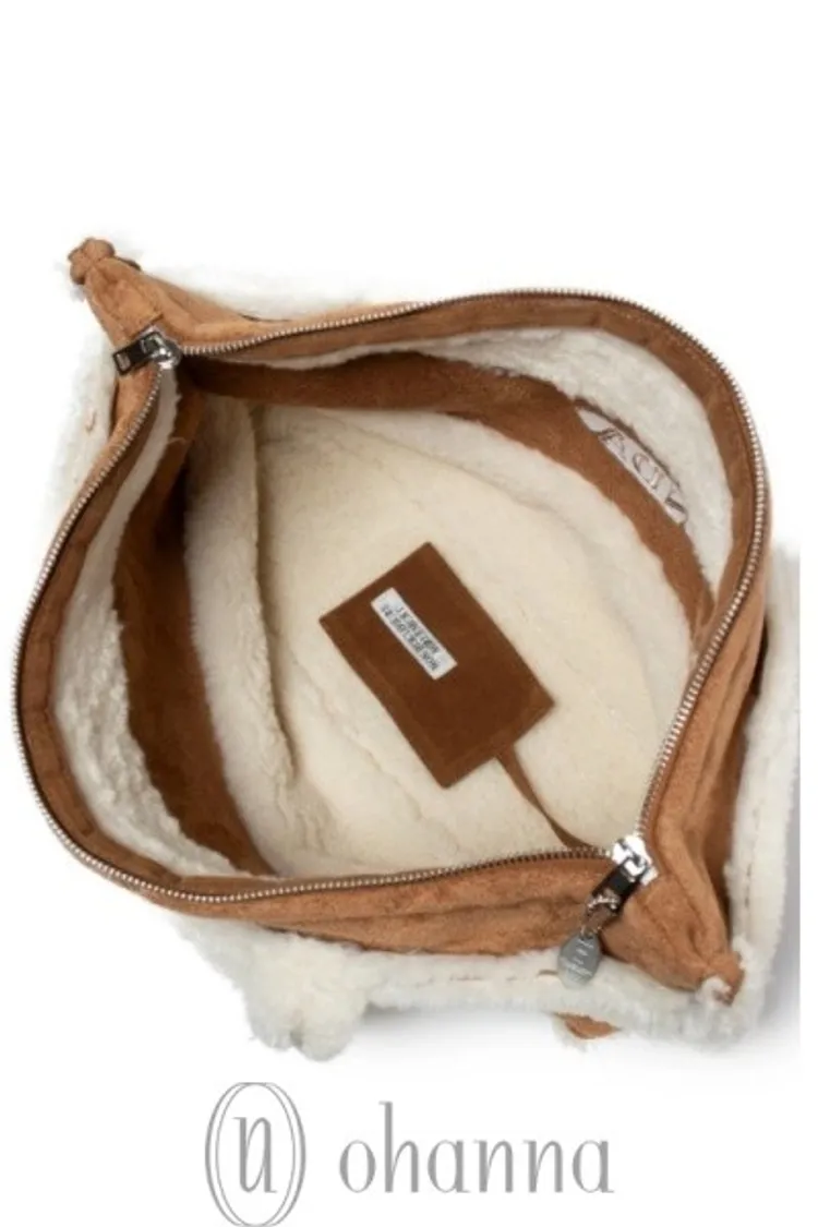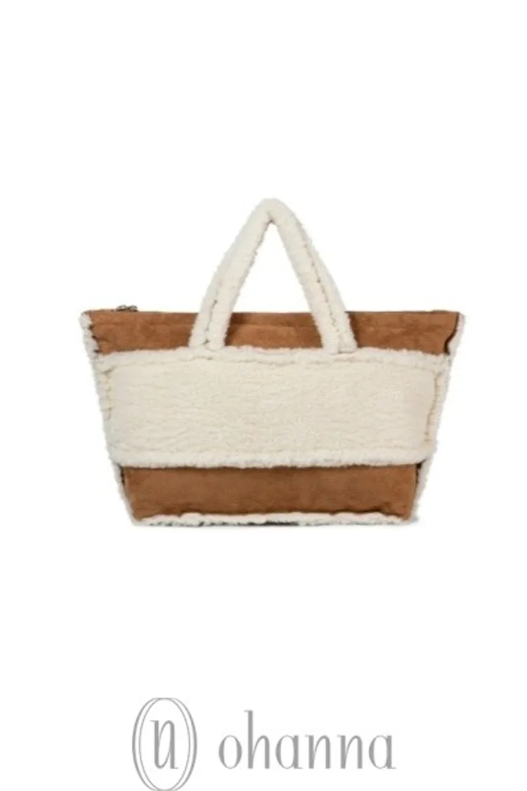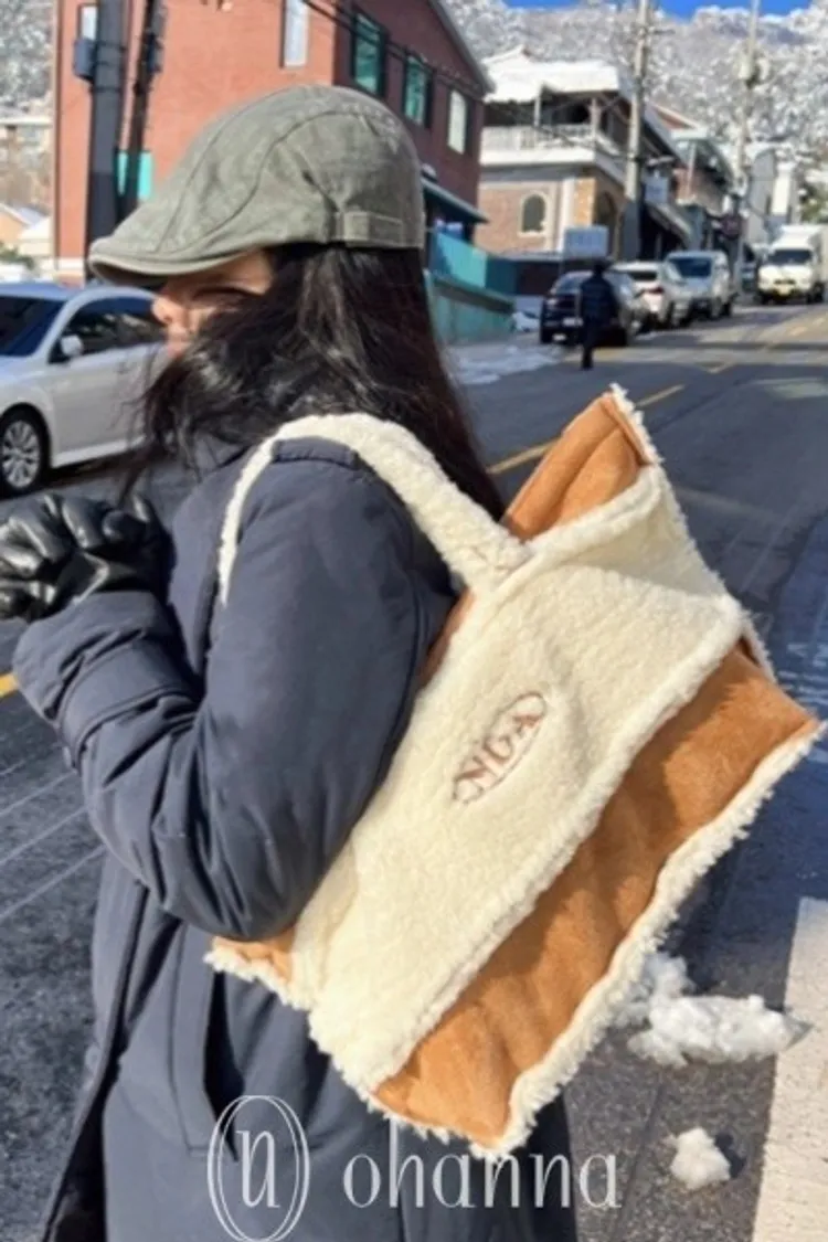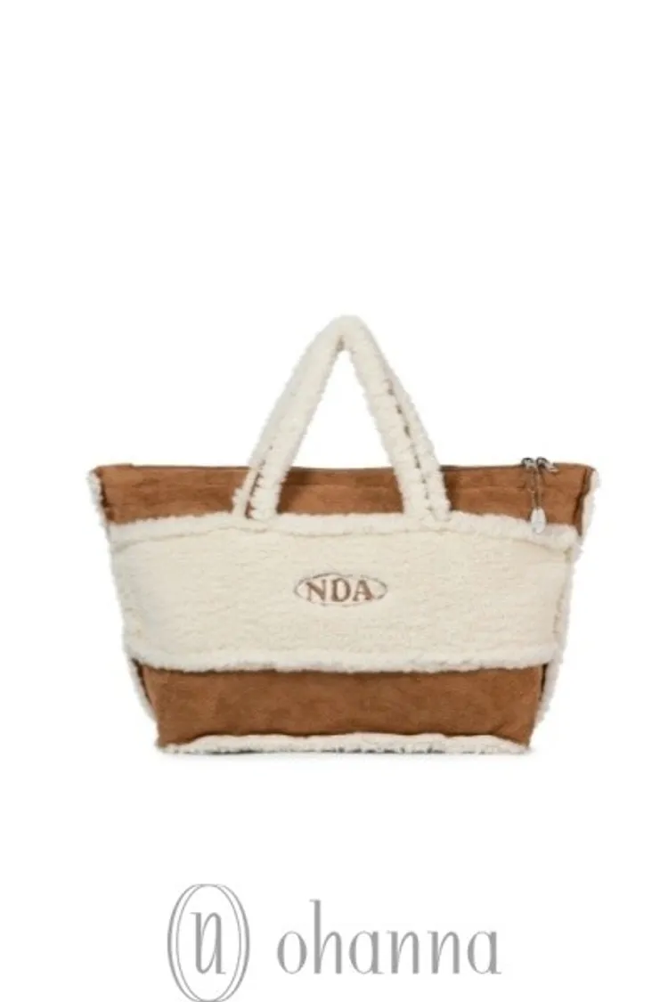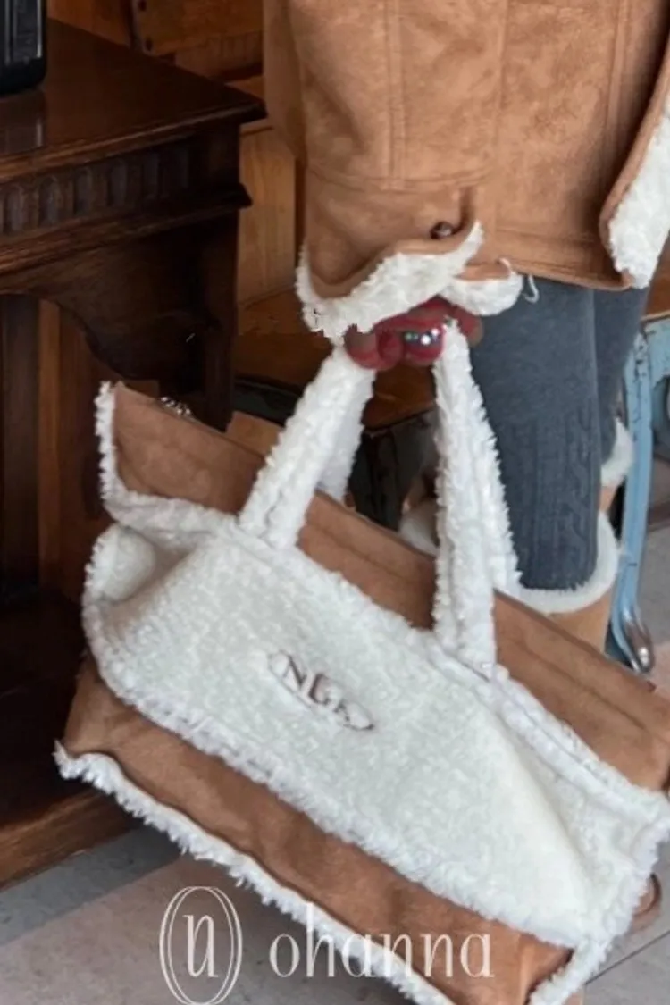 D053駝色毛毛英文字手提包