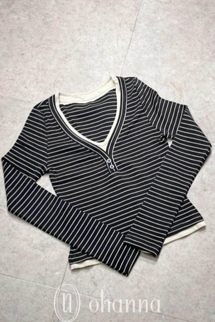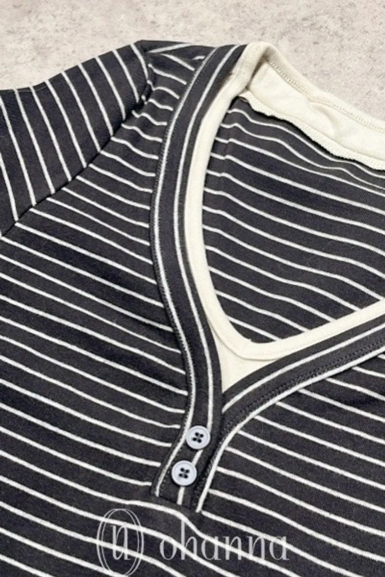 D068(自訂款)深灰線條撞色滾邊上衣