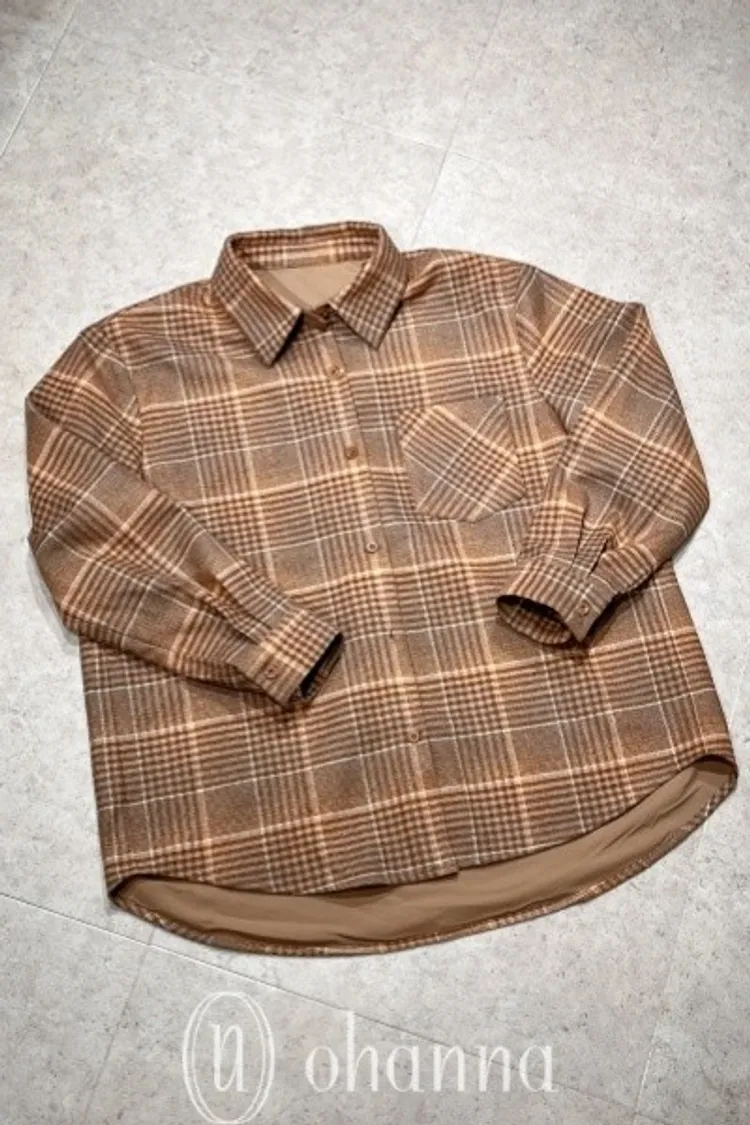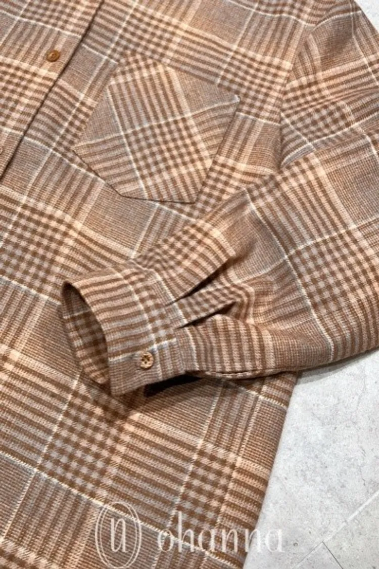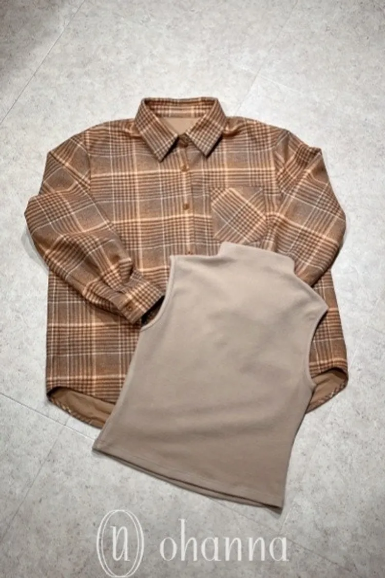 D081(自訂款)大地色混色格紋單口袋襯衫+背心 一組賣