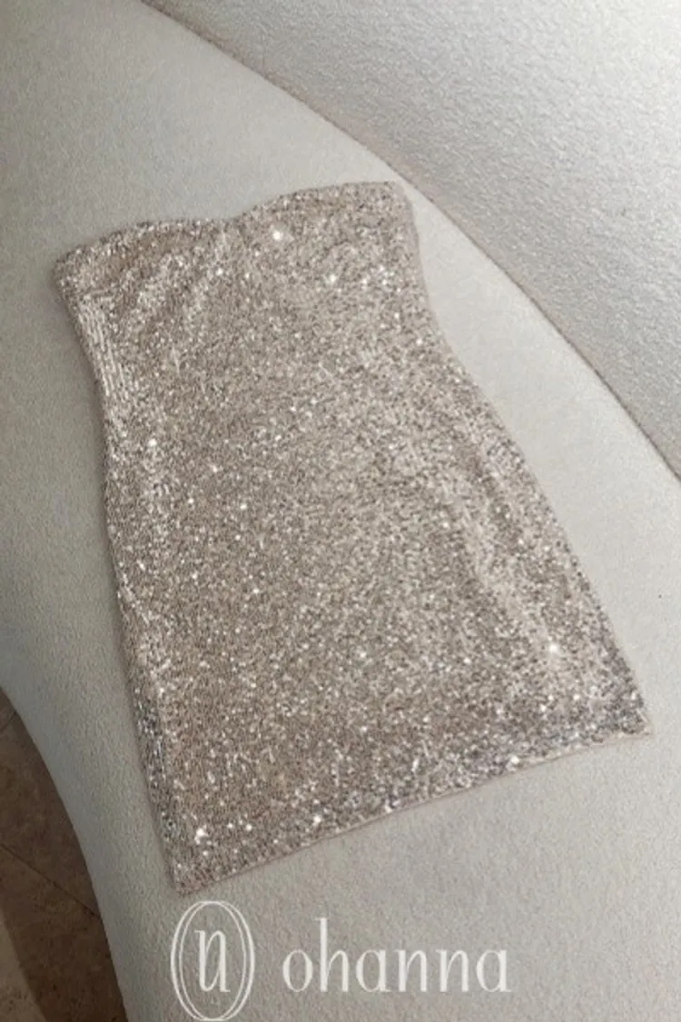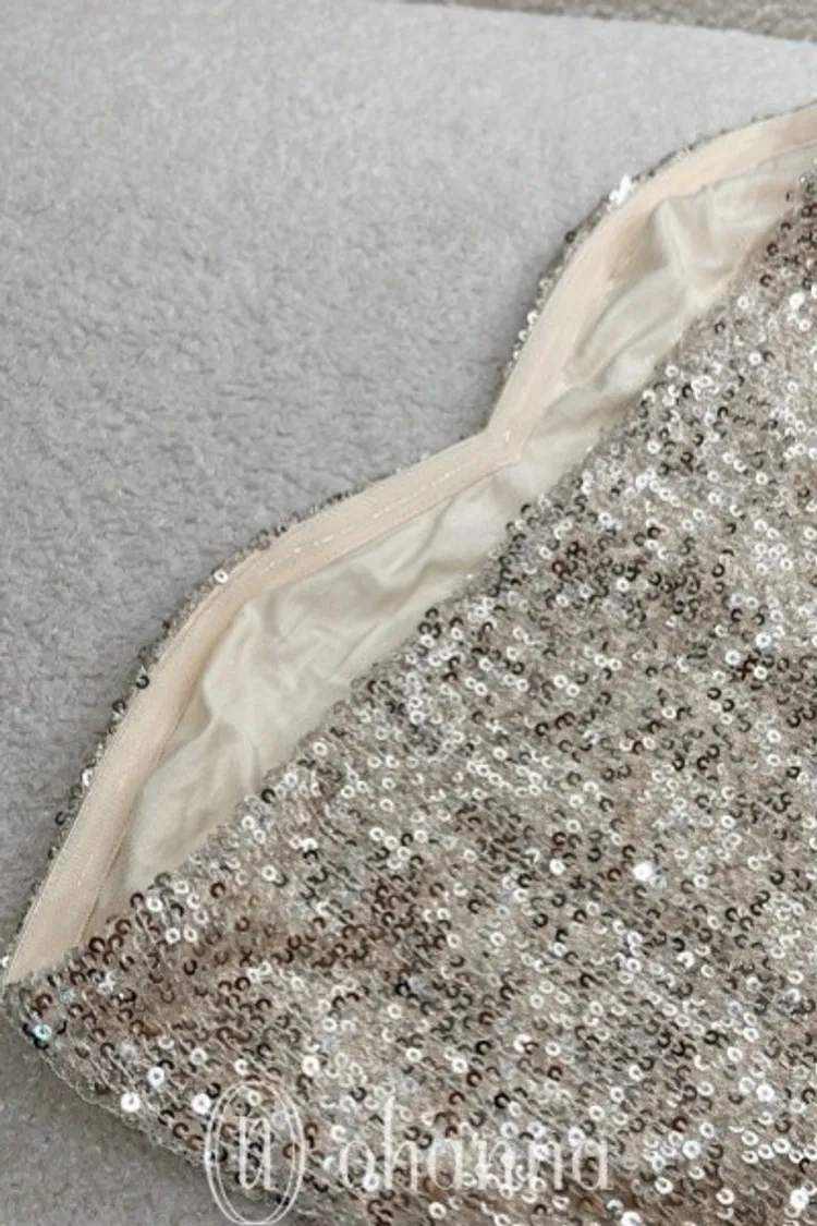 D082(自訂款)米色閃亮亮片平口短洋裝