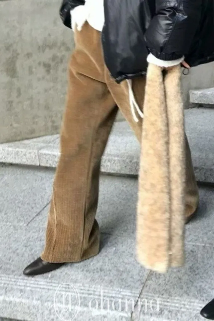 D101駝色絨面坑條斜壓線長褲