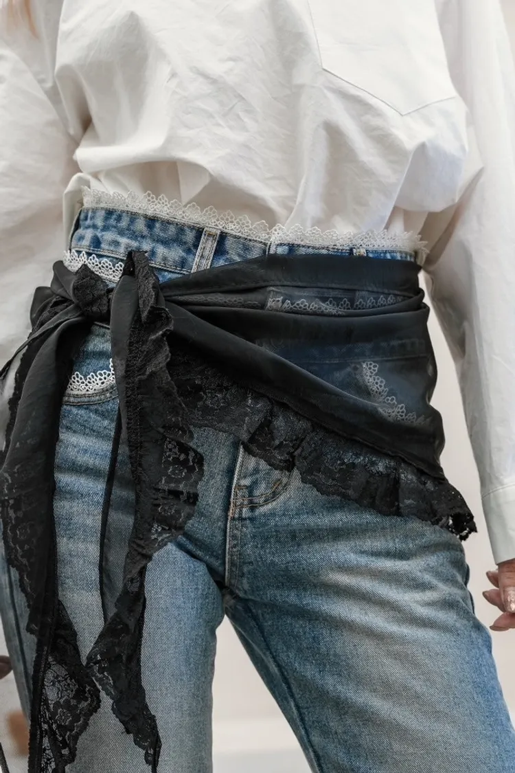 F025接蕾絲透膚造型腰帶