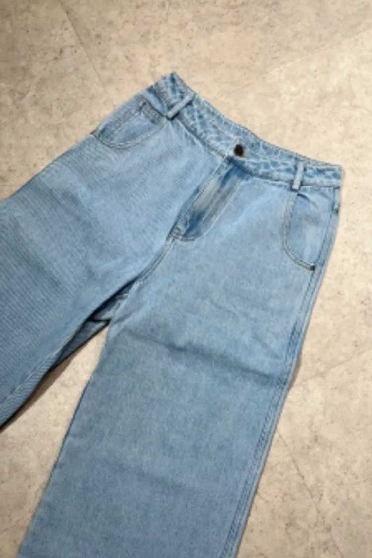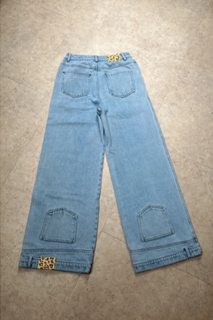 J072(自訂款)藍色褲管造型牛仔寬褲