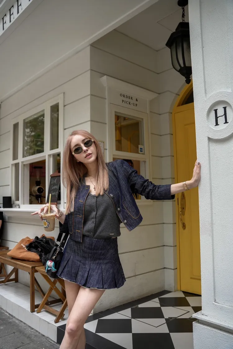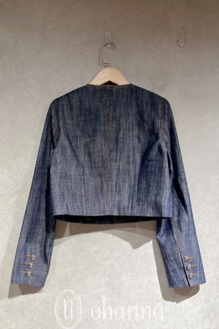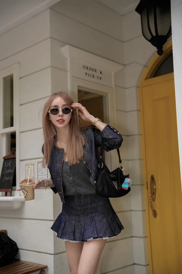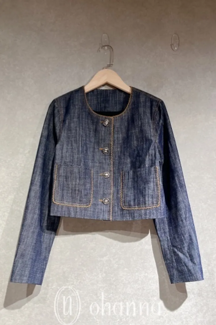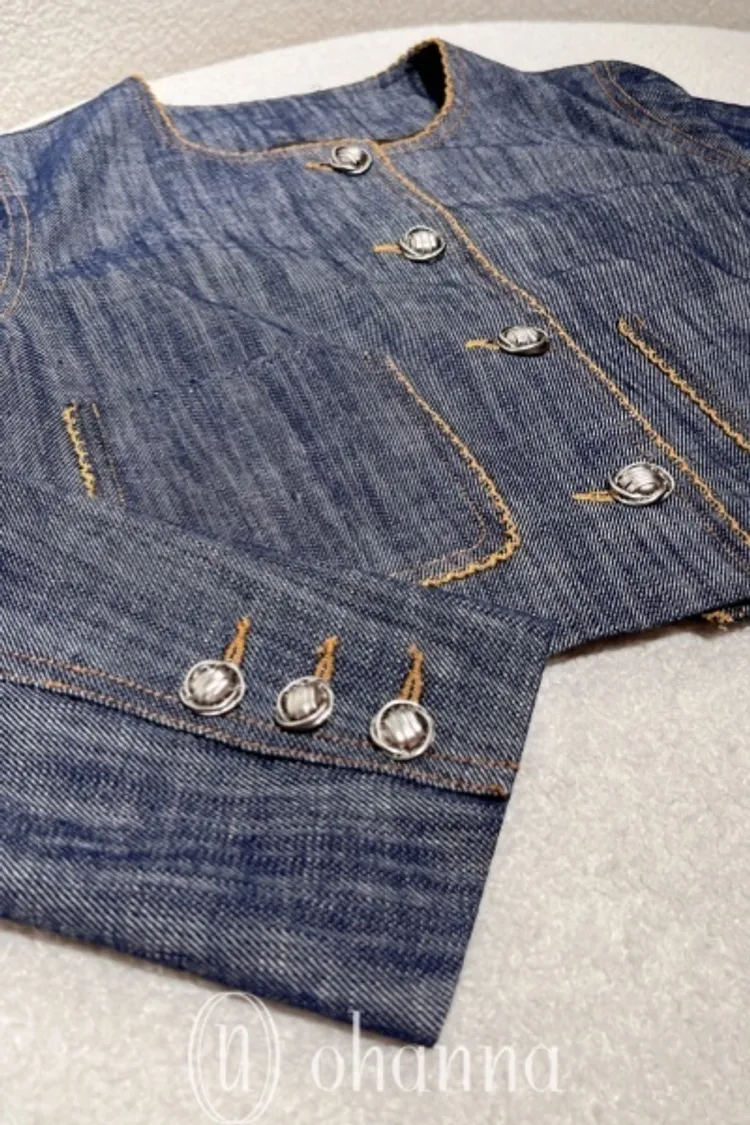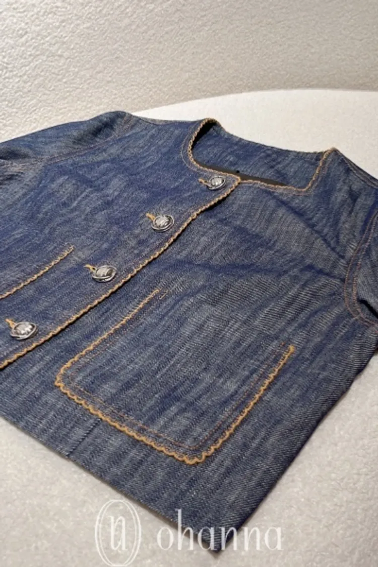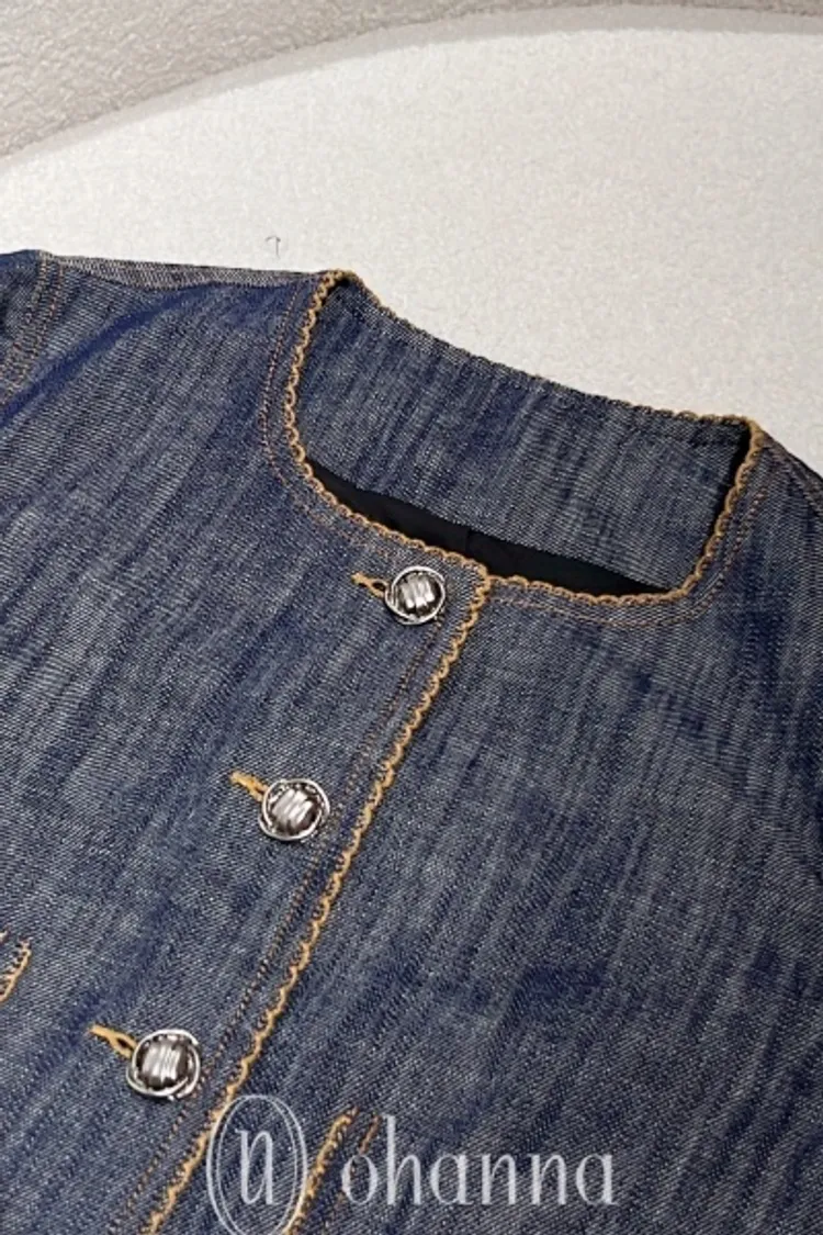 M022(自訂款)牛仔藍滾邊排扣前口袋外套+褲裙