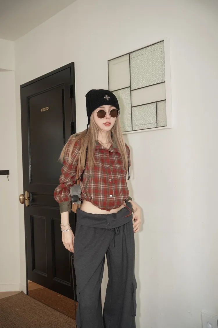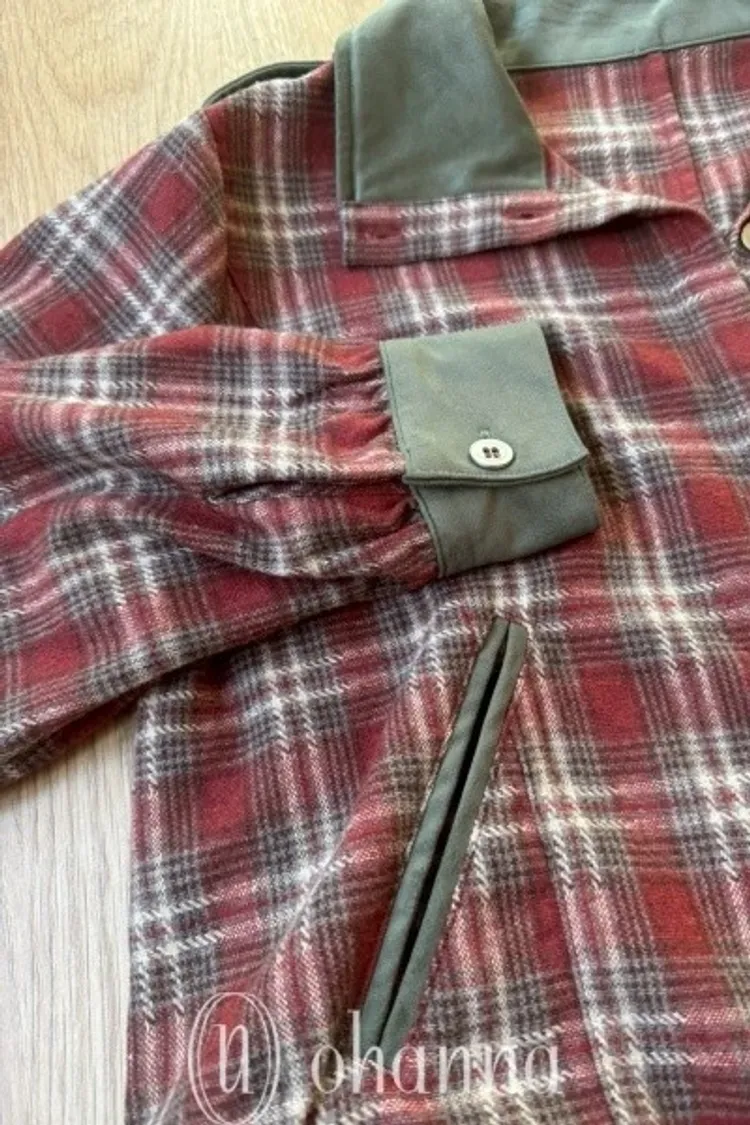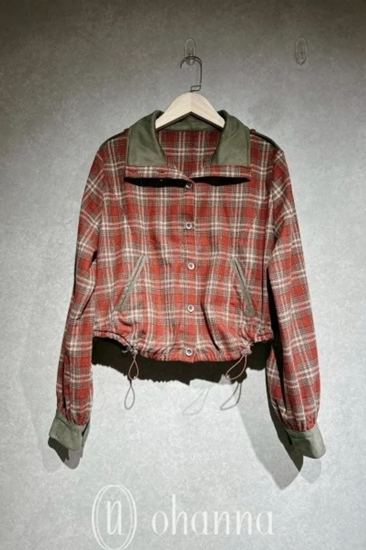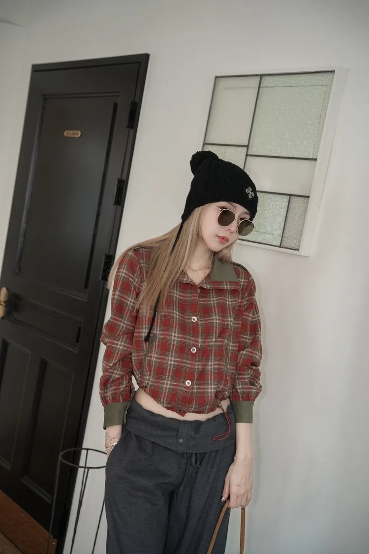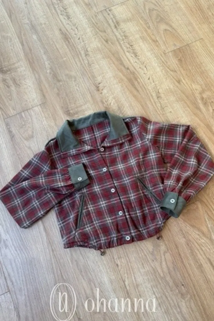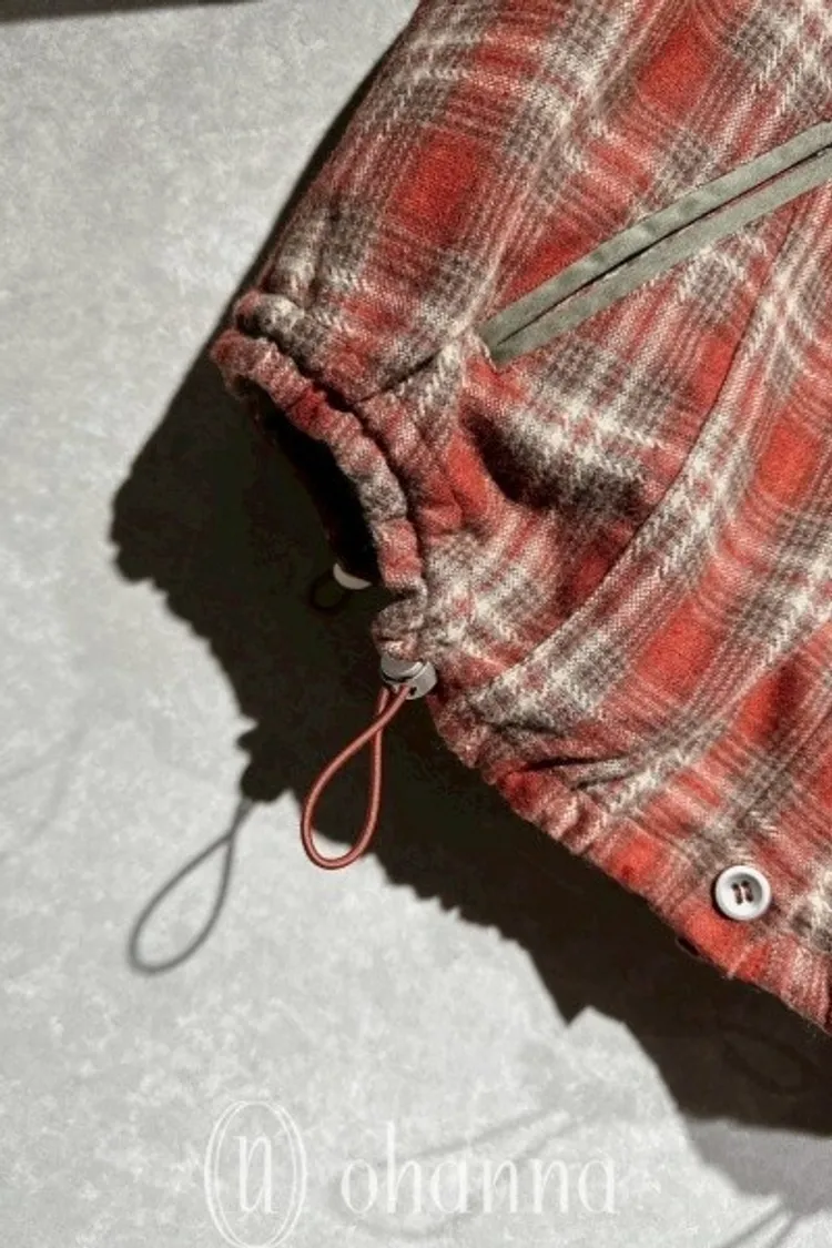 N068(自訂款)紅綠格紋側抽繩襯衫