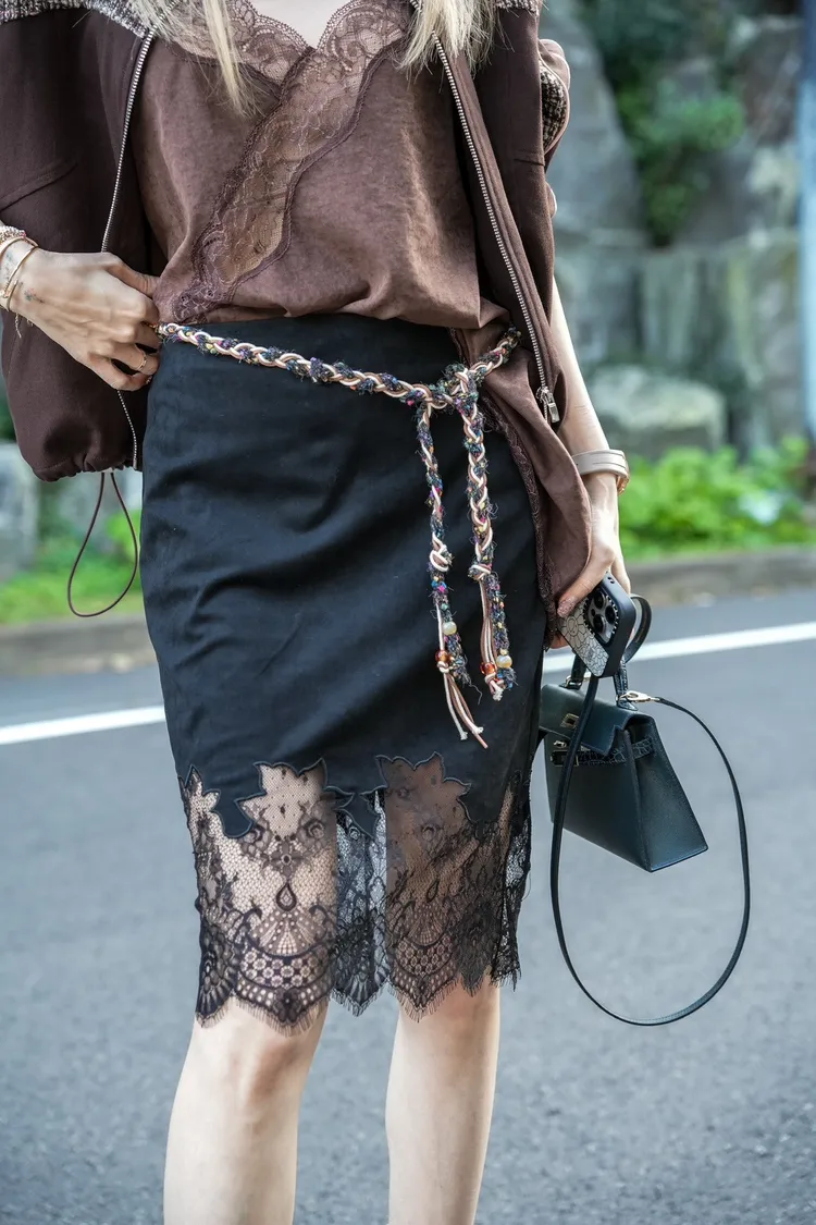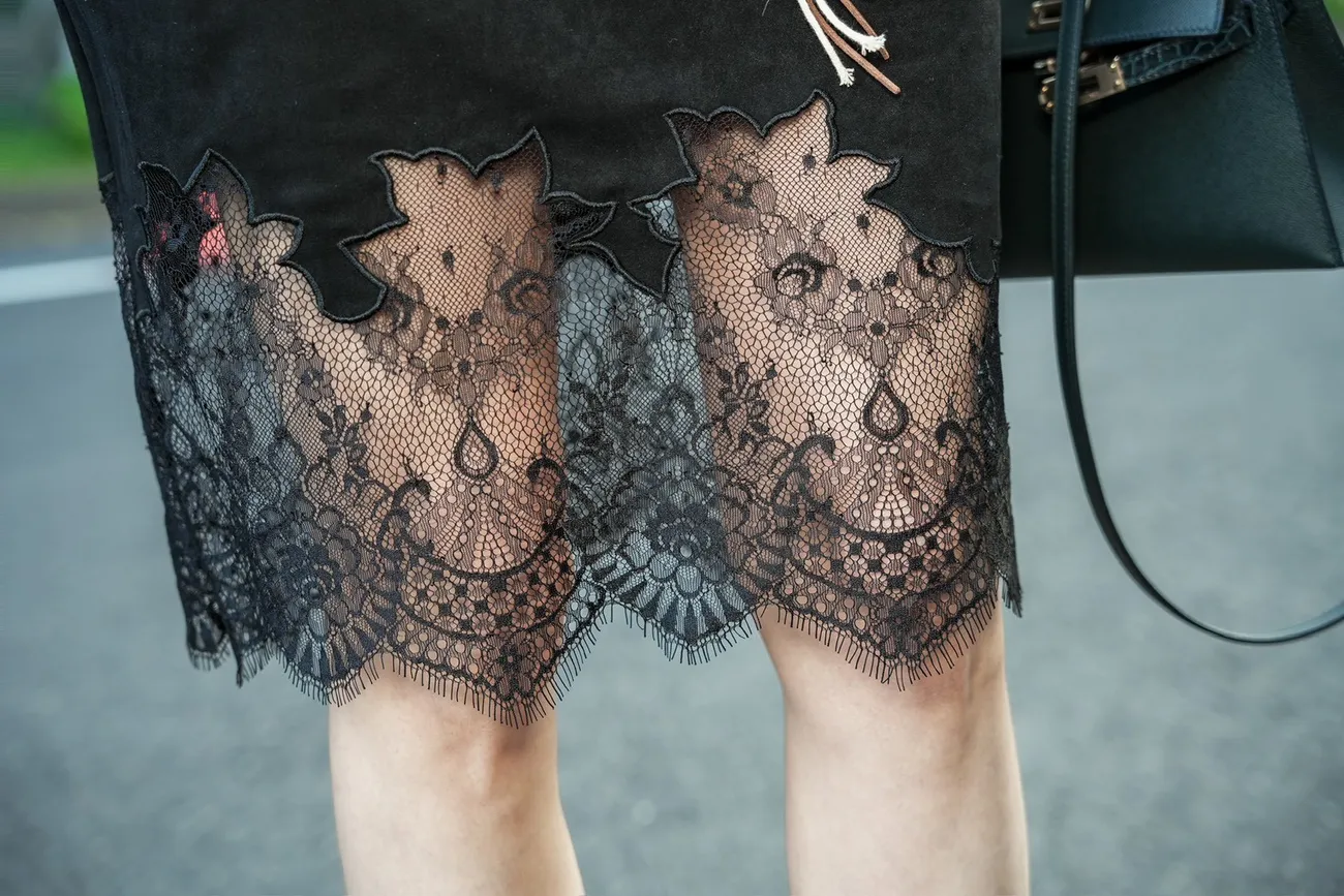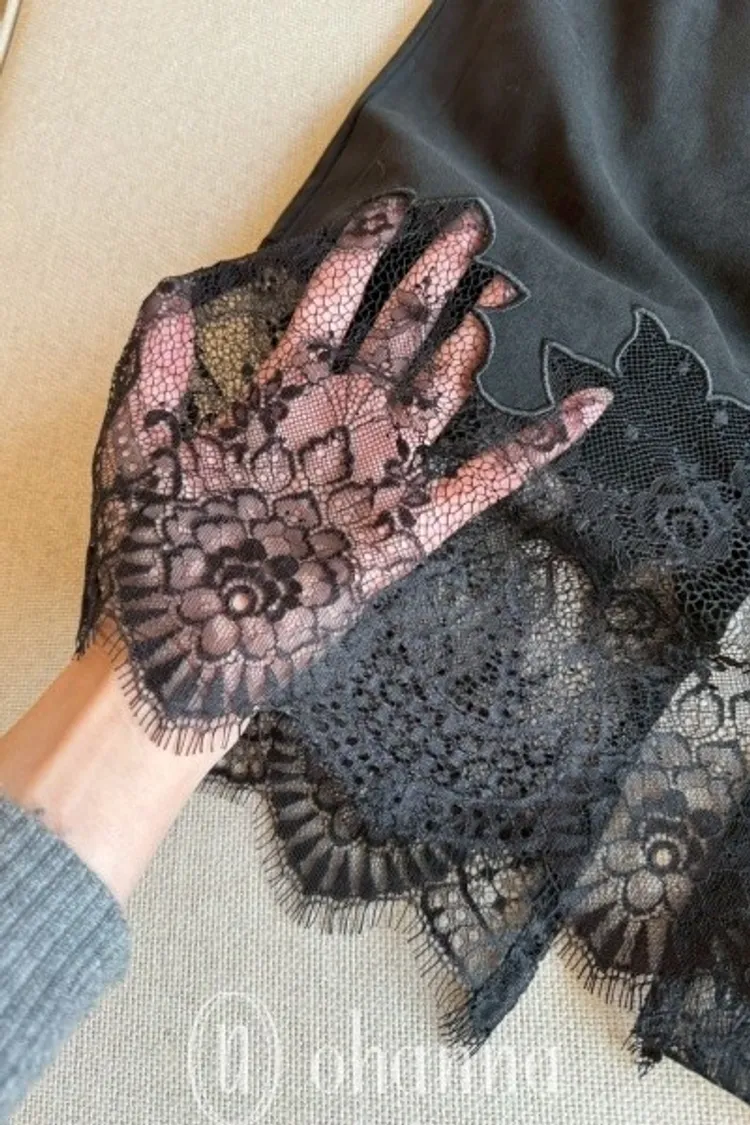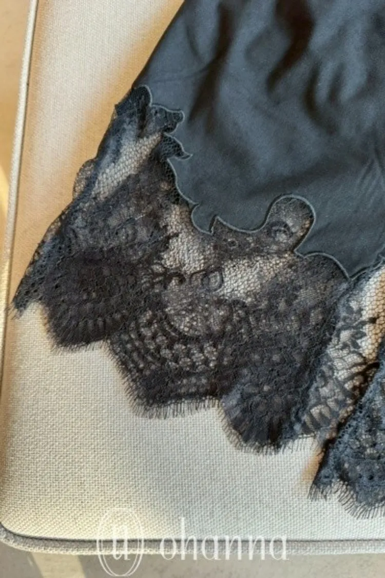 製作過程因燒邊緹花關係,大貨出來裙長多了10公分