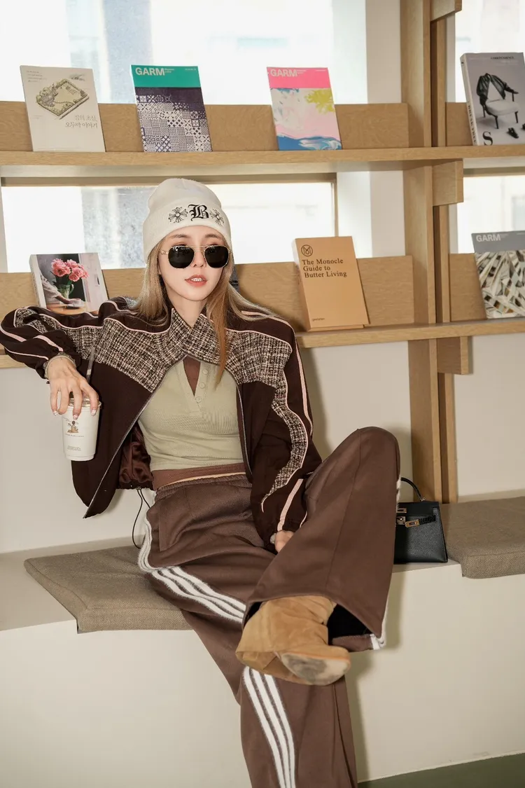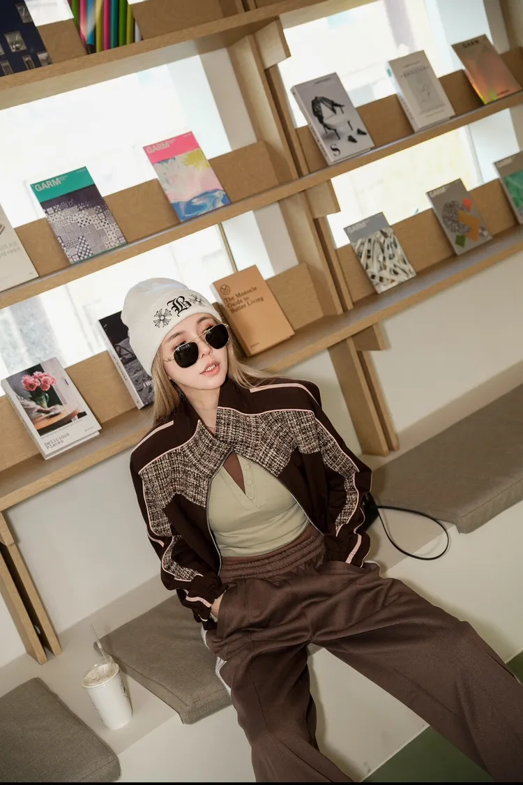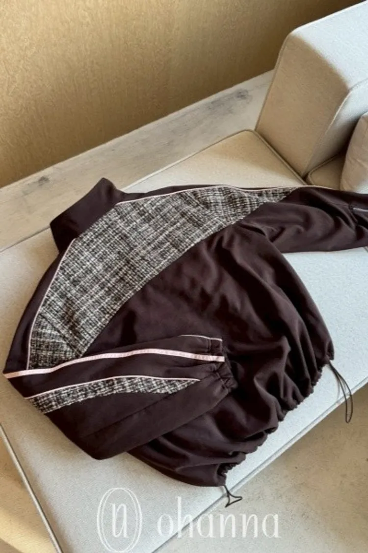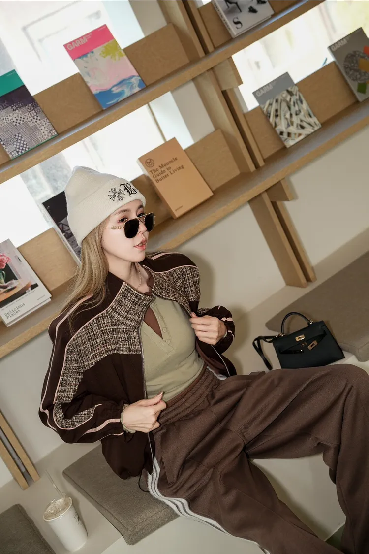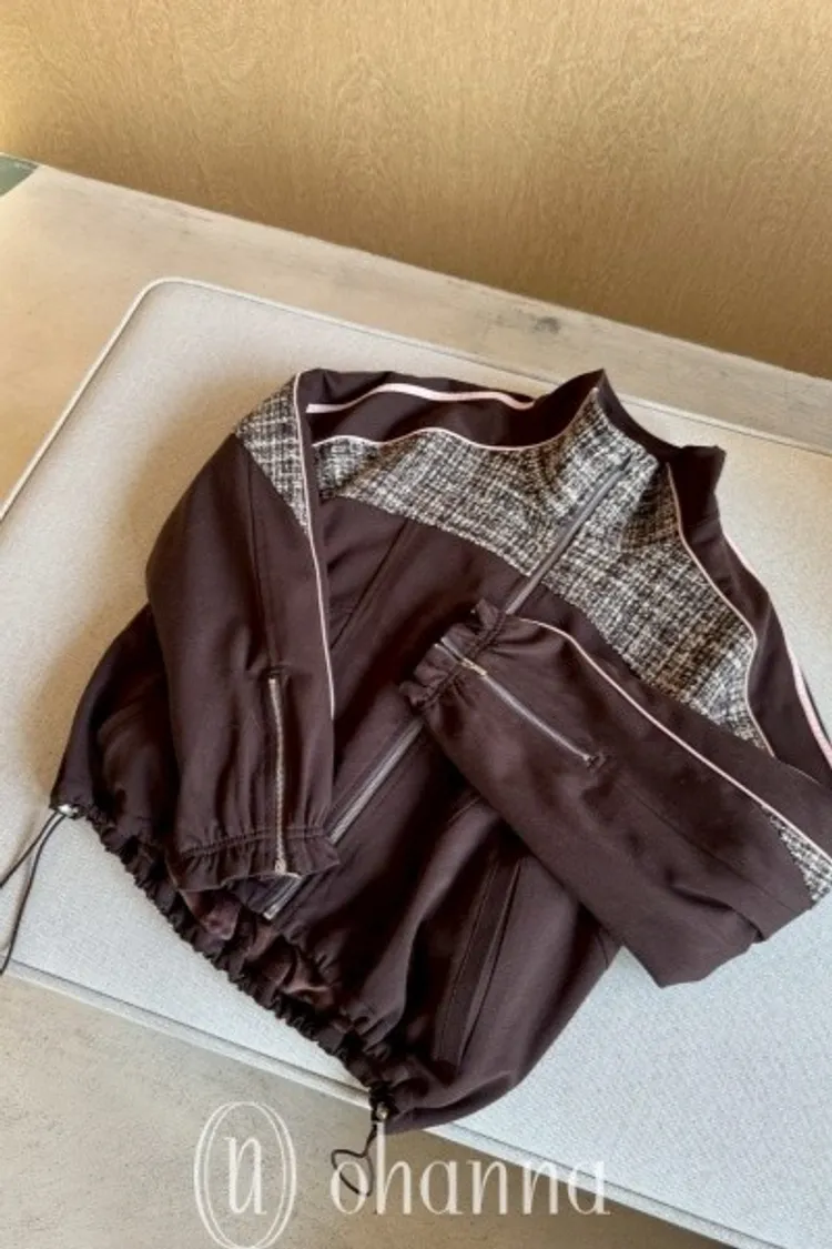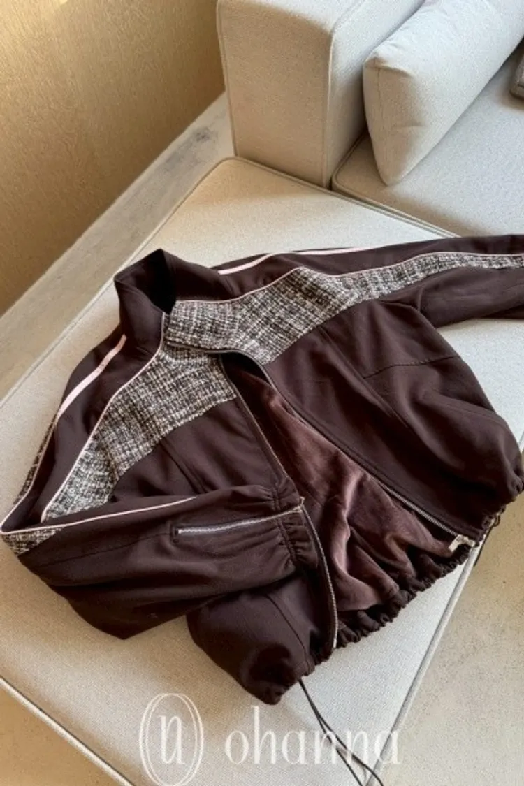 N073(自訂款)運動風咖拼接毛尼下抽繩拉鍊外套