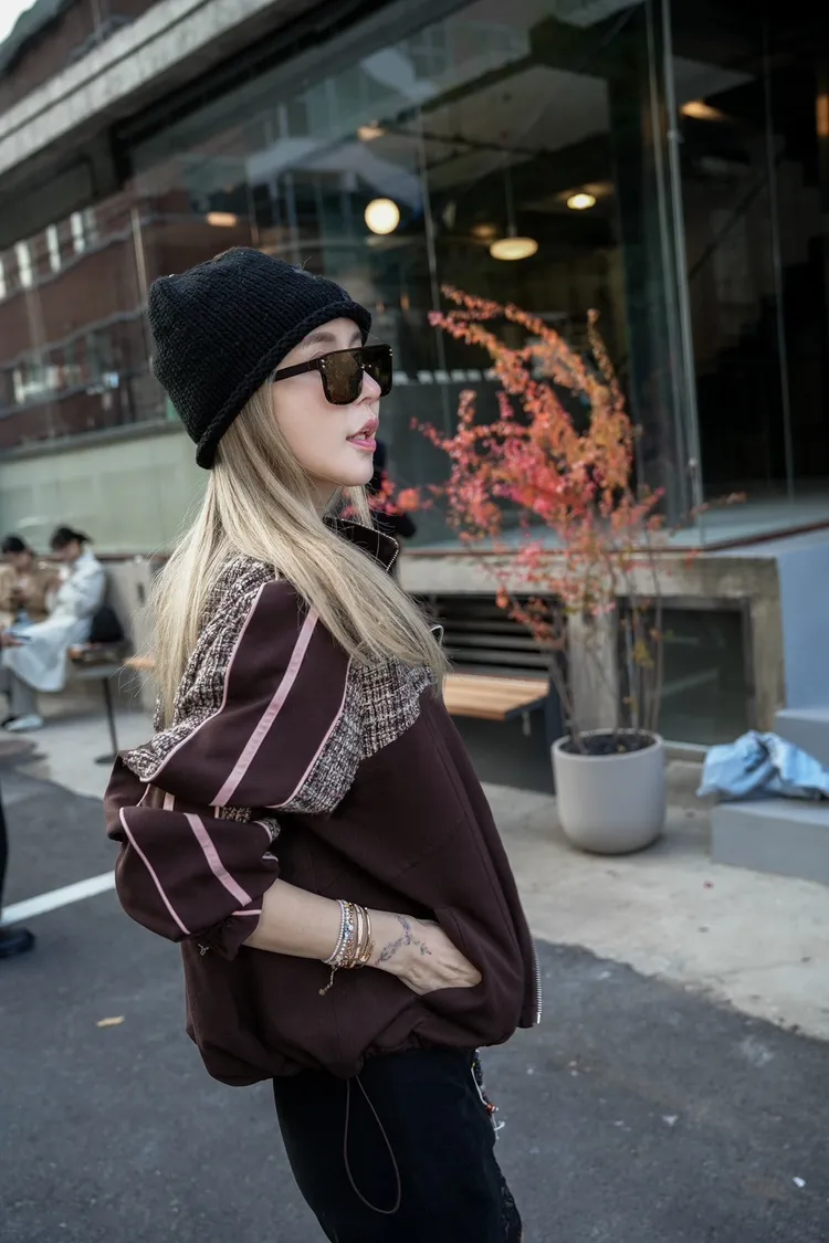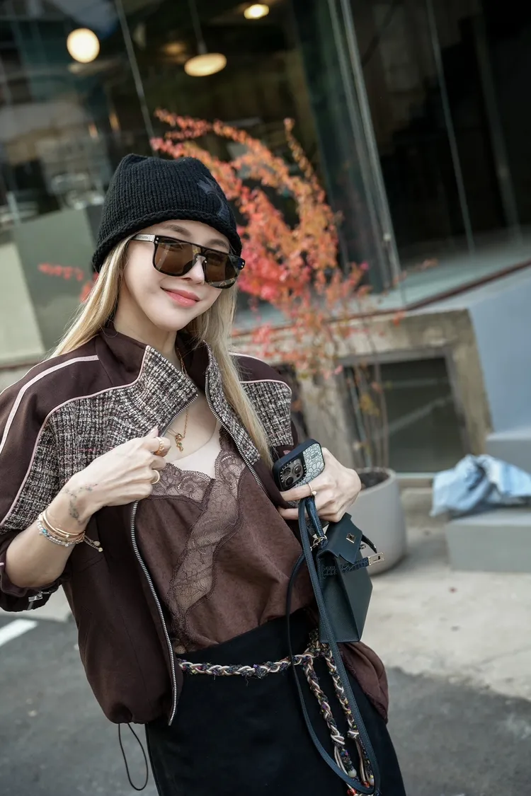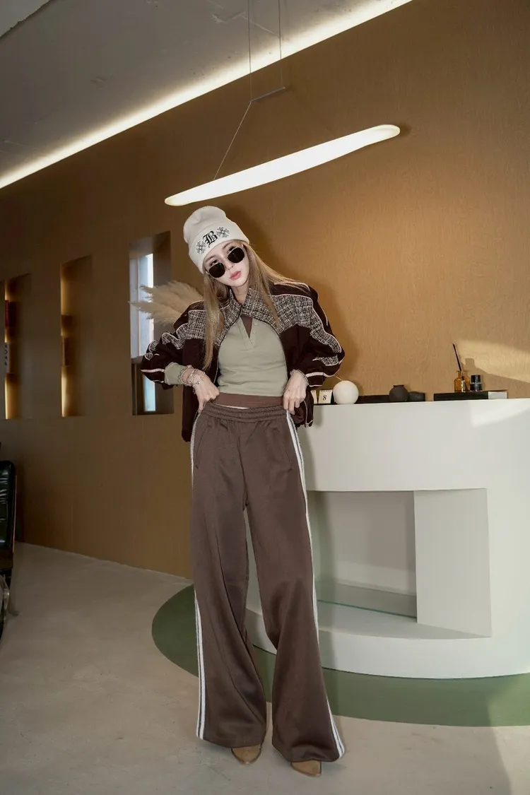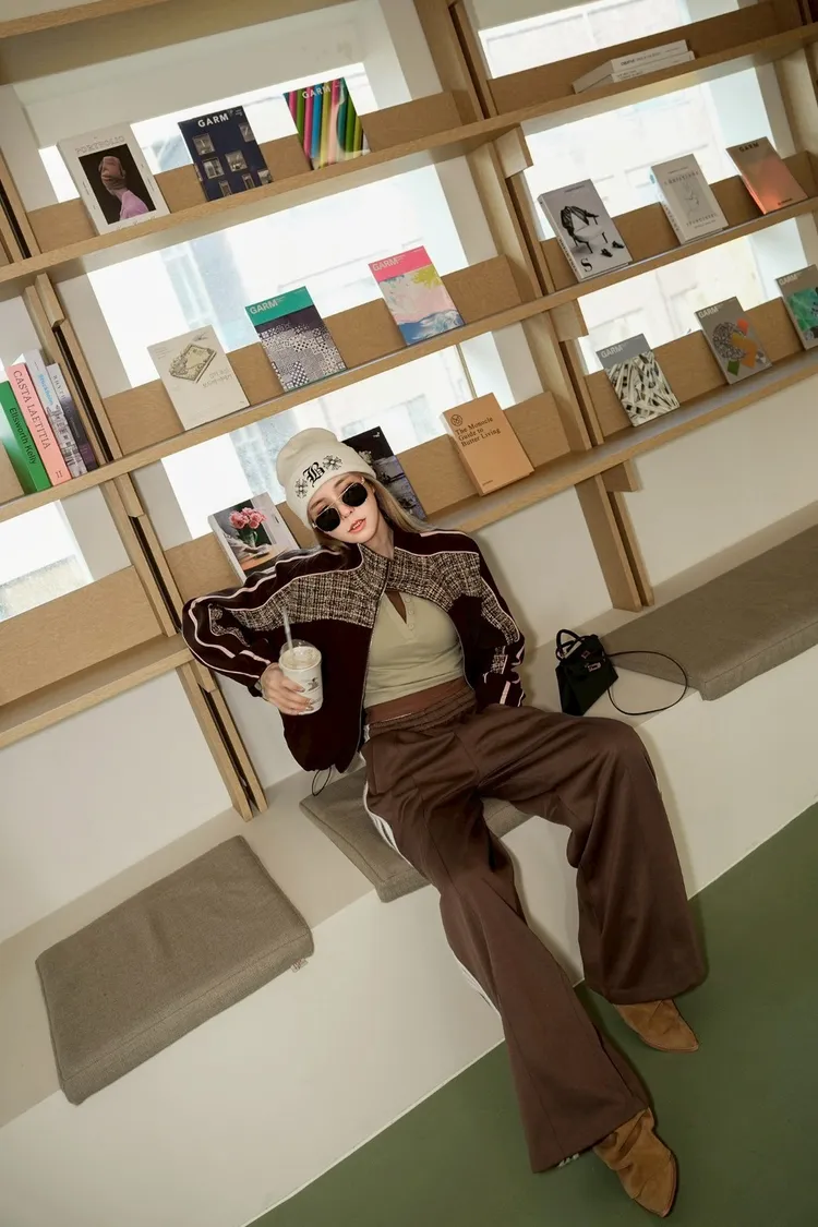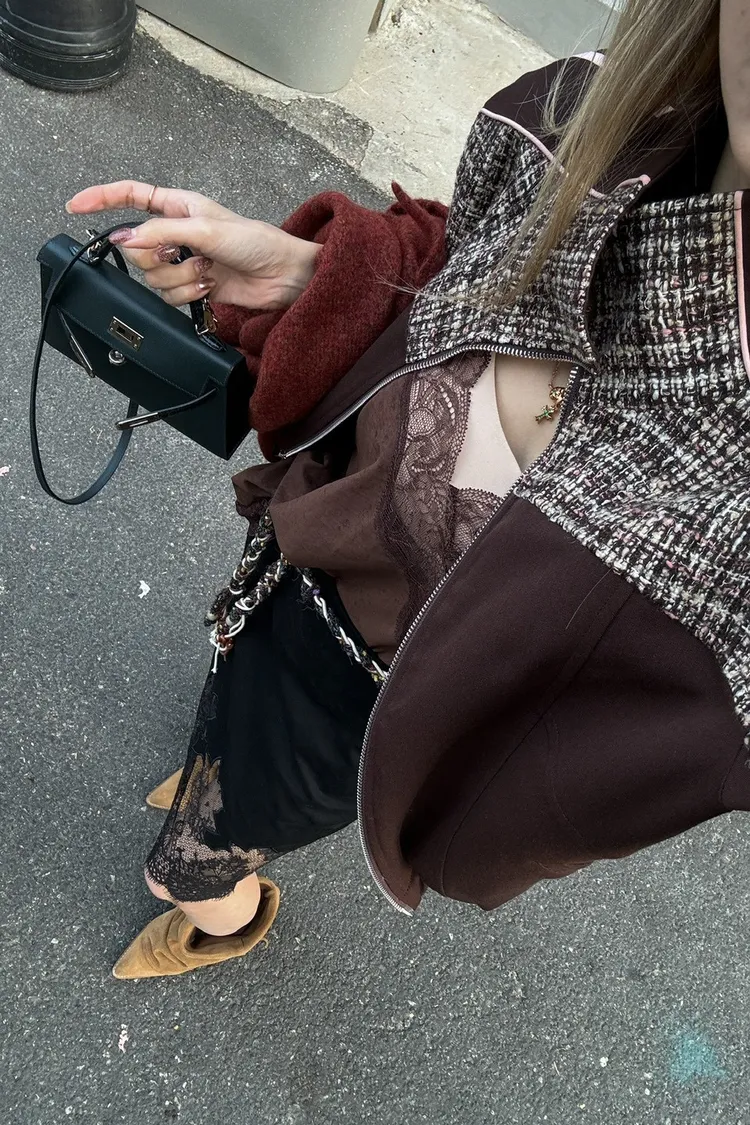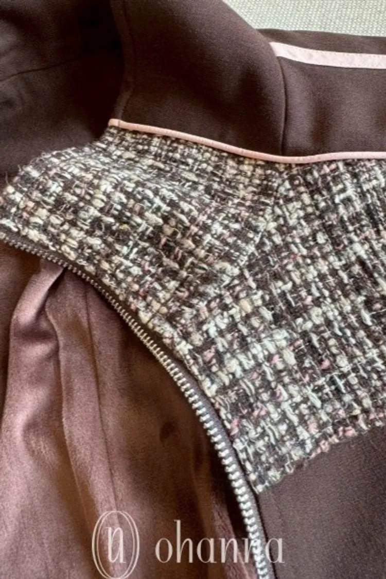 N073(自訂款)運動風咖拼接毛尼下抽繩拉鍊外套