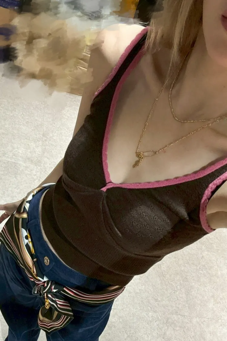 N078(自訂款)撞色滾邊V領針織背心