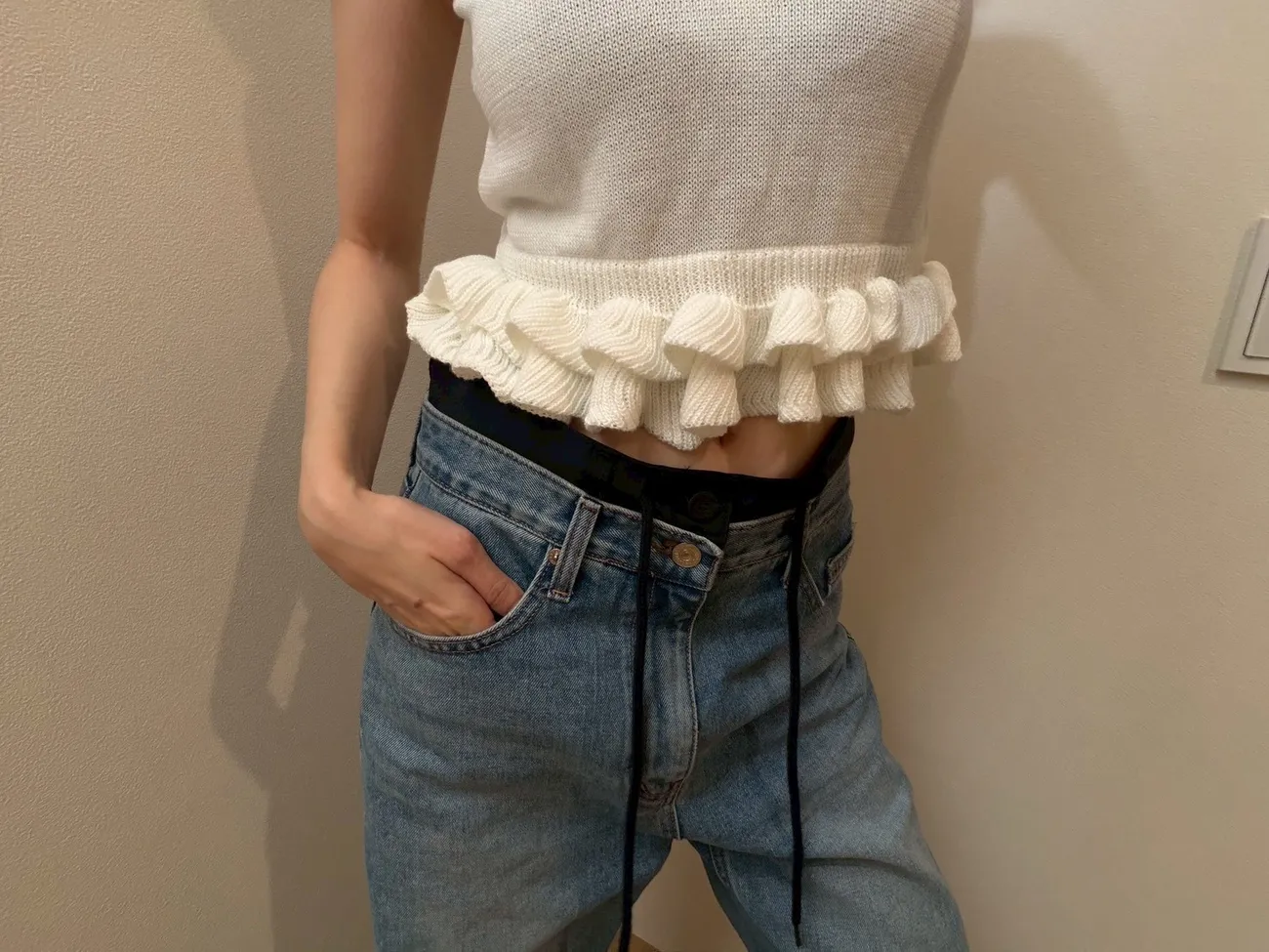 N088(自訂款)白色下擺荷葉背心