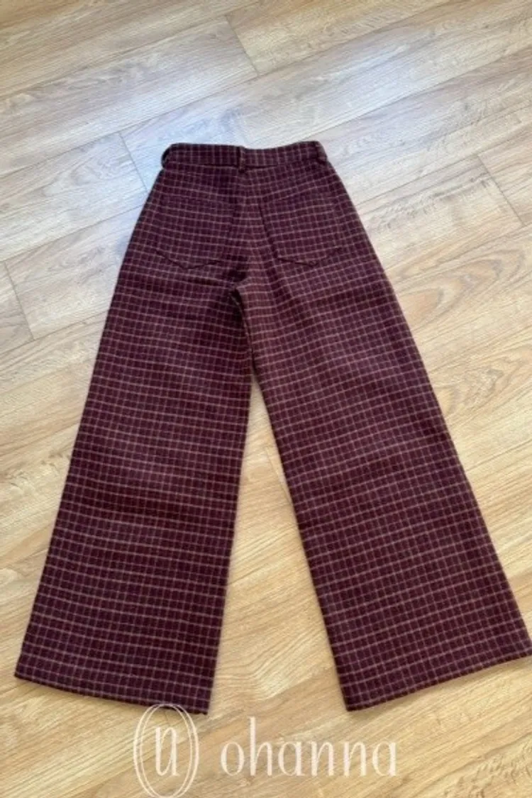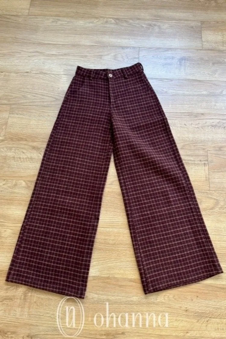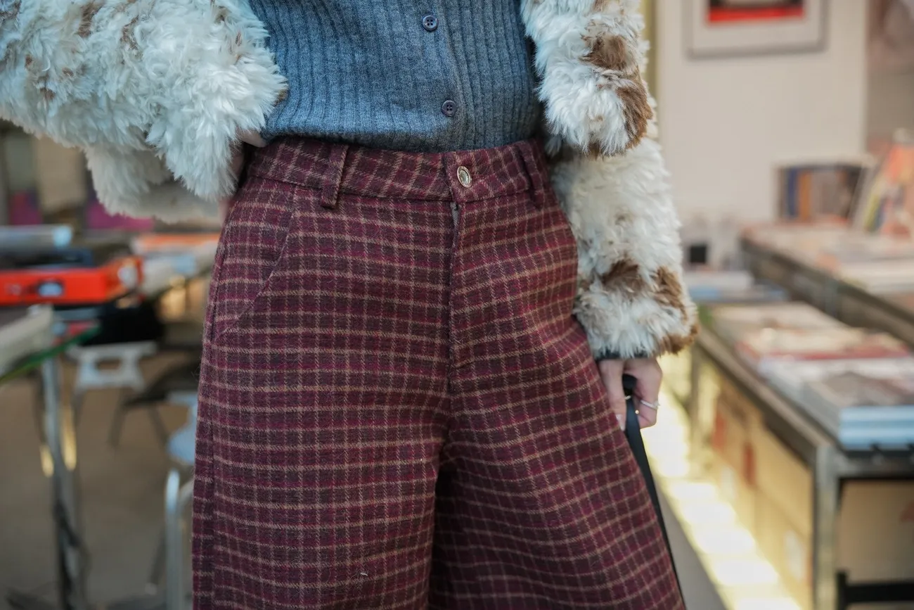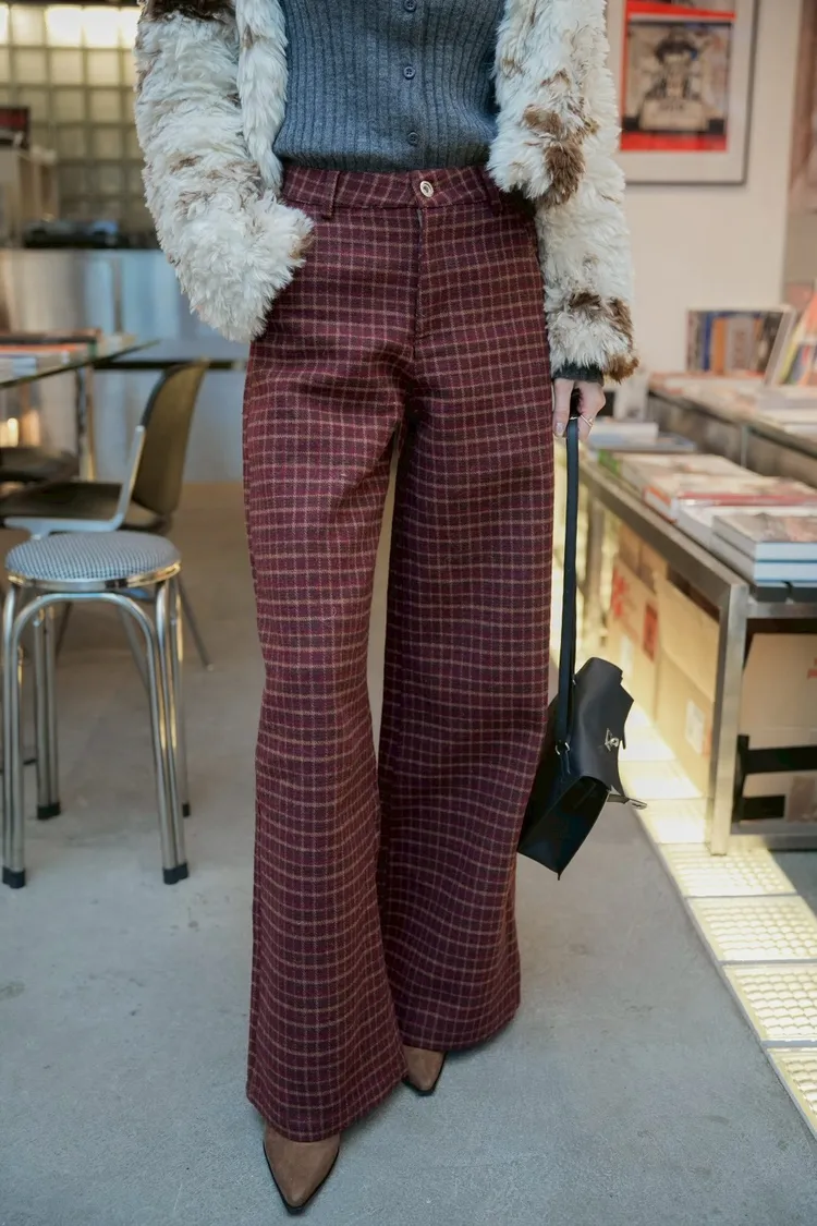 N095(自訂款)秋冬酒紅格紋羊毛長褲