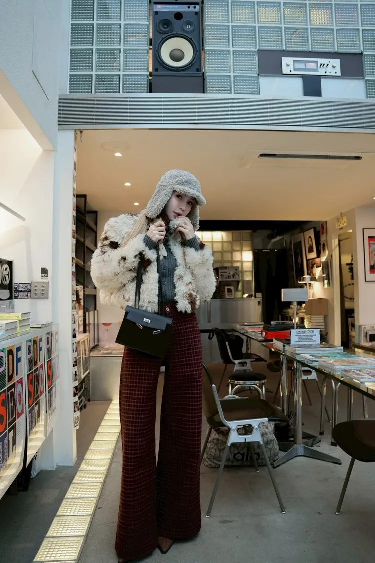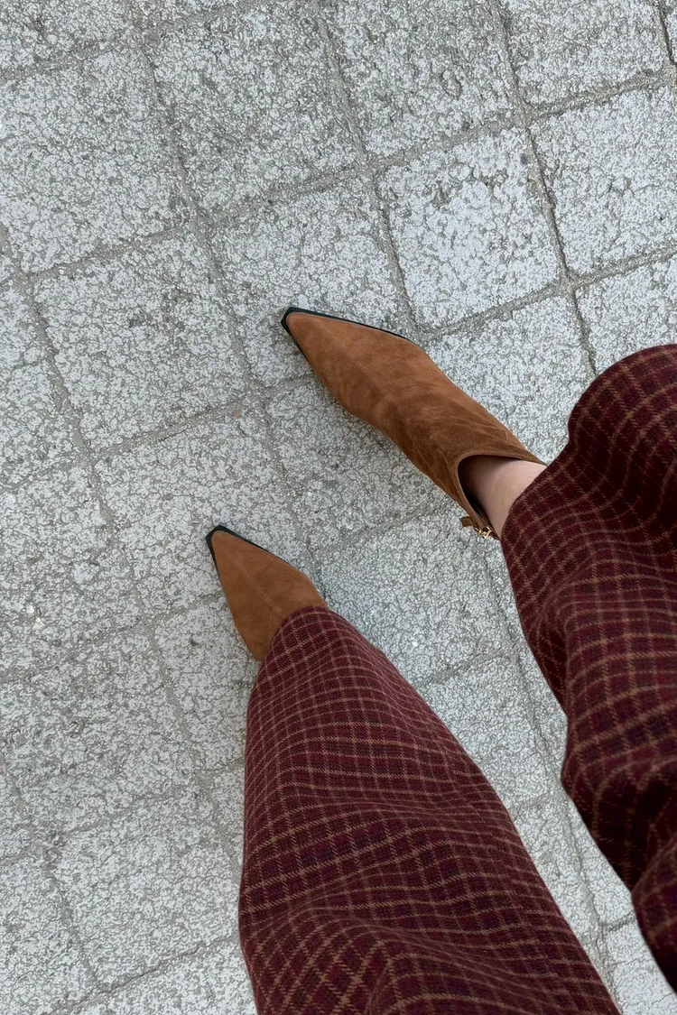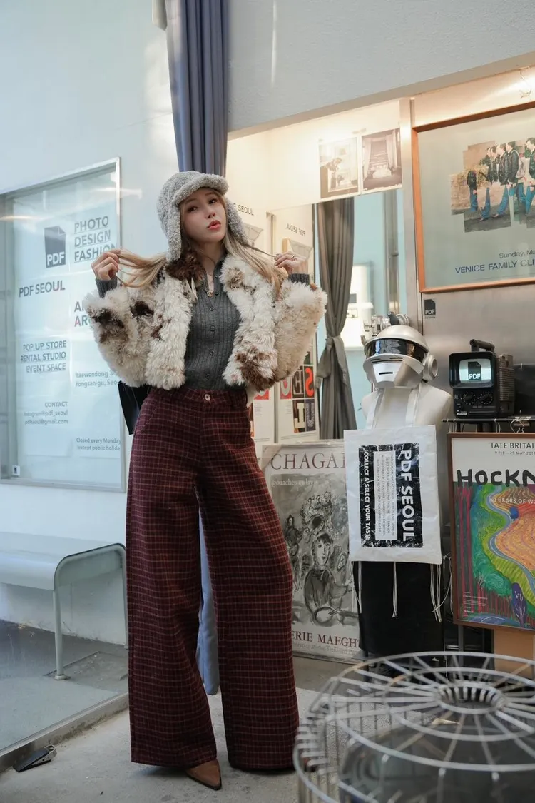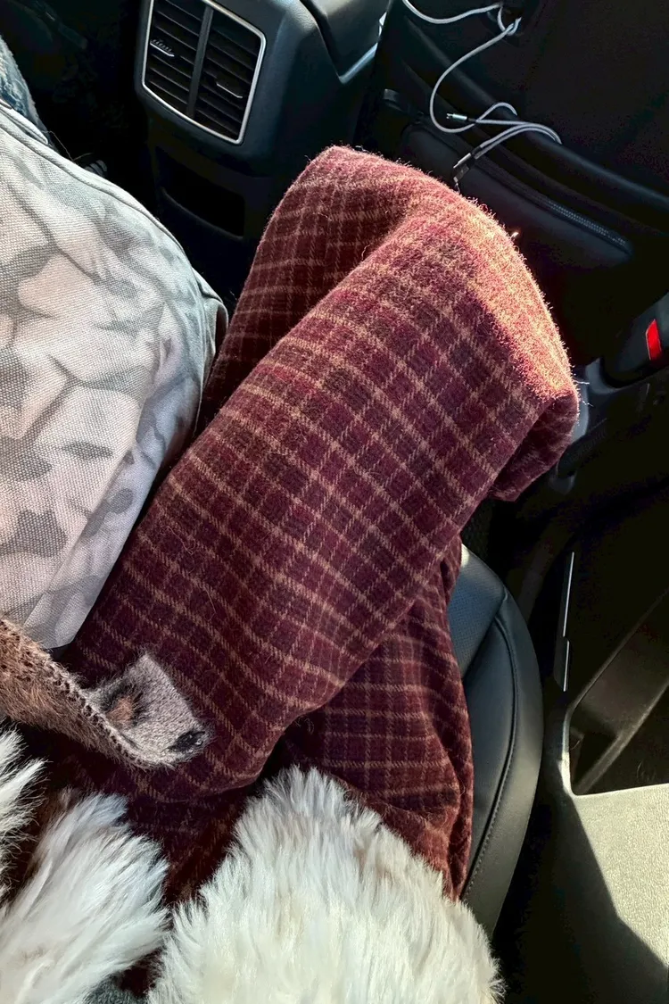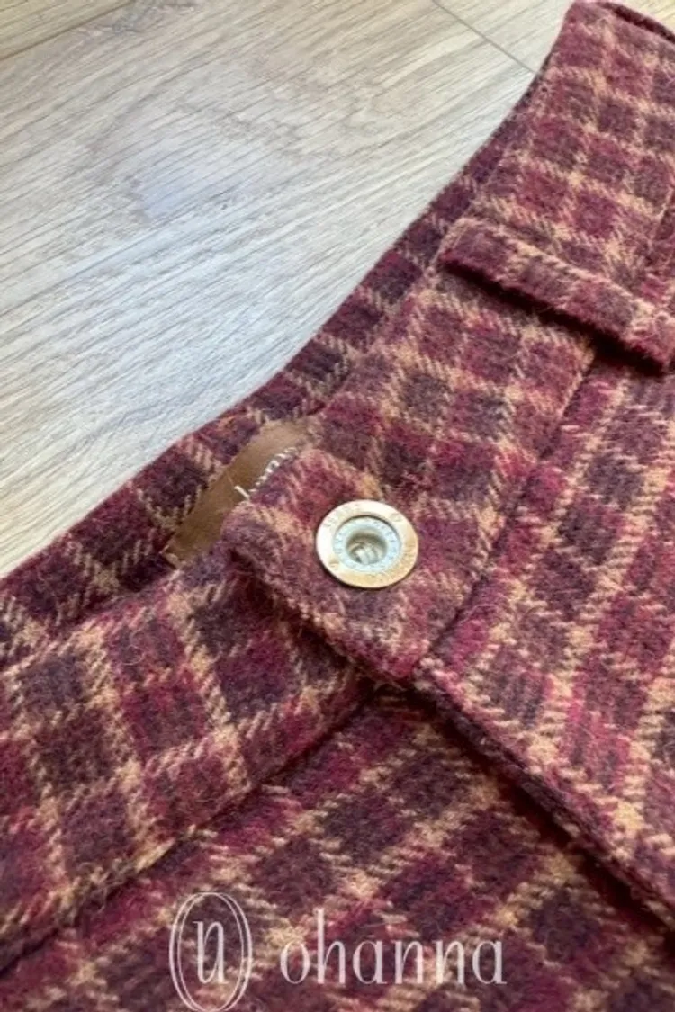 N095(自訂款)秋冬酒紅格紋羊毛長褲