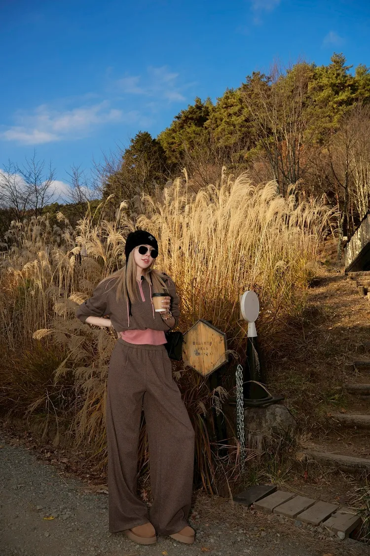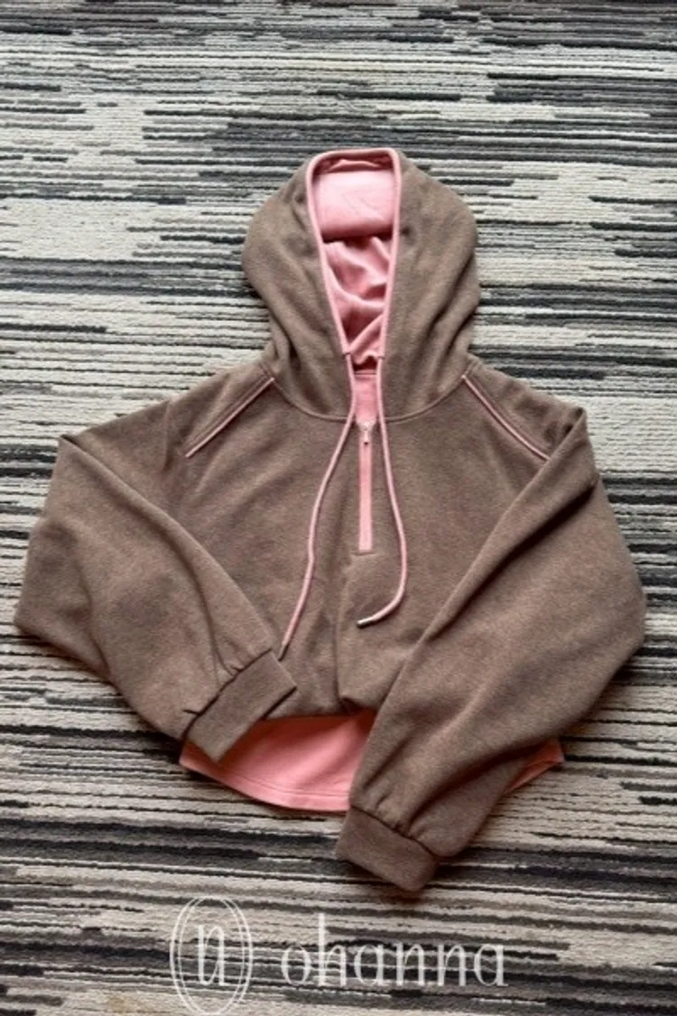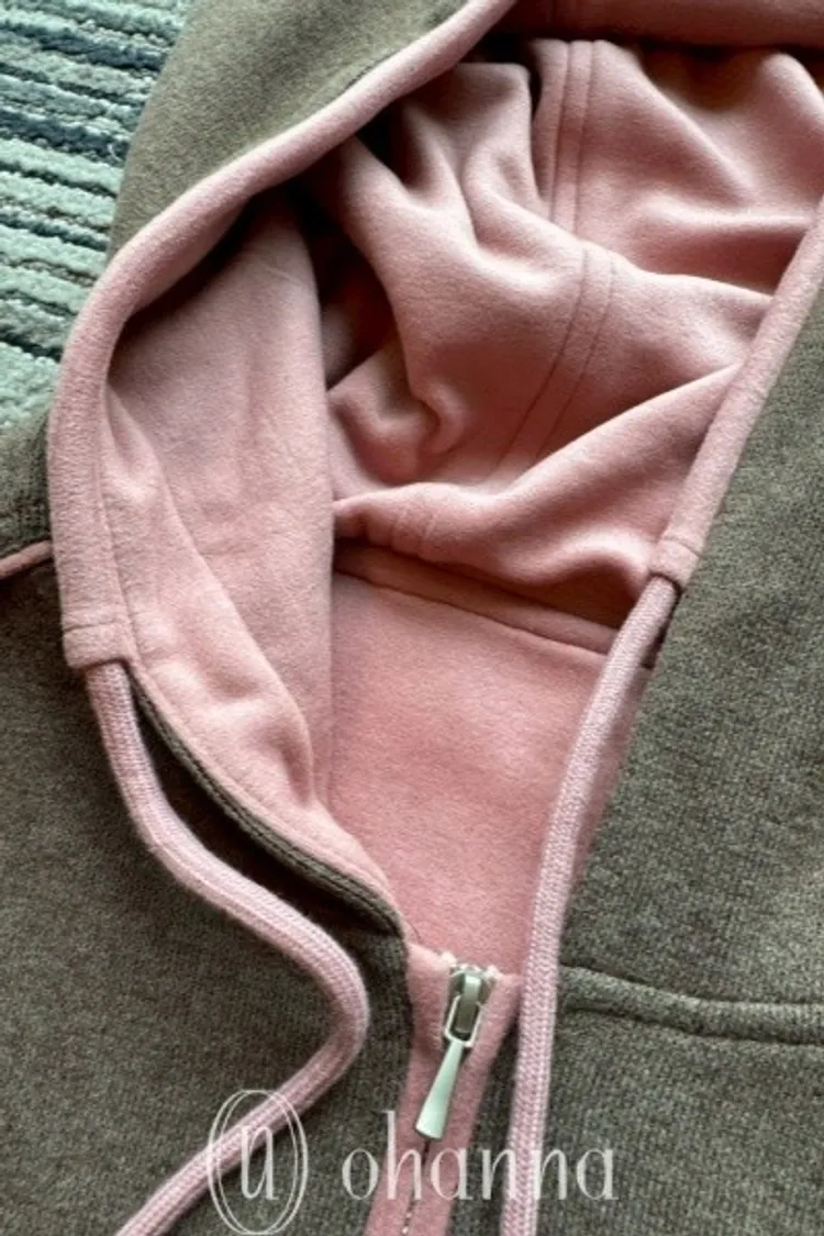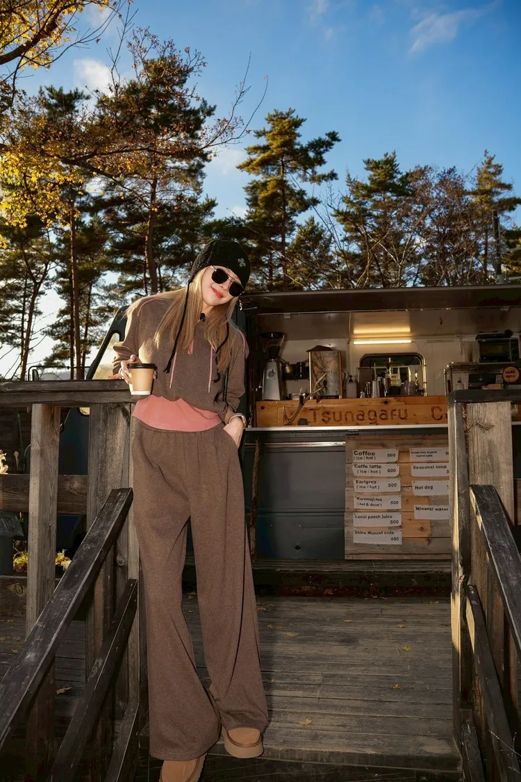 N098(自訂款)咖粉撞色連帽上衣+長褲 一組賣