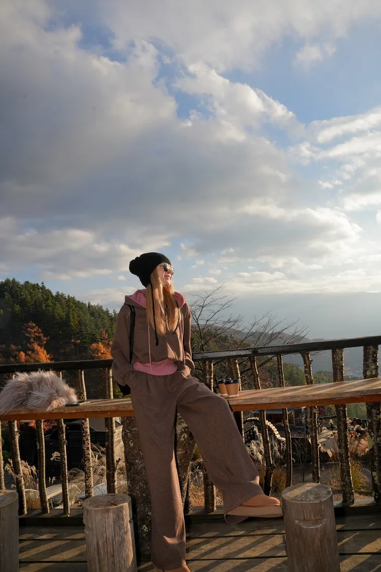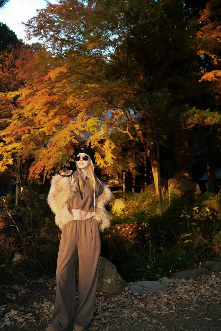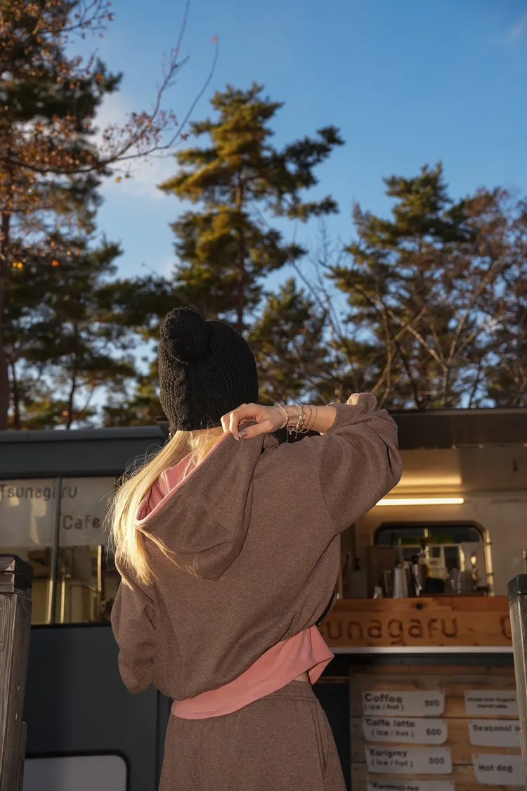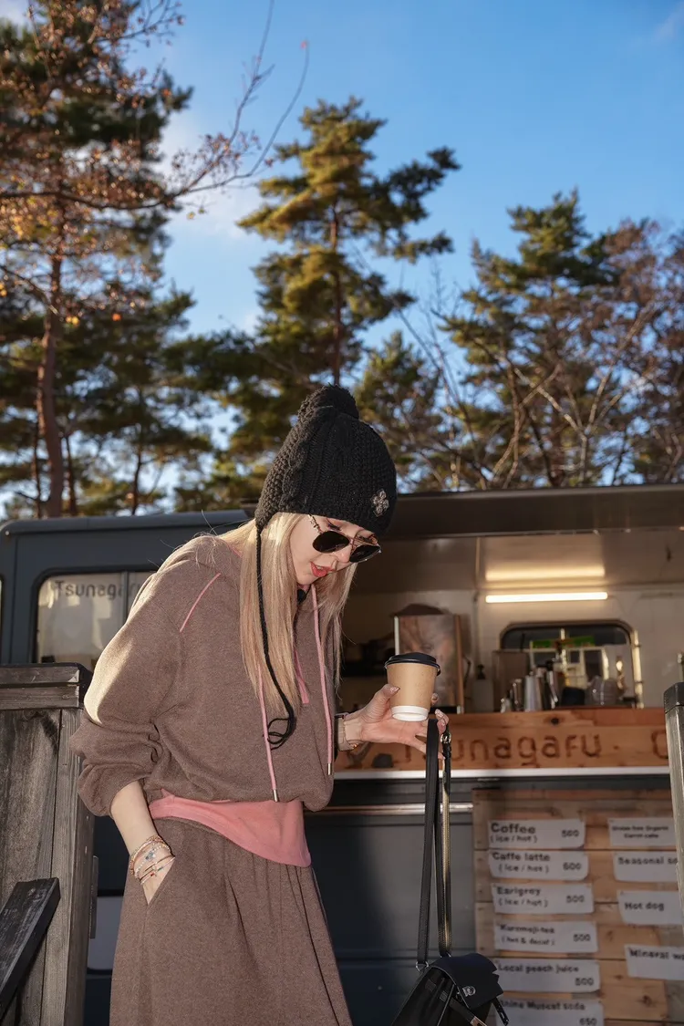 N098(自訂款)咖粉撞色連帽上衣+長褲 一組賣