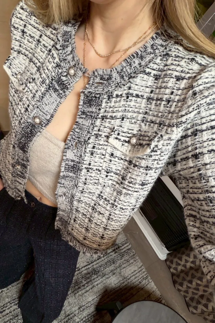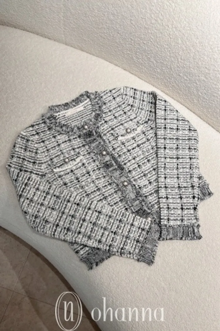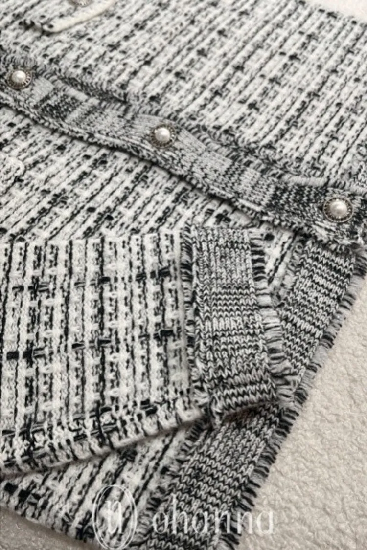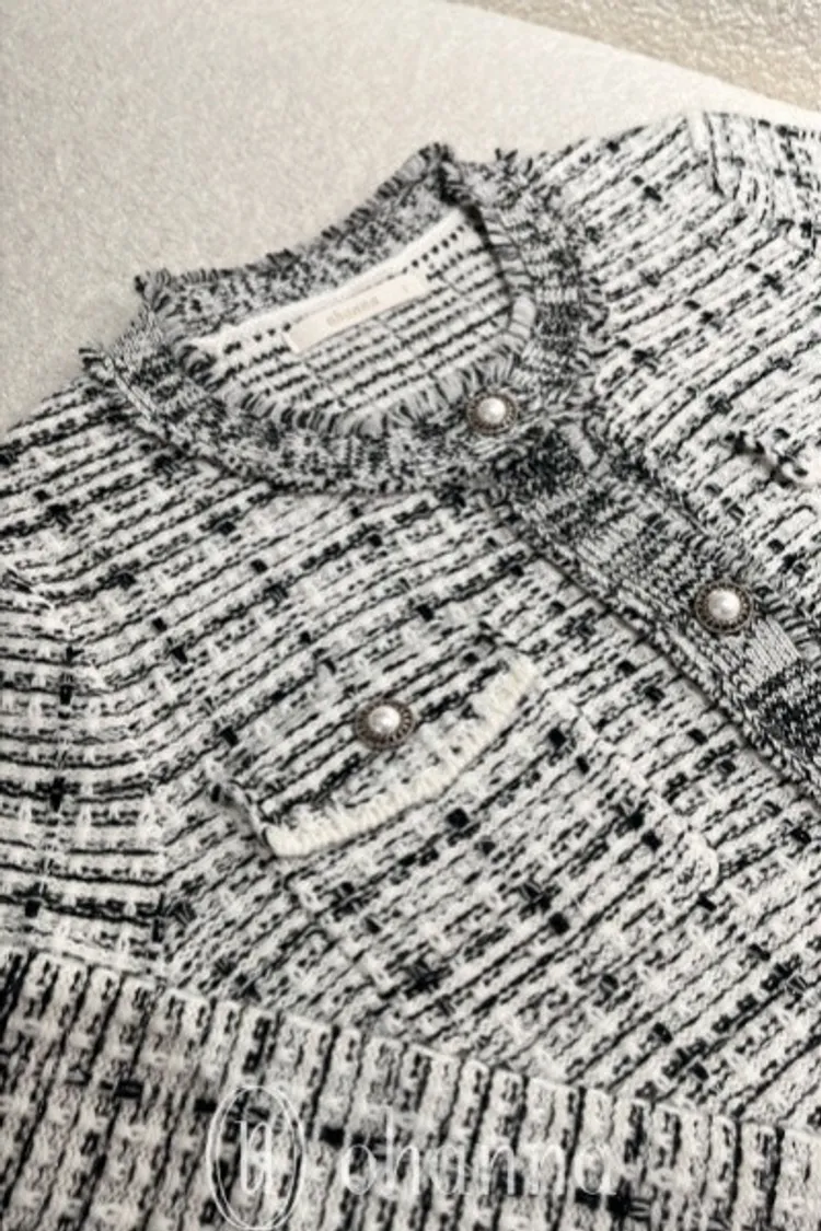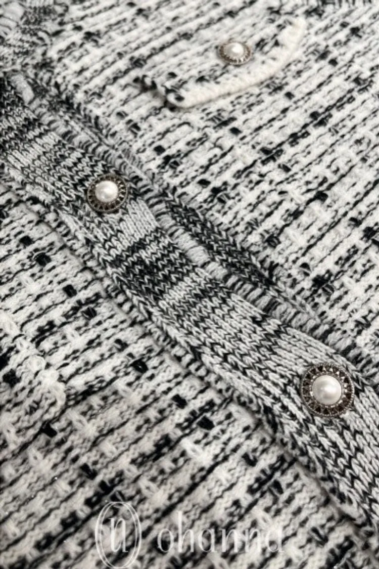 N113(自訂款)白底黑線混銀線香香風針織外套