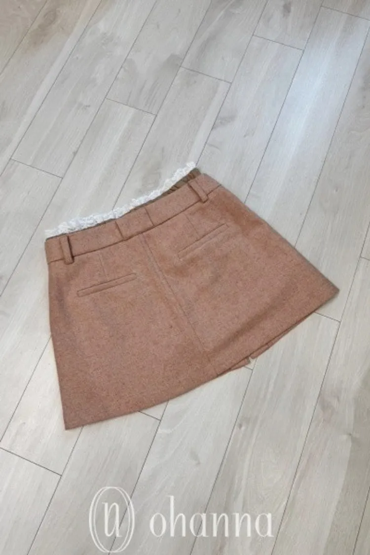 S047(自訂款)粉色外罩短裙+杏褲頭白蕾絲短褲 一組賣