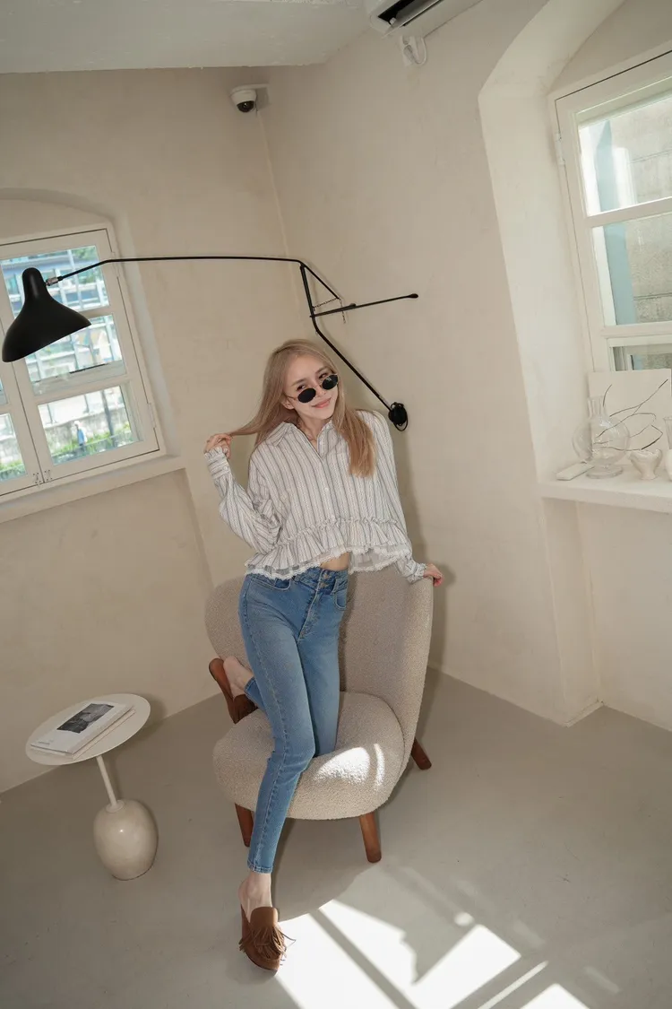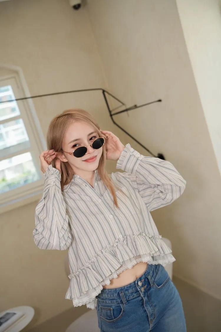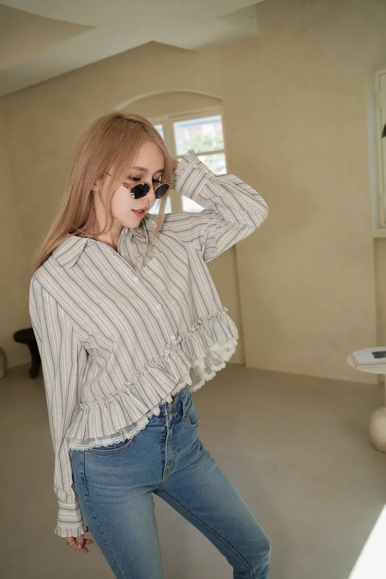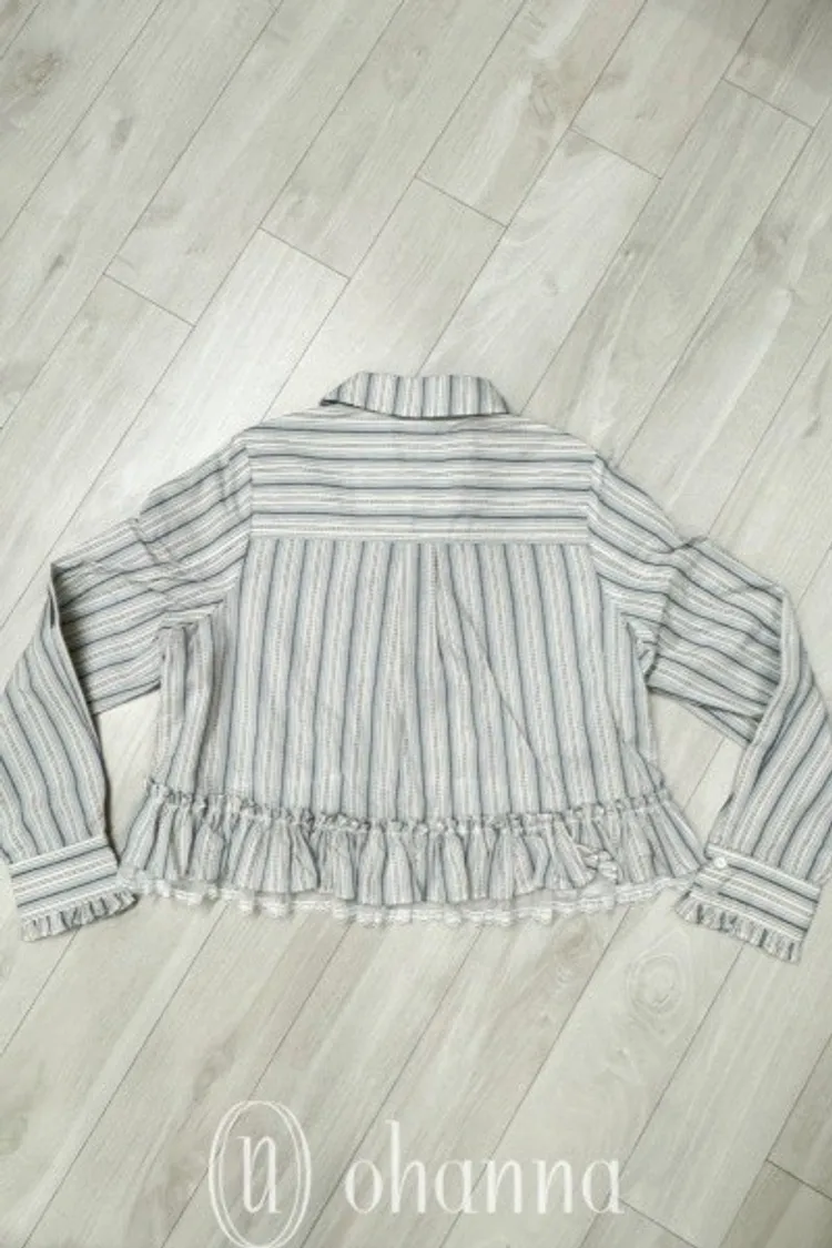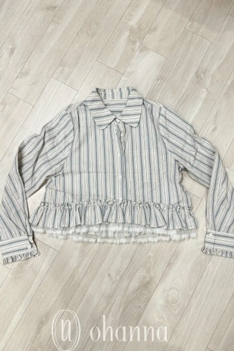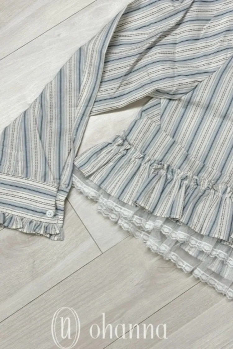 S052(自訂款)藍白條紋下擺荷葉可愛襯衫