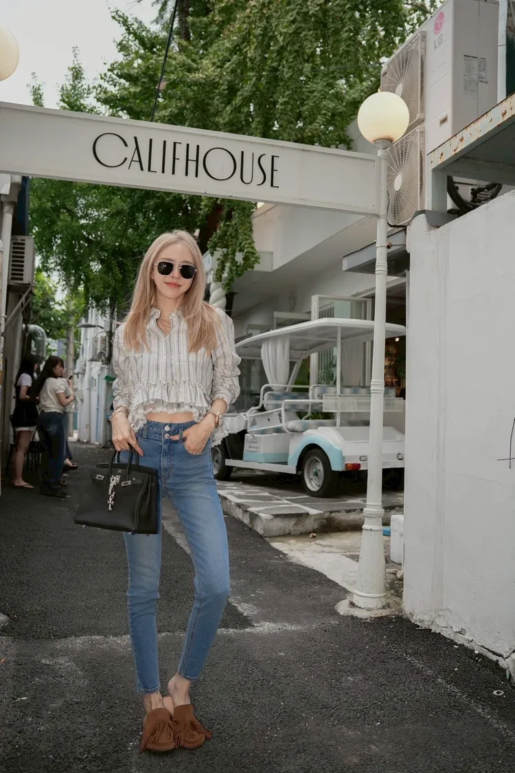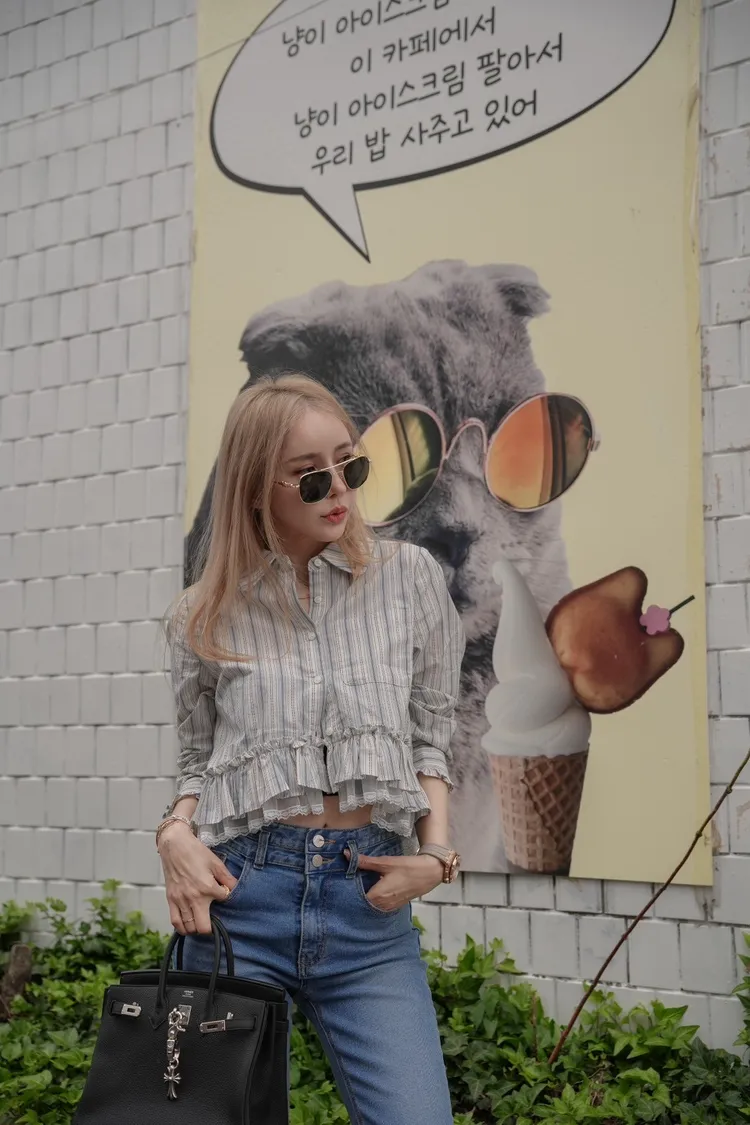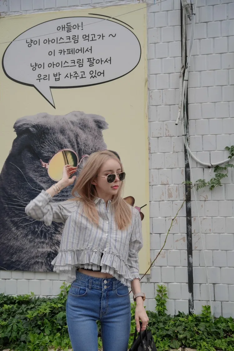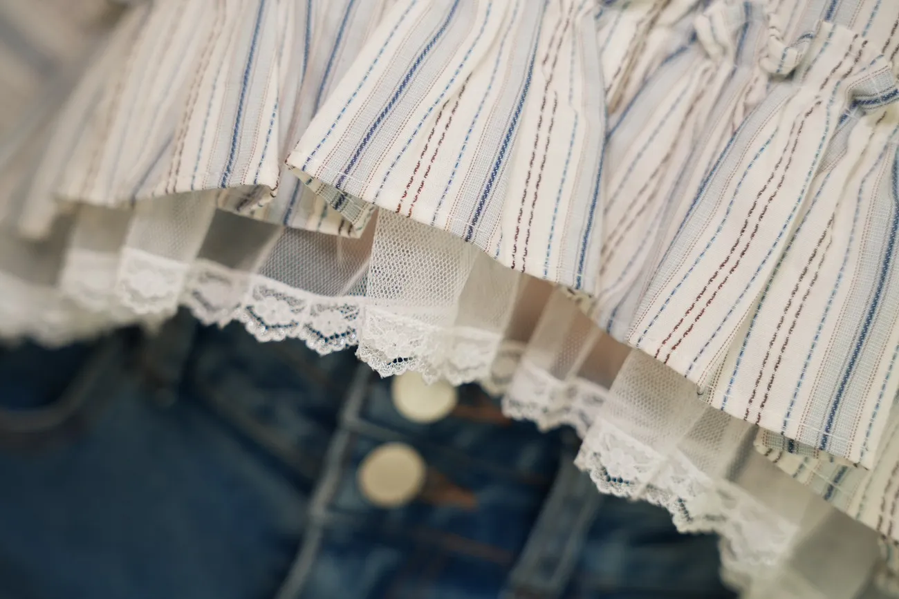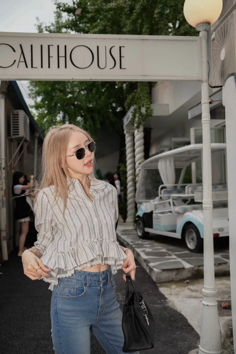 S052(自訂款)藍白條紋下擺荷葉可愛襯衫