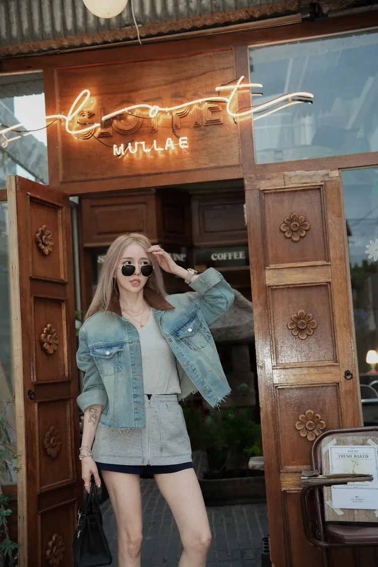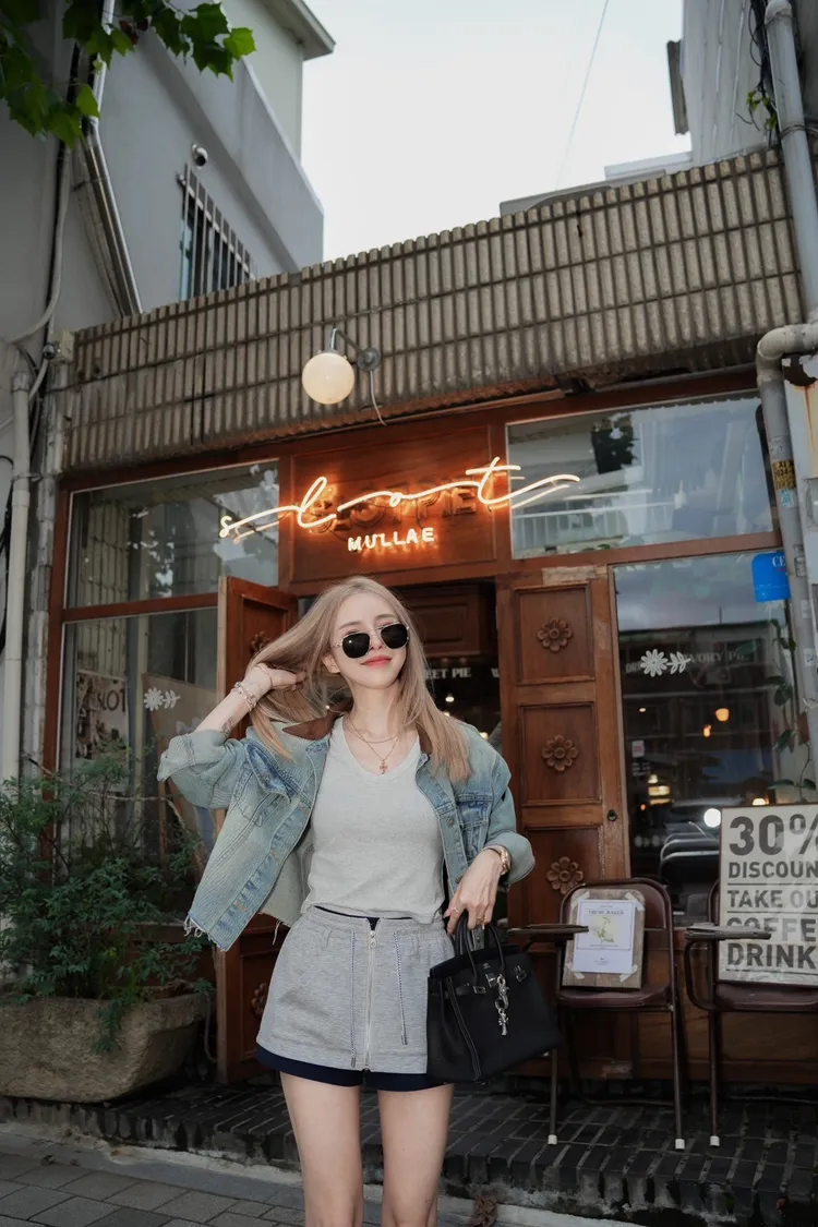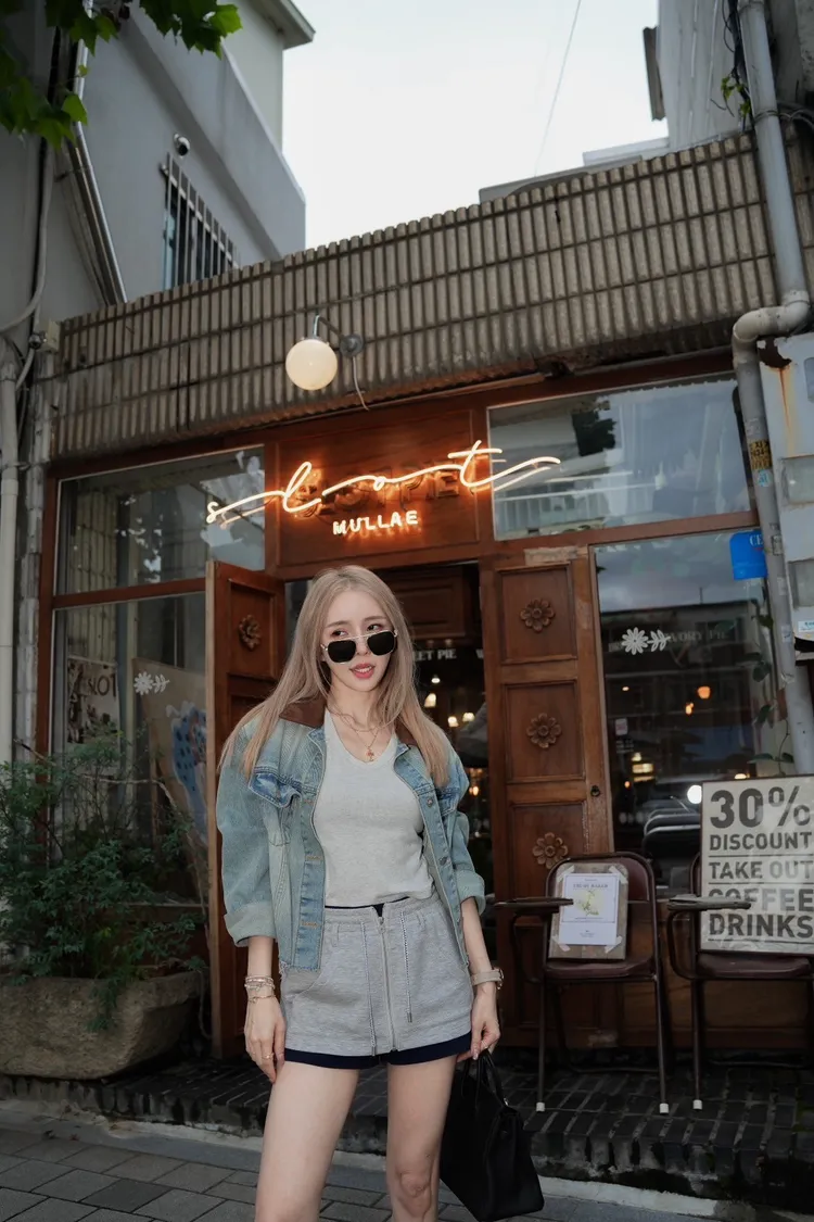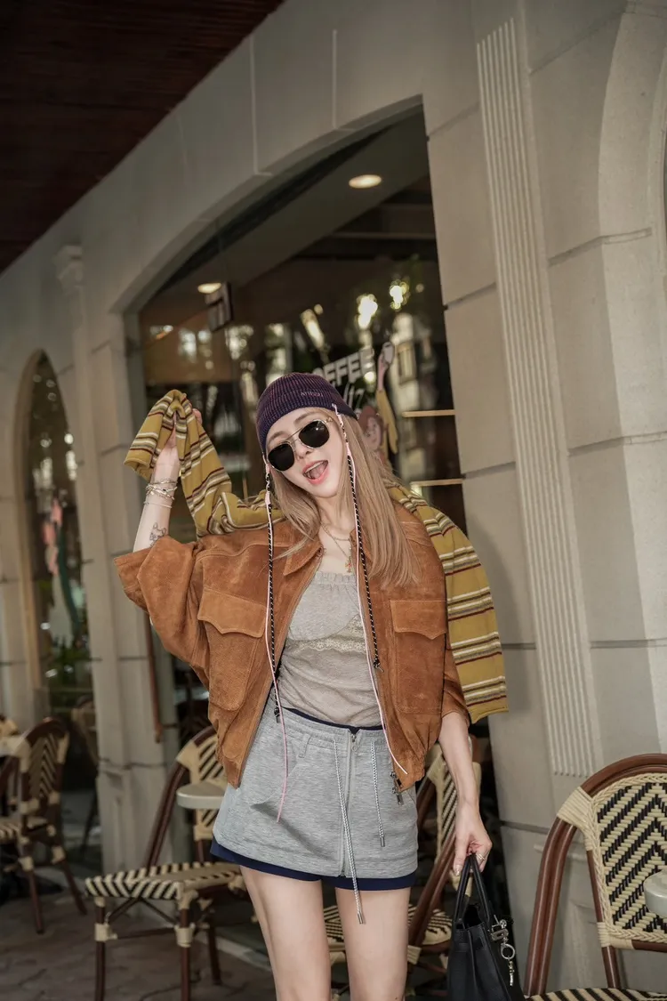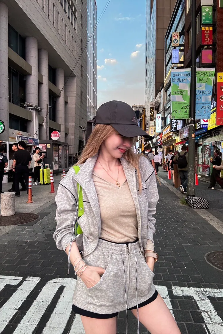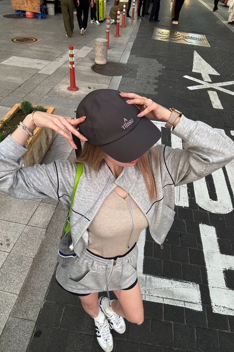 S053(自訂款)灰色流線立領抽繩拉鏈外套+外罩裙短褲 一組賣