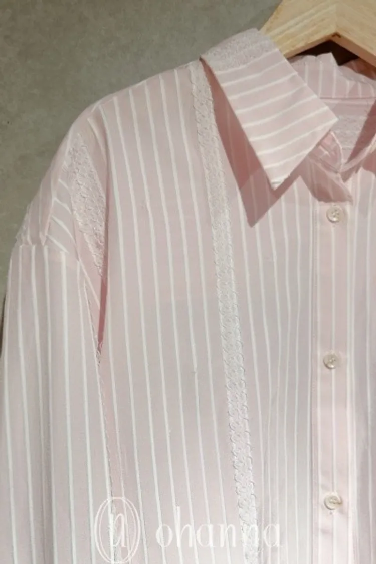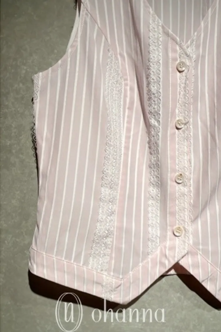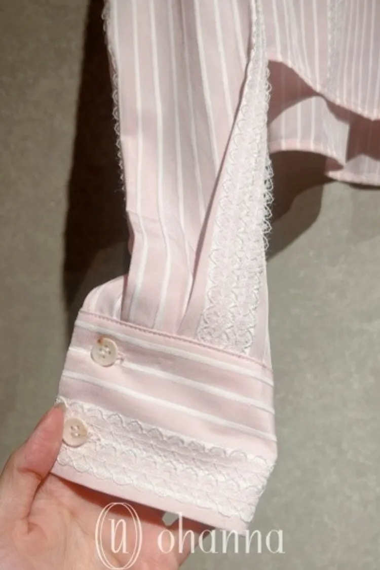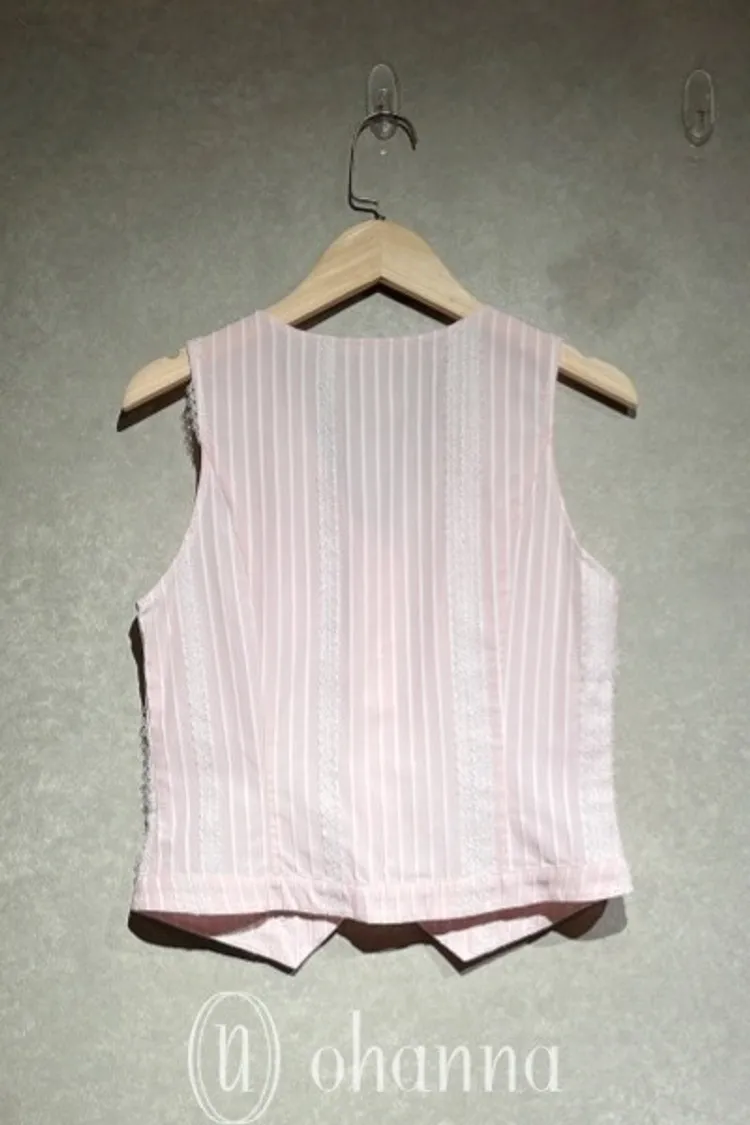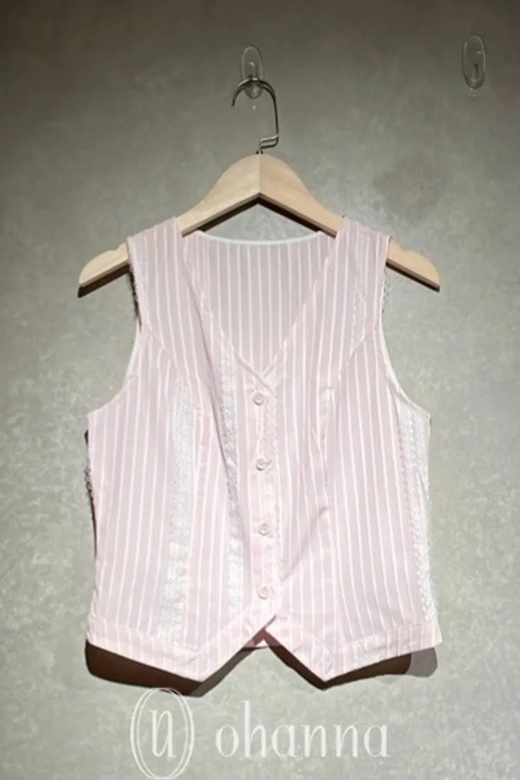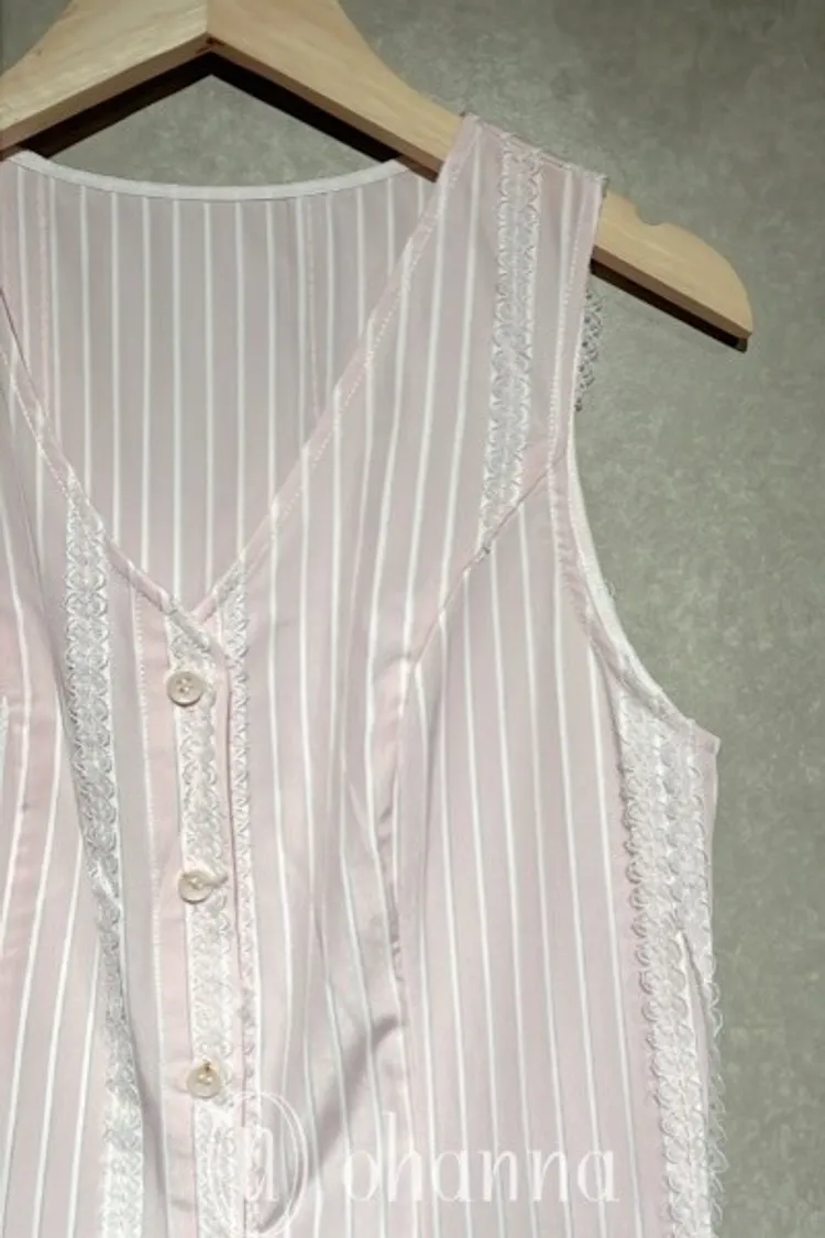 S093(自訂款)粉色條紋蕾絲背心+襯衫 一組賣