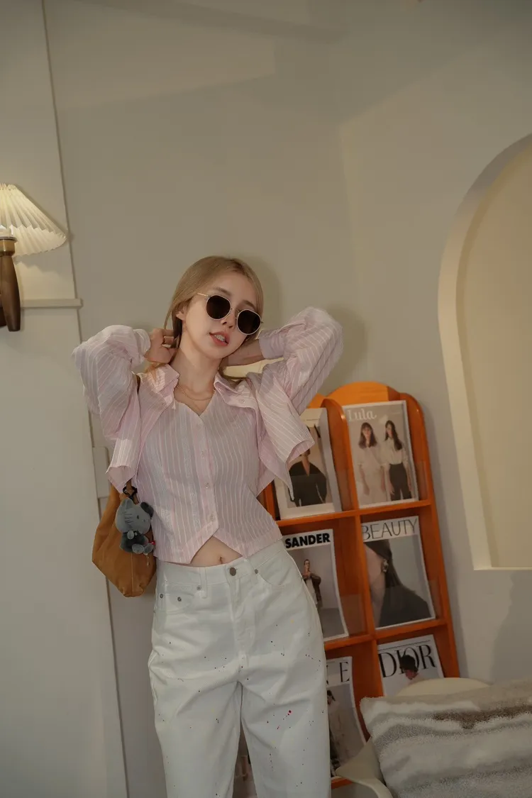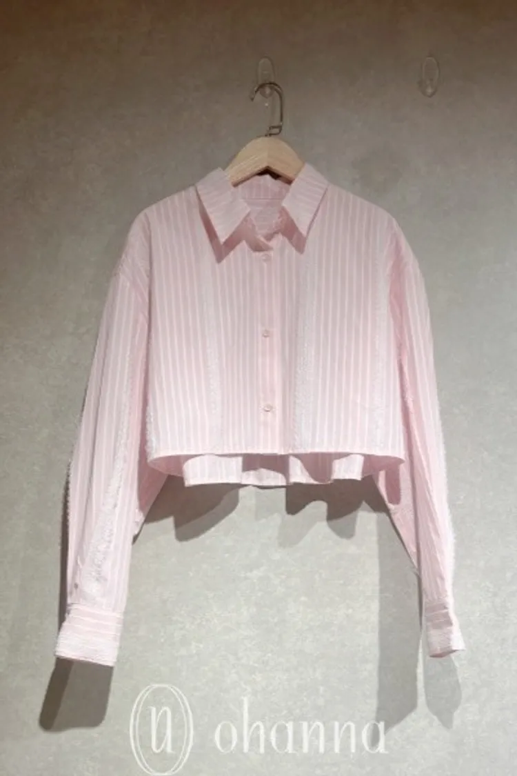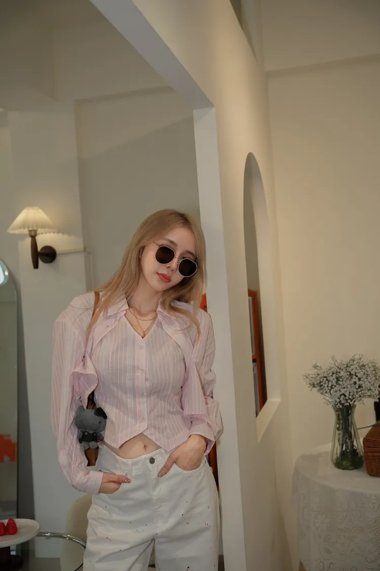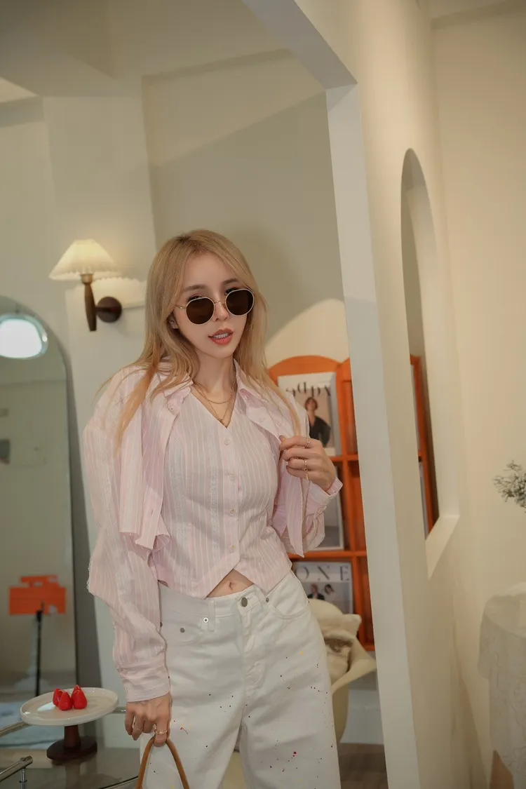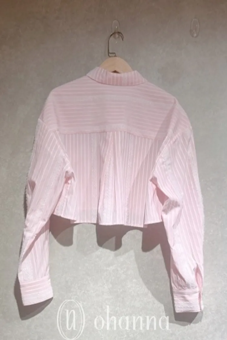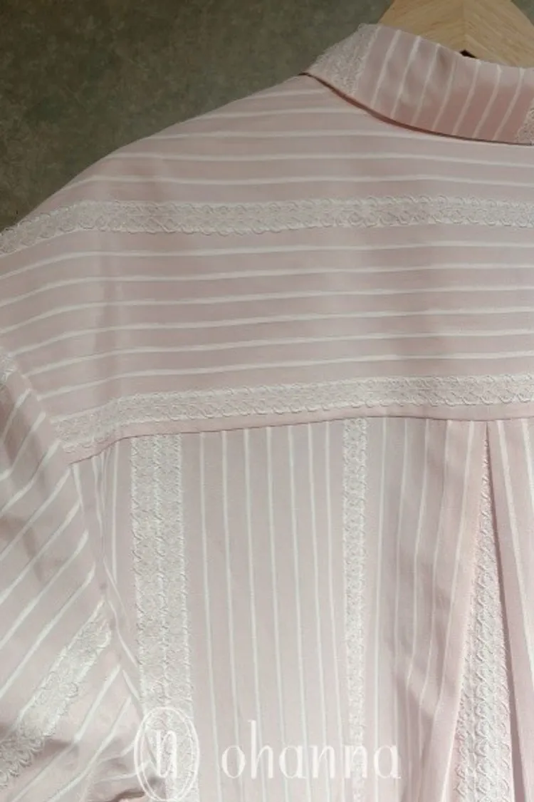S093(自訂款)粉色條紋蕾絲背心+襯衫 一組賣