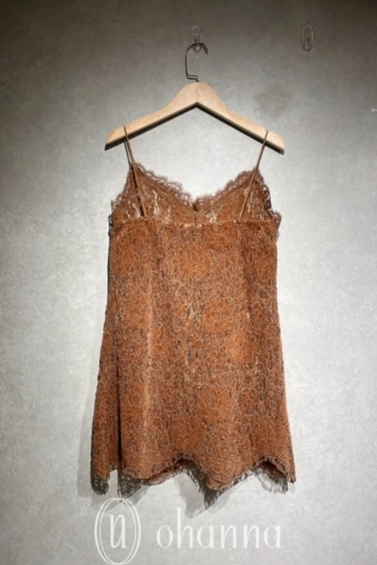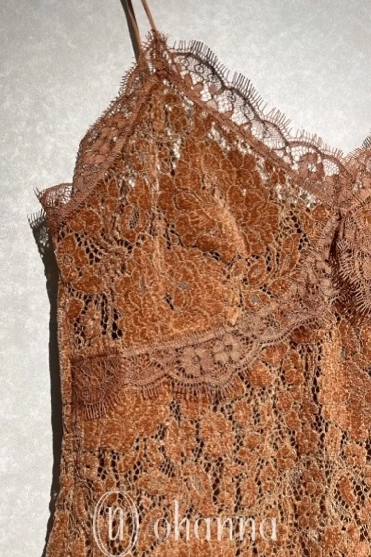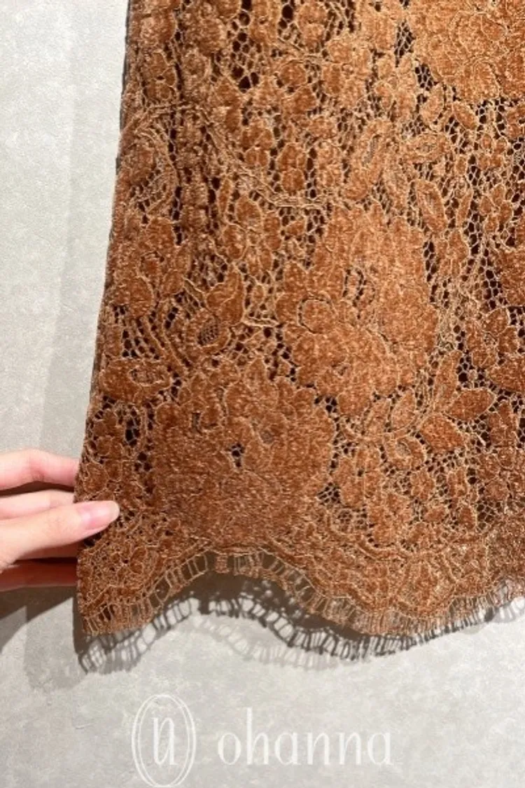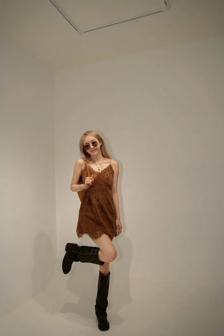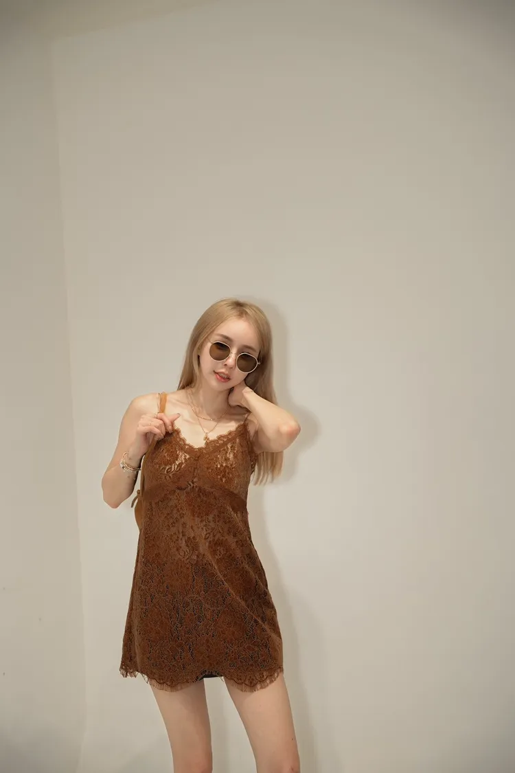 S115(自訂款)咖色絨面簍空蕾絲短洋裝