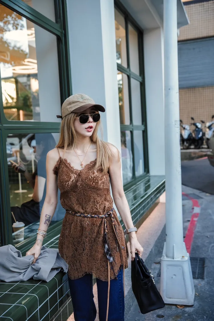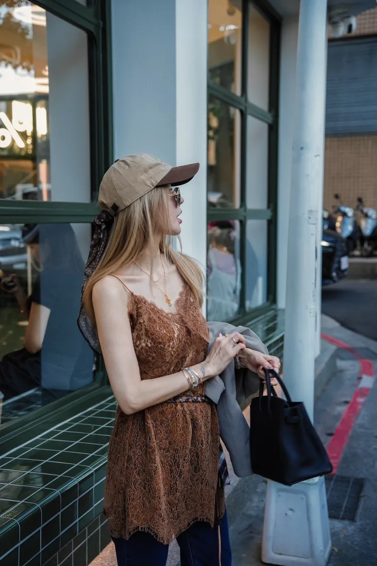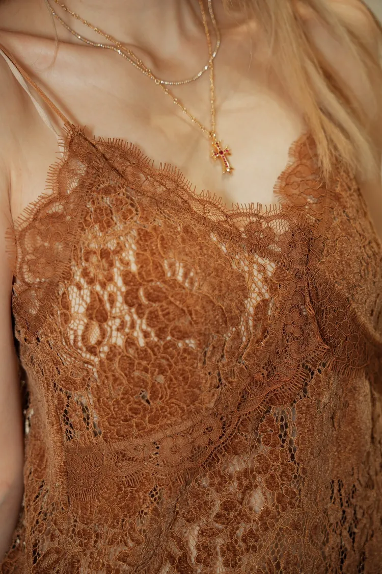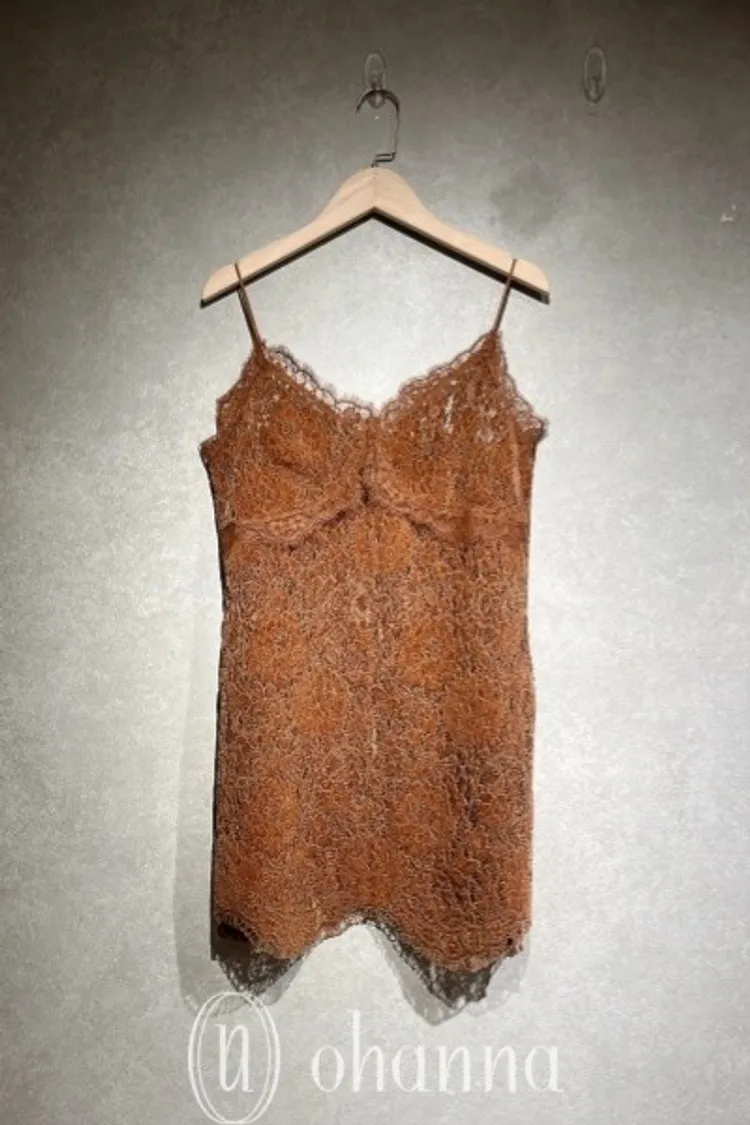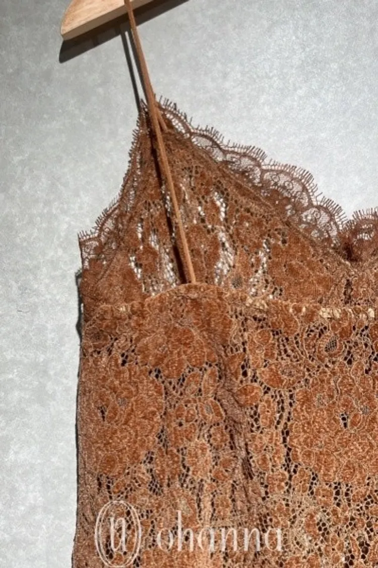 S115(自訂款)咖色絨面簍空蕾絲短洋裝