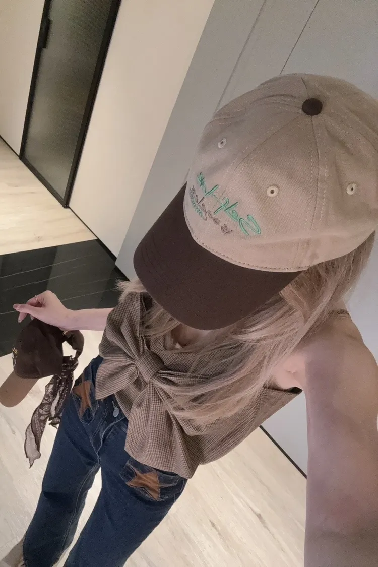 S131(自訂款)品牌標語撞色老帽(附絲巾)