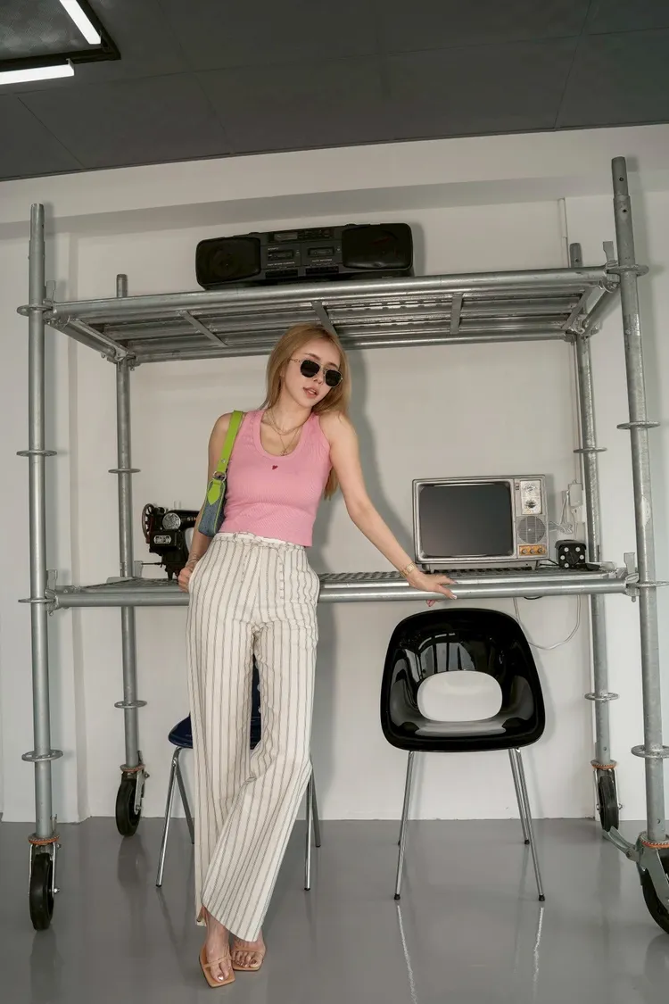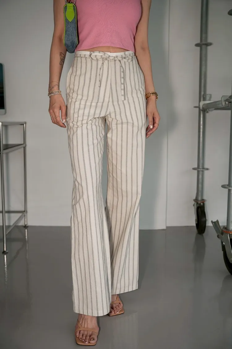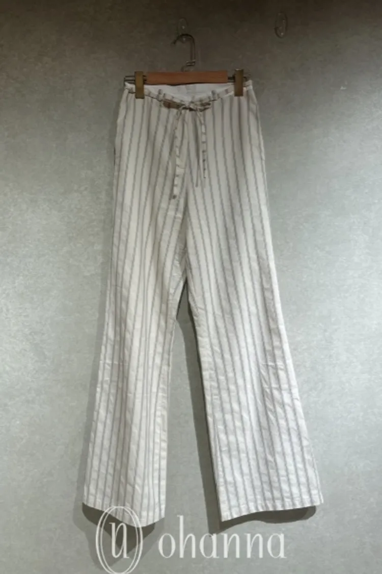 U013(自訂款)虛線條紋褲頭白邊腰綁帶長褲