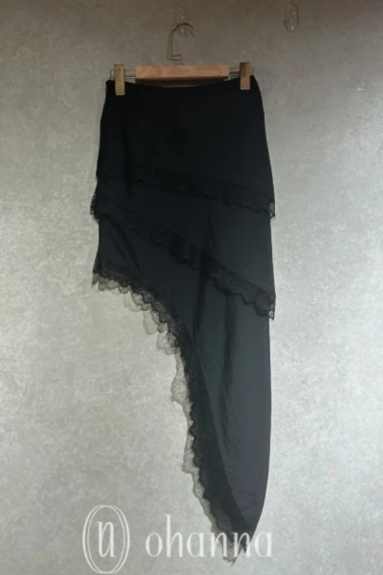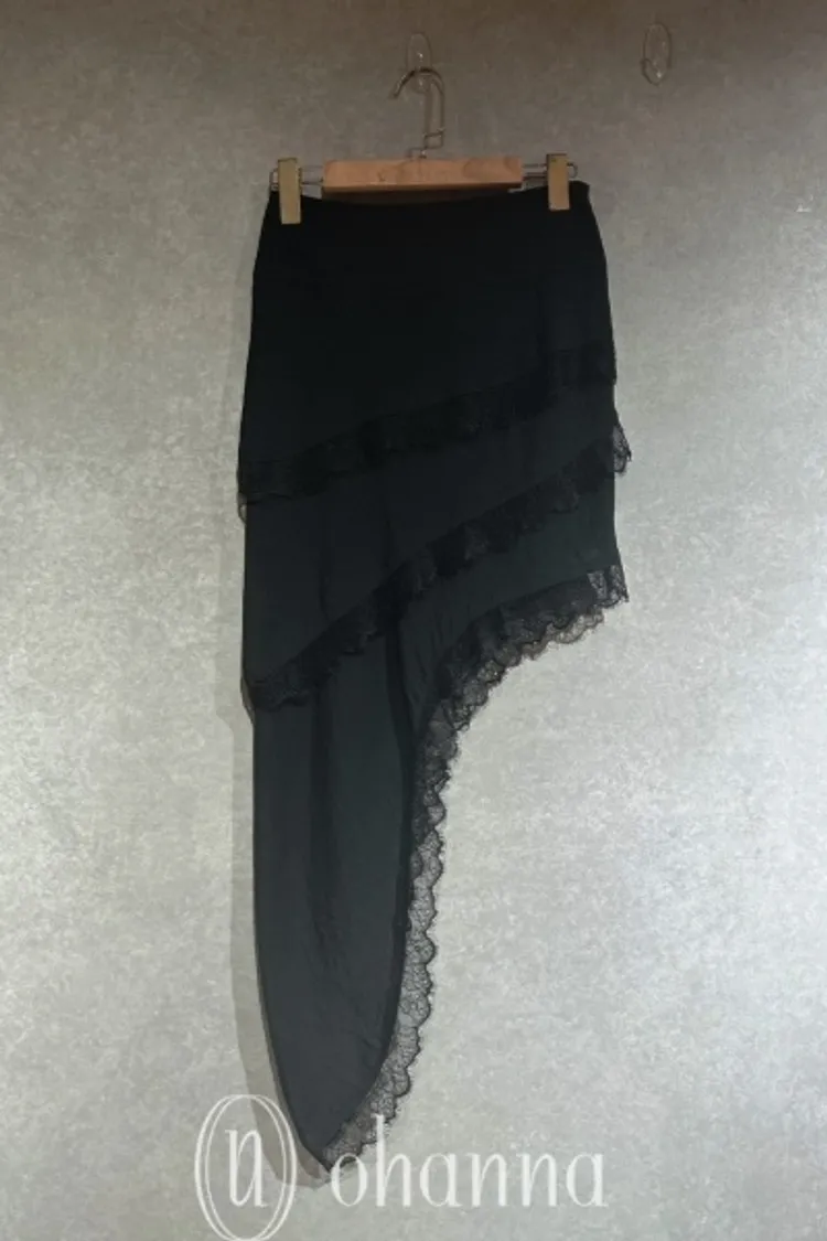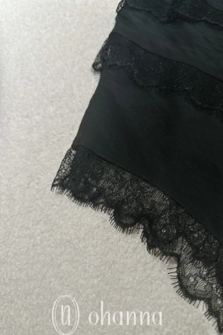U024(自訂款)黑色蕾絲邊側挖空長裙