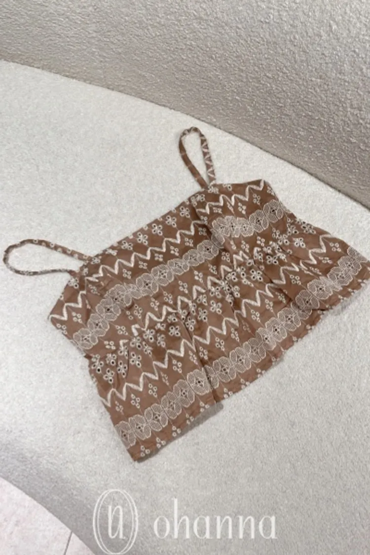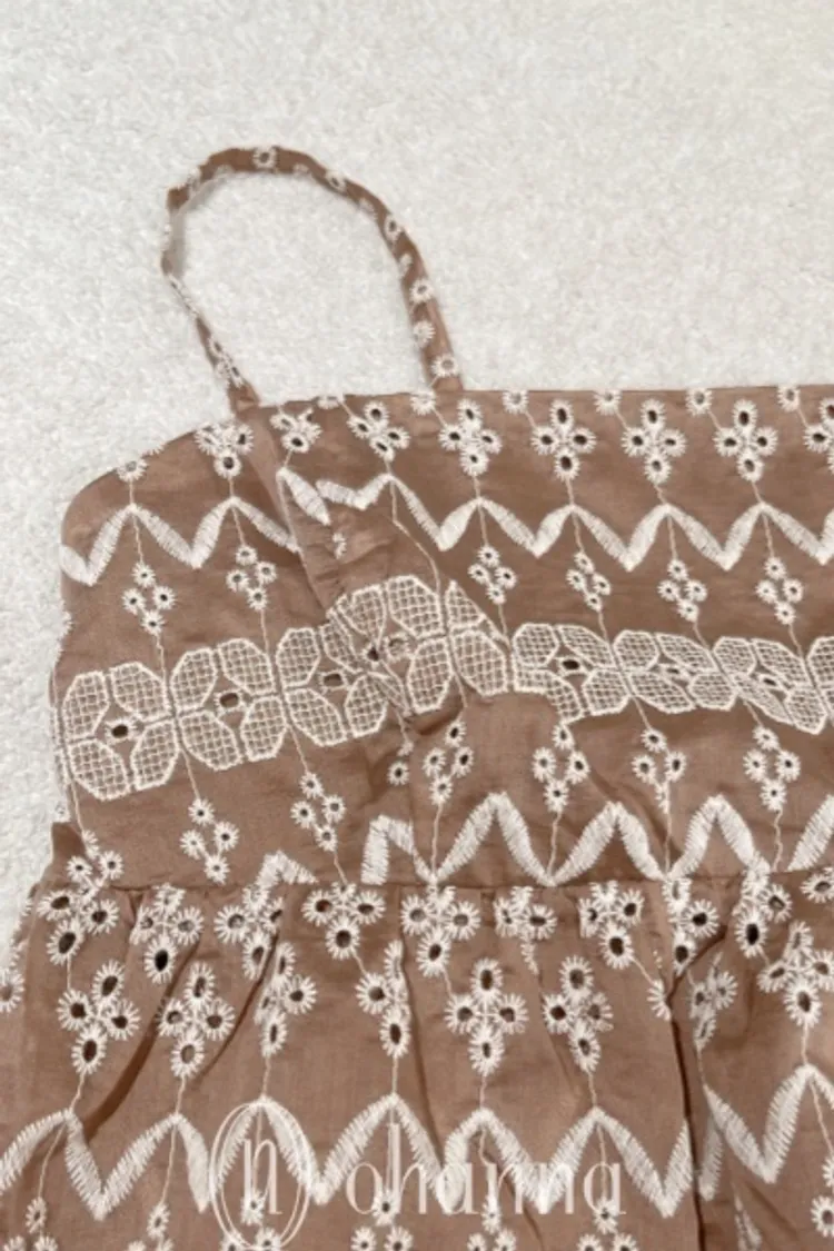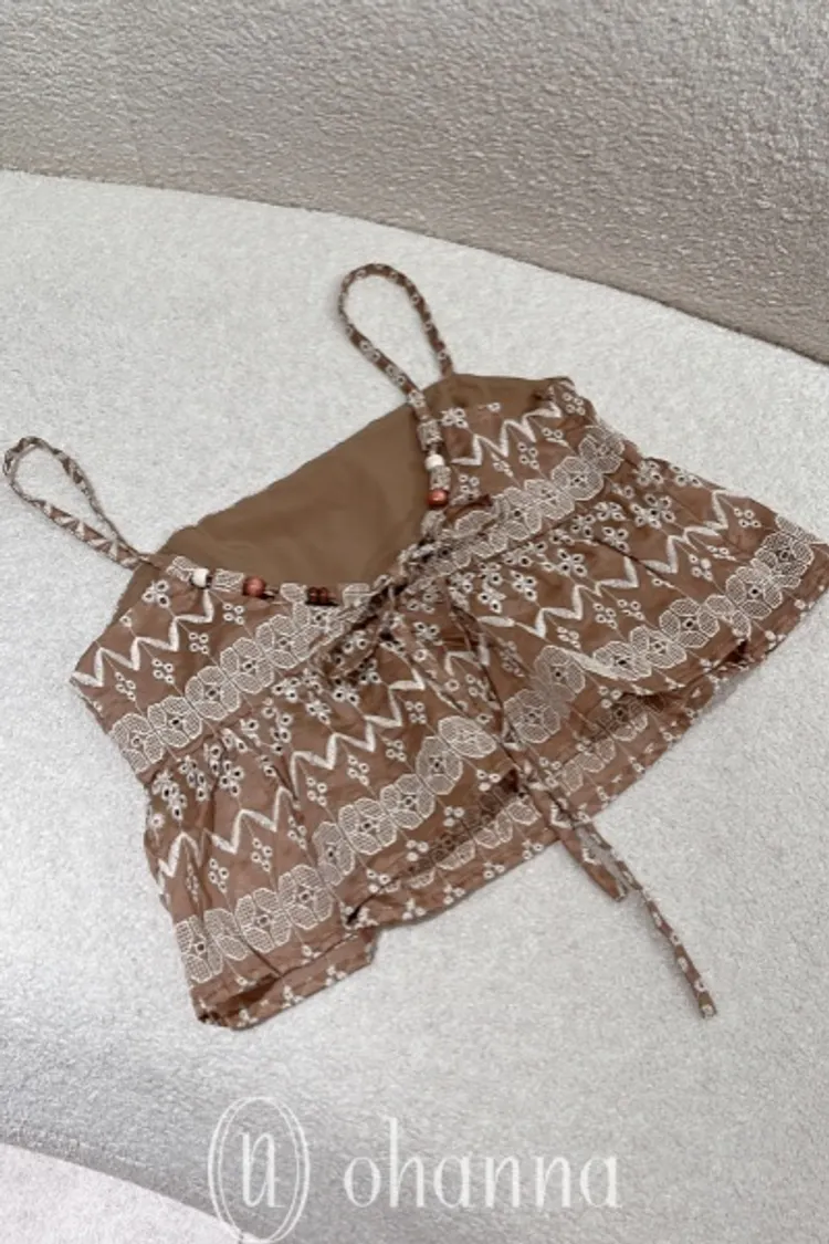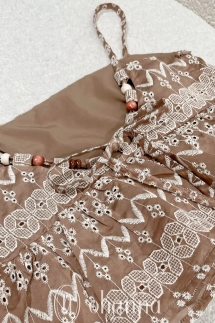 U033(自訂款)咖色刺繡美背珠珠後綁帶背心