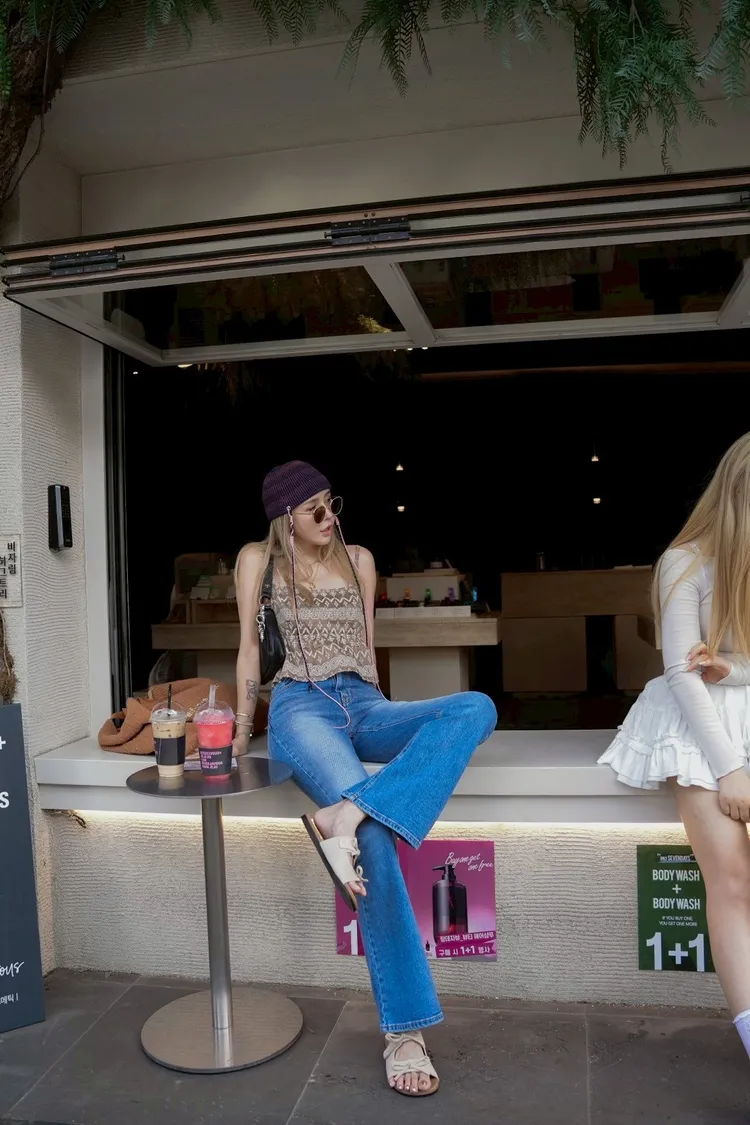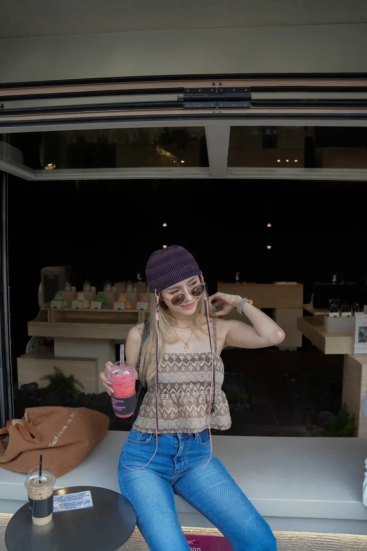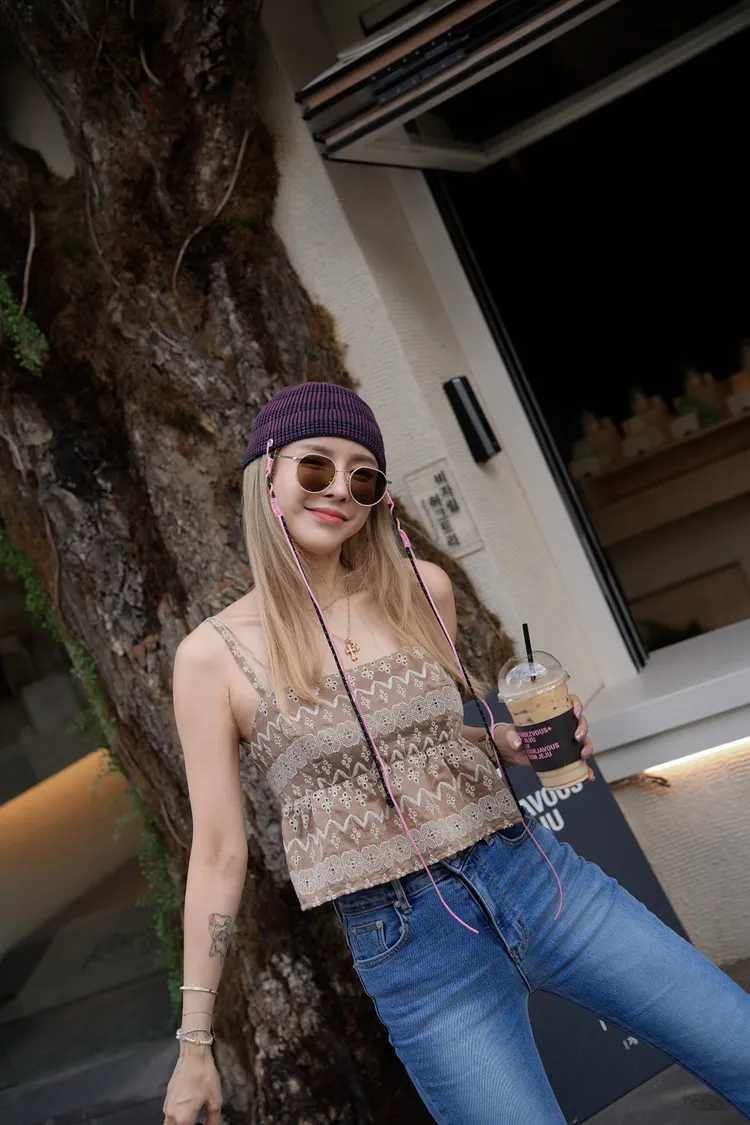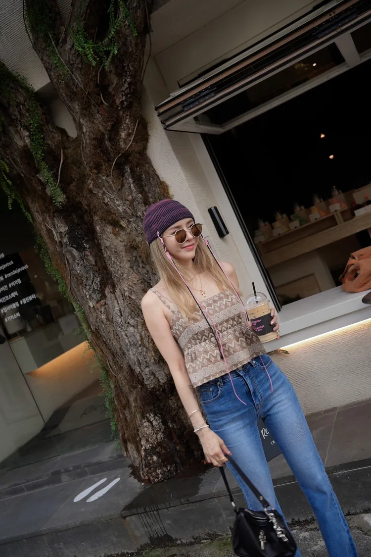 U033(自訂款)咖色刺繡美背珠珠後綁帶背心
