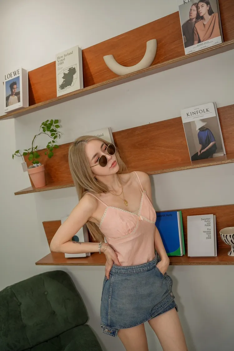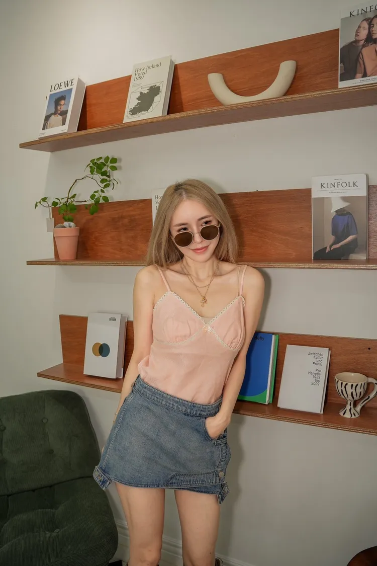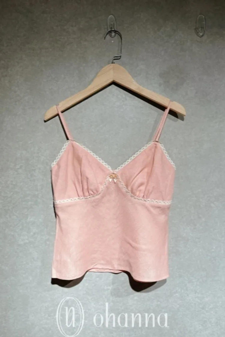 U257(自訂款)胸蝴蝶結接緹花細肩帶背心