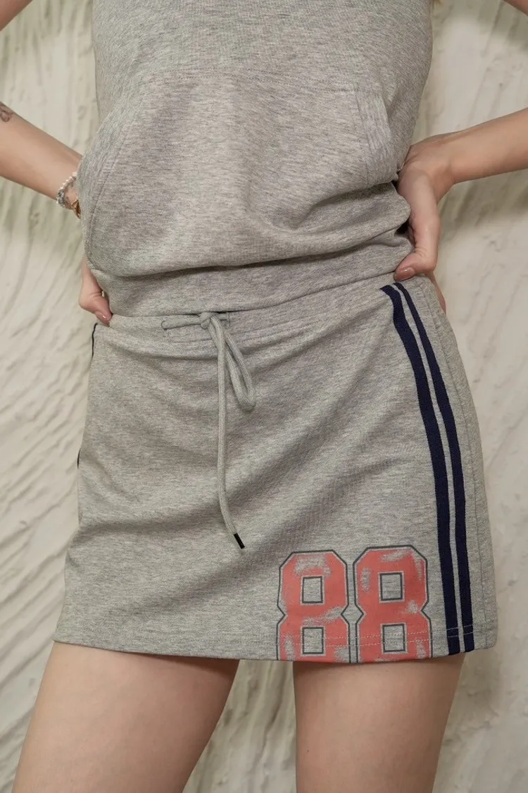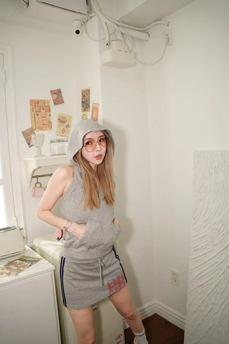U260(自訂款)灰色V領連帽休閒背心+褲裙
