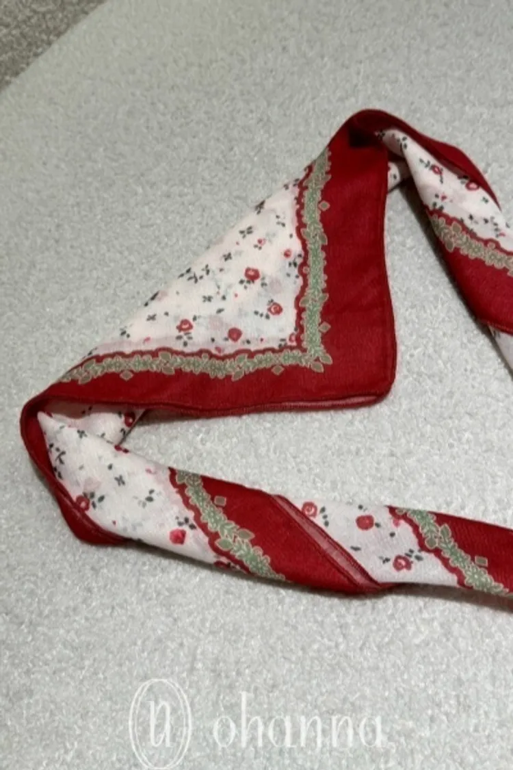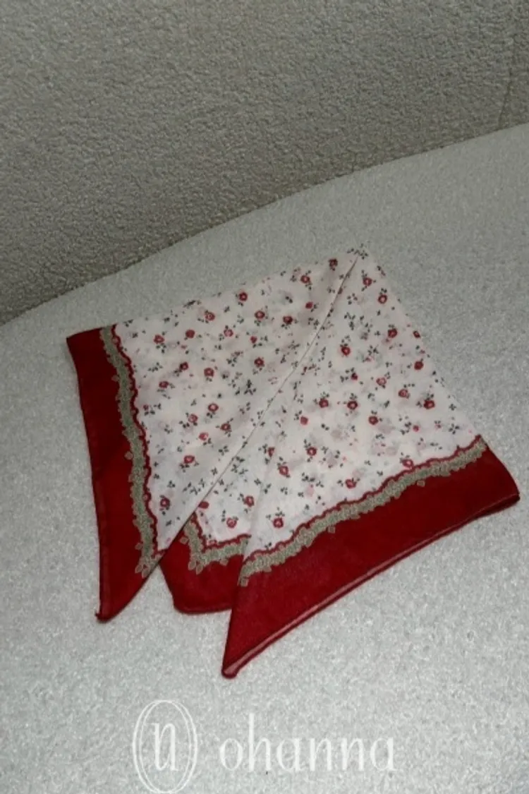Y076紅色小花棉麻方巾