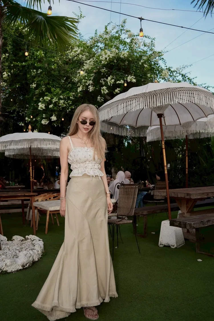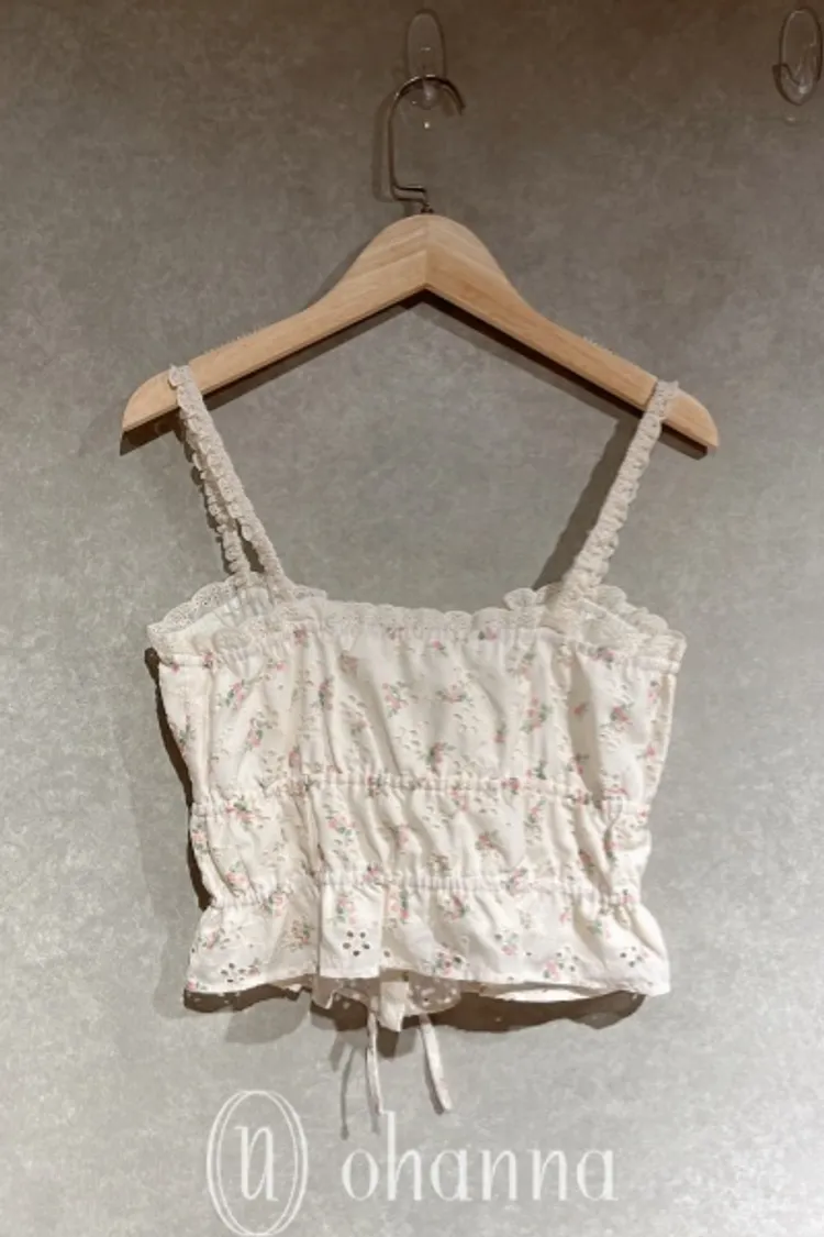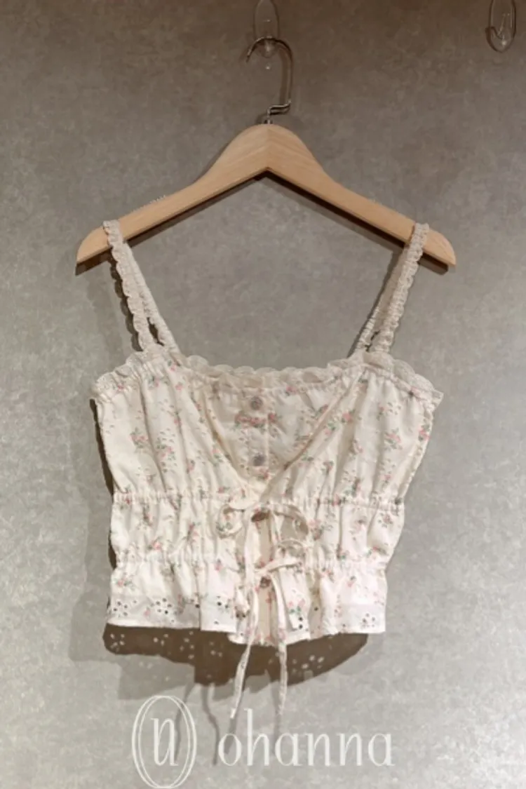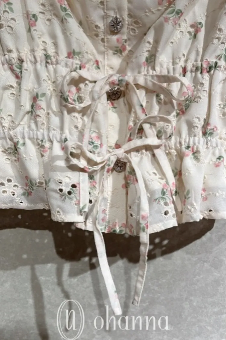 Y091(自訂款)米色花朵排釦腰抽繩背心