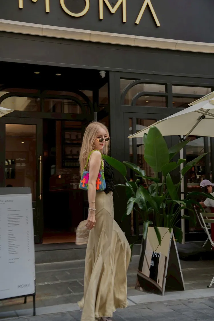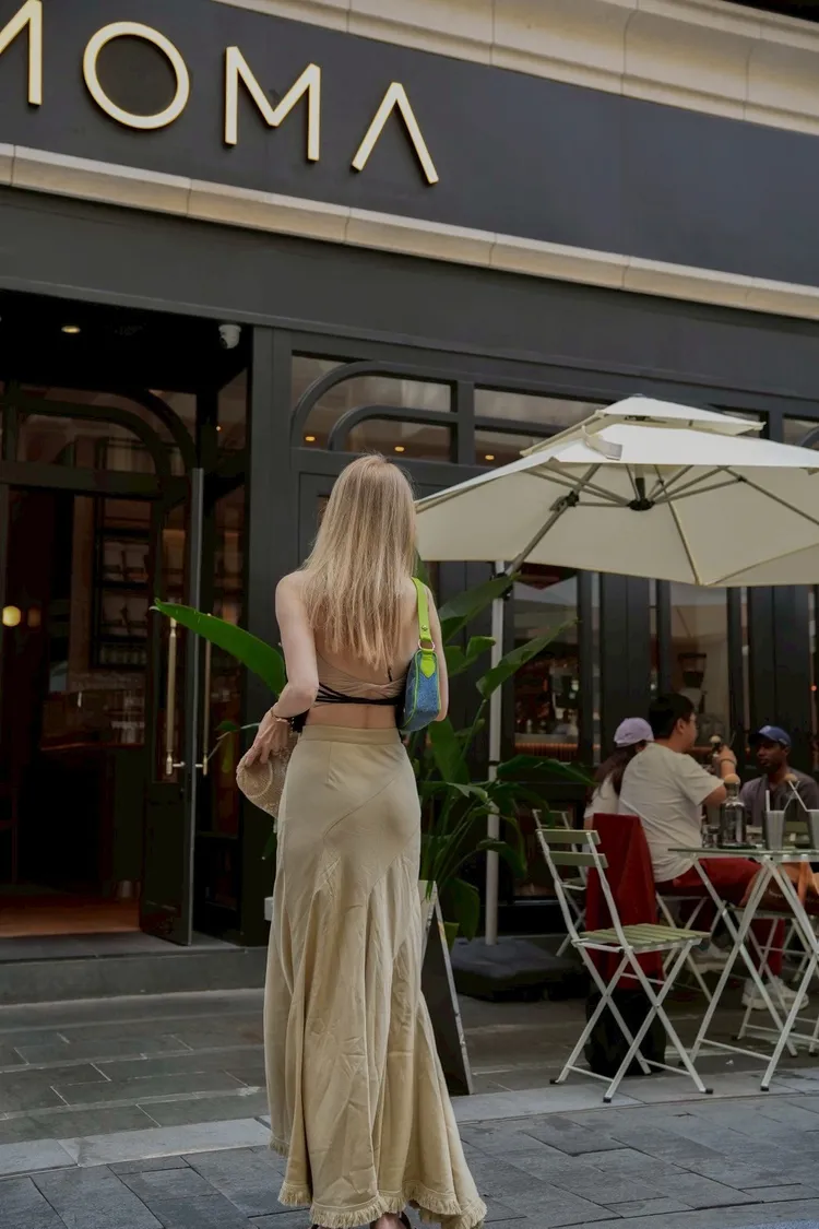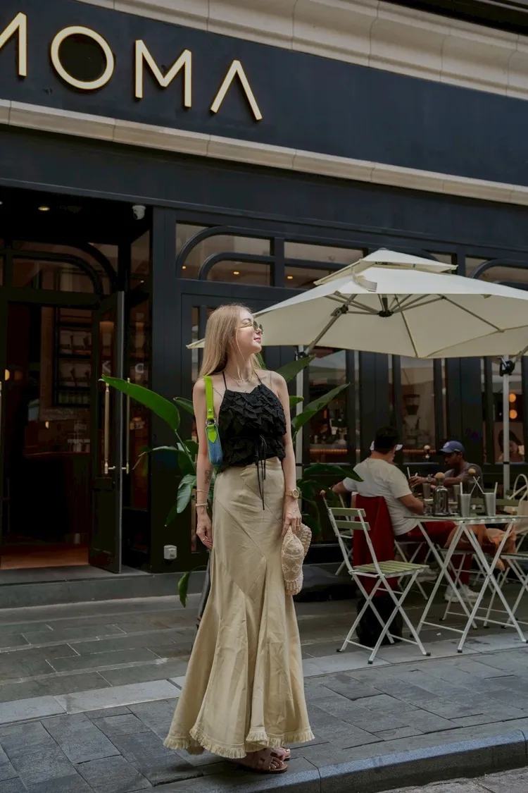 Y111(自訂款)杏色裙襬小鬚感長裙