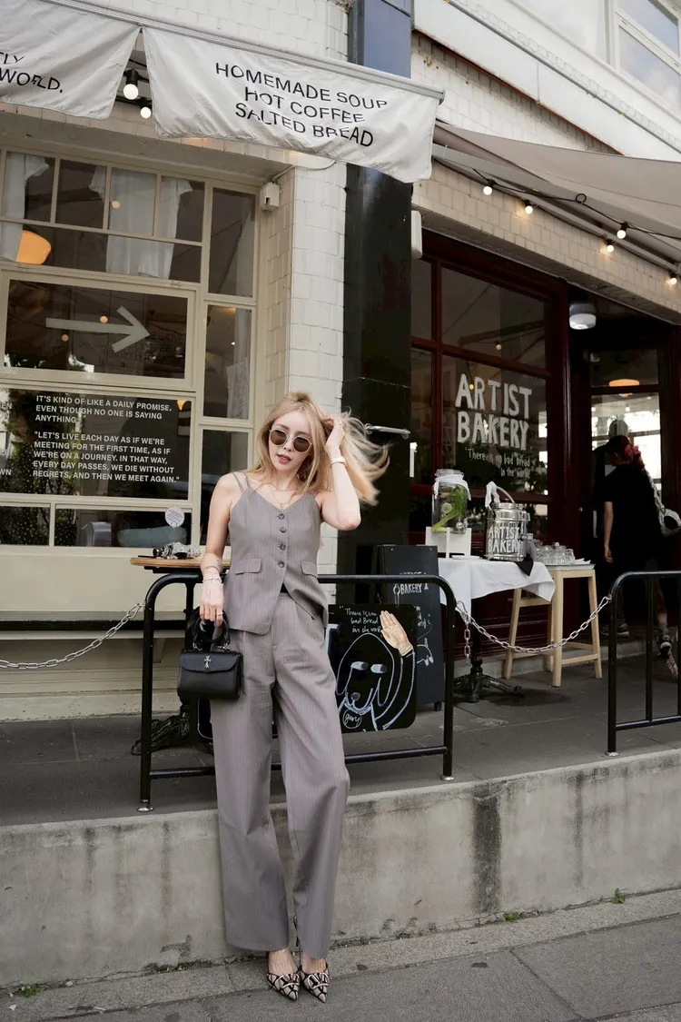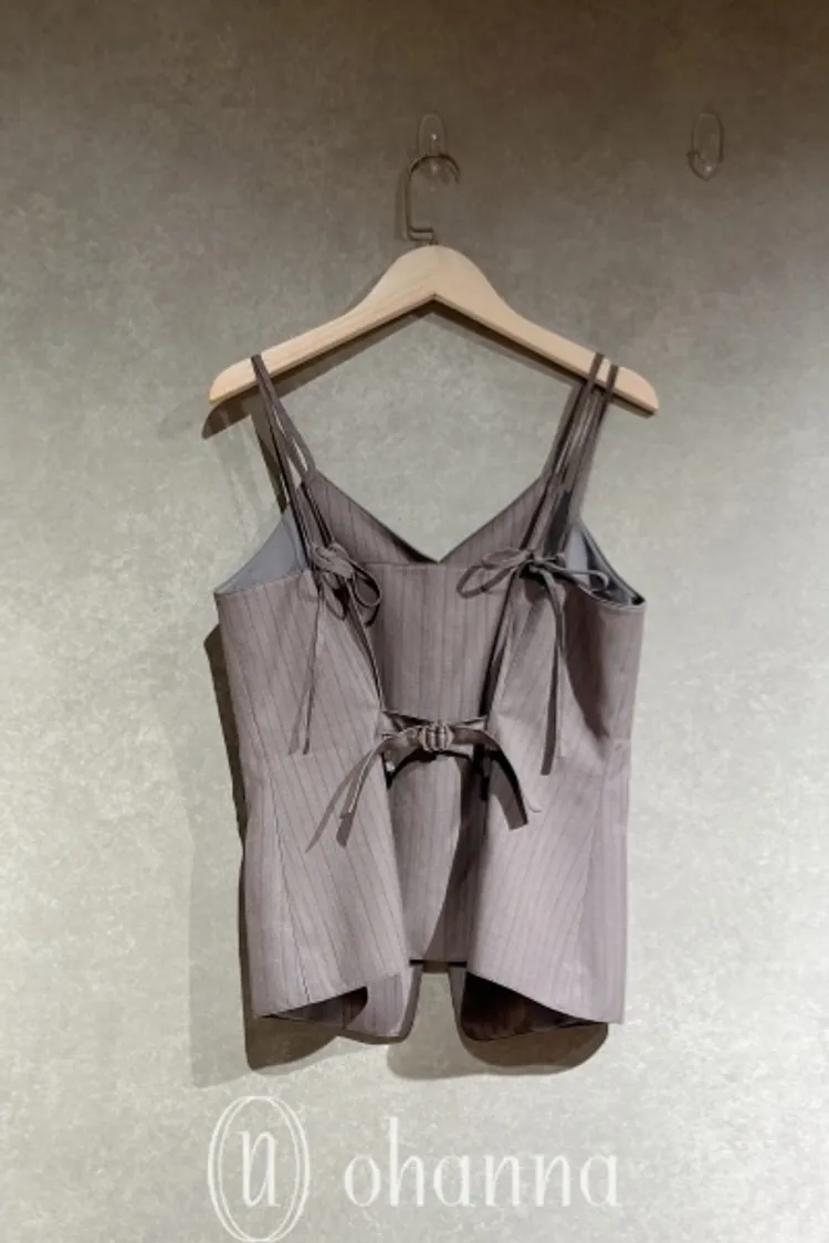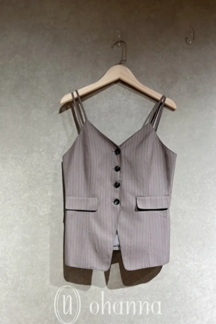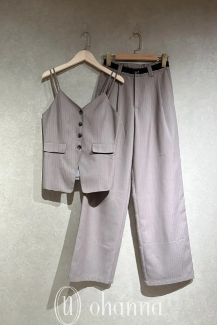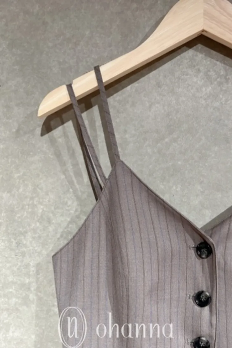 Y114(自訂款)灰色線條排扣細肩帶西裝背心+長褲