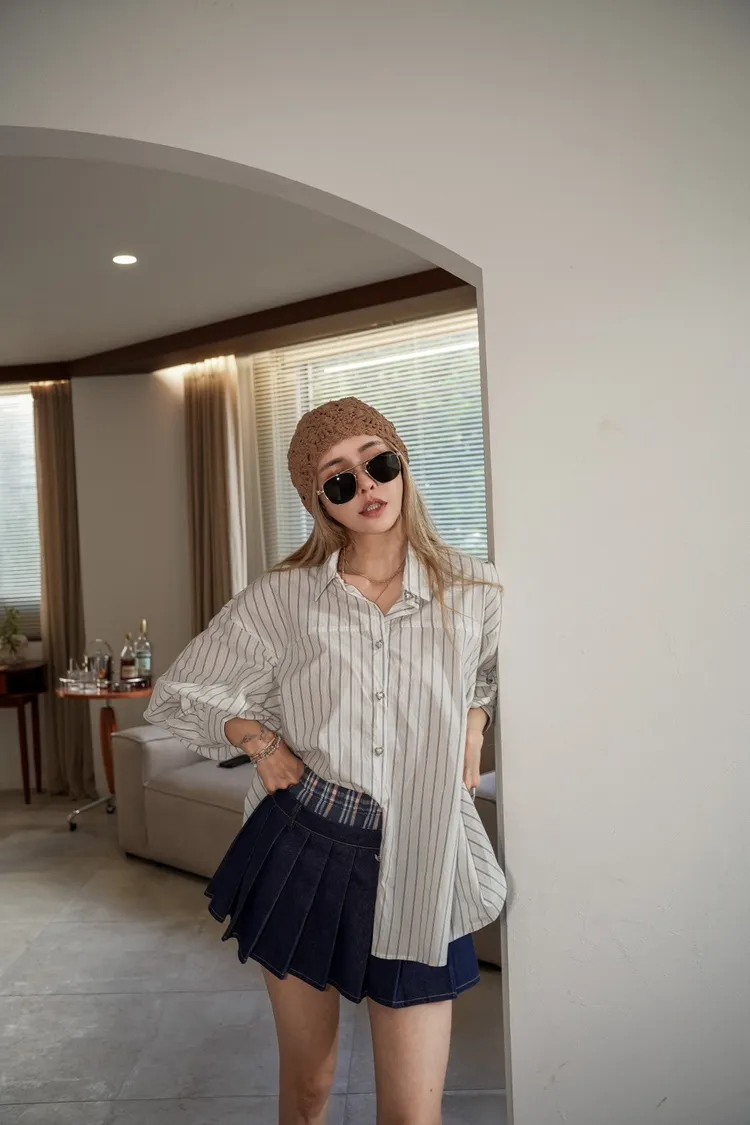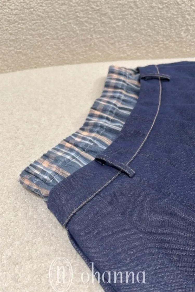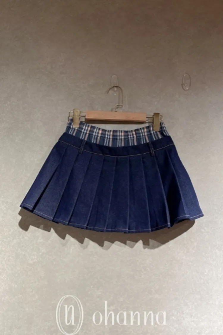Y115(自訂款)深藍褲頭格紋百褶褲裙