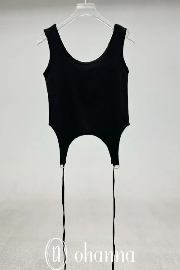 A010黑色釦環綁繩可兩穿造型背心