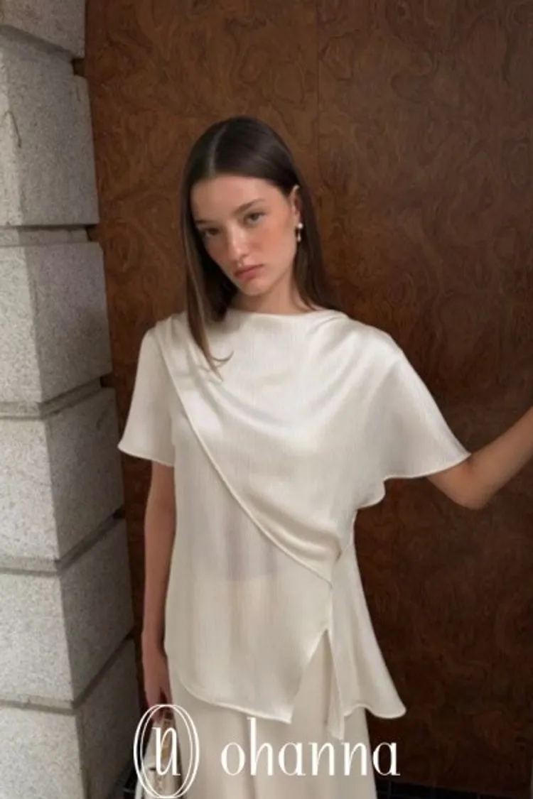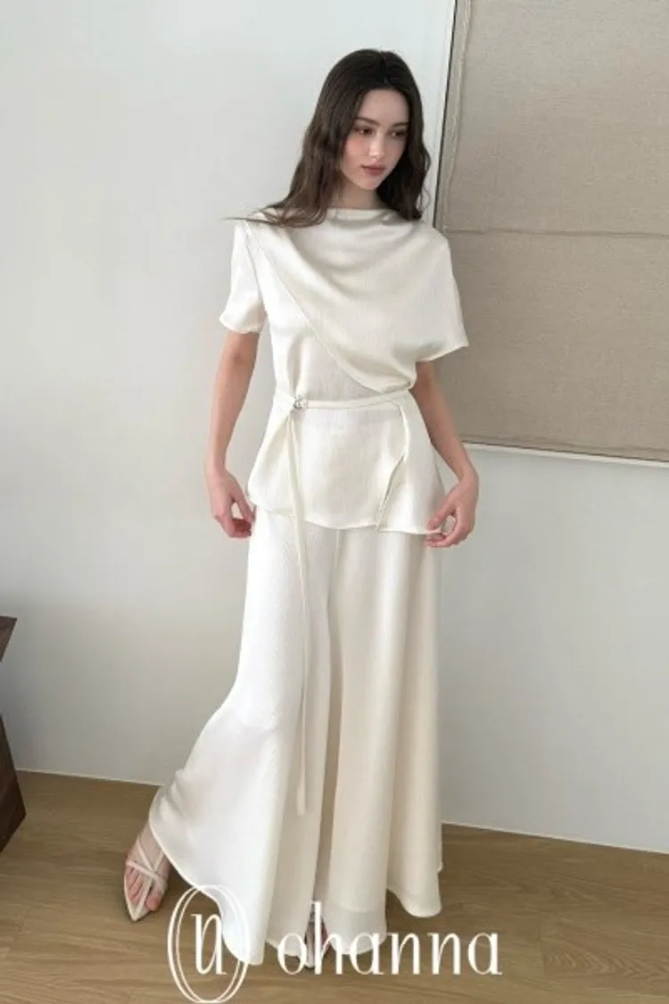A029米色質感壓紋上衣(附腰帶)