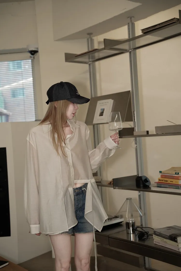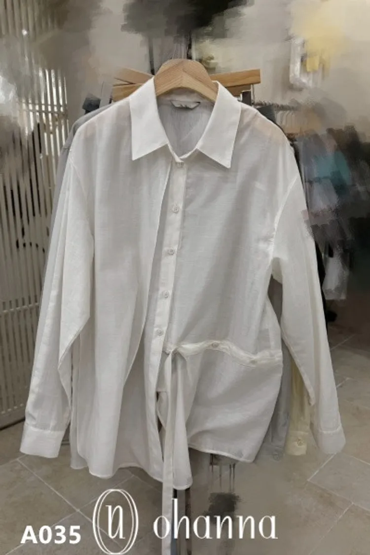 A035白色不對稱設計襯衫