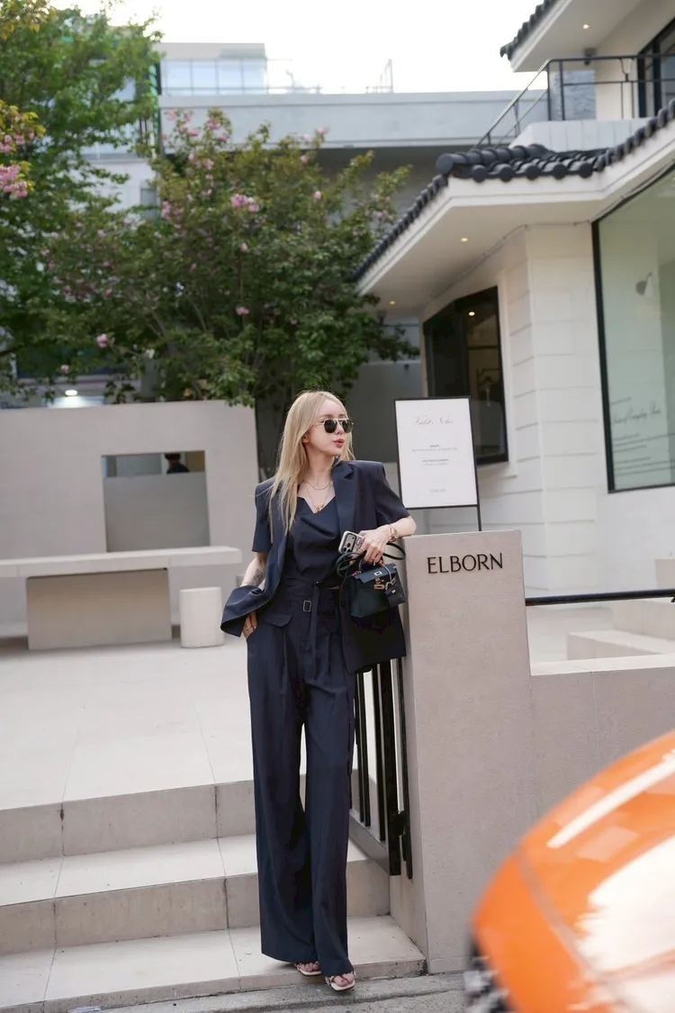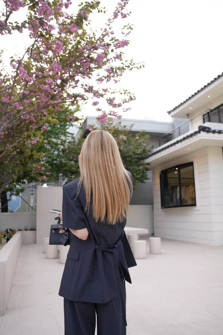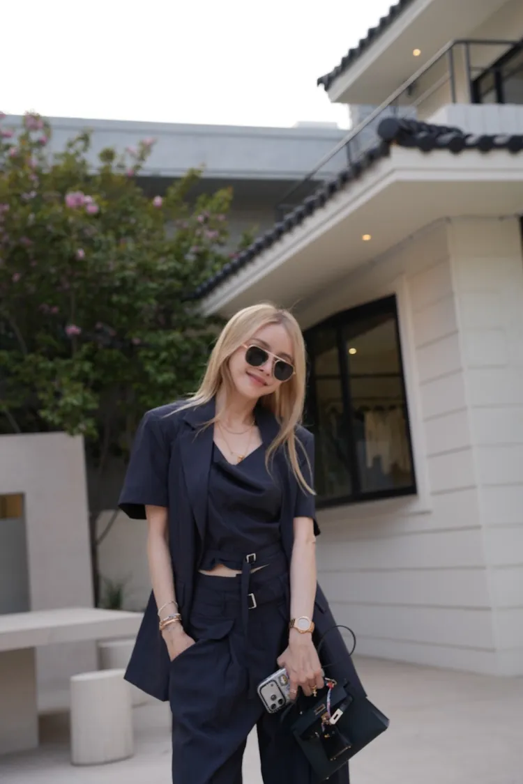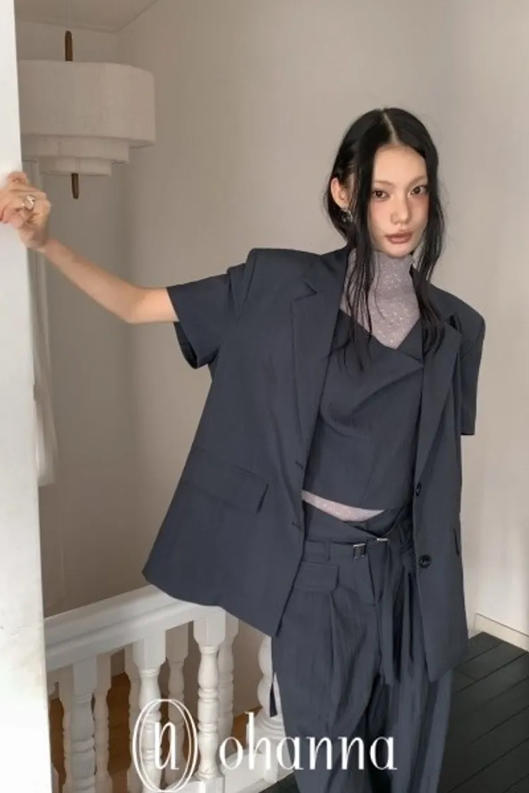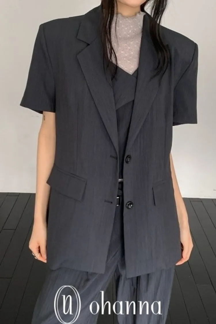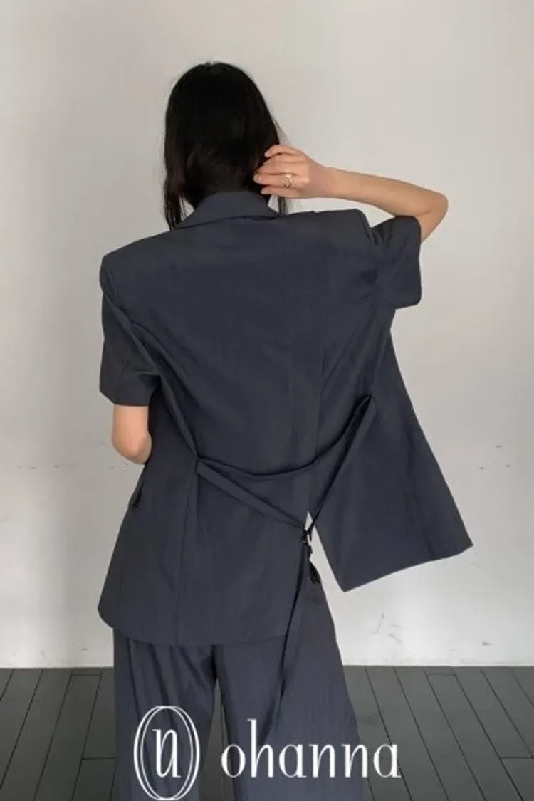 A045墨色短袖西裝外套(附腰帶)