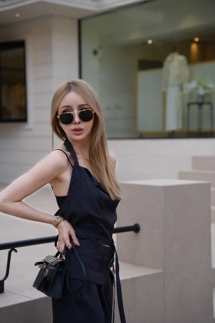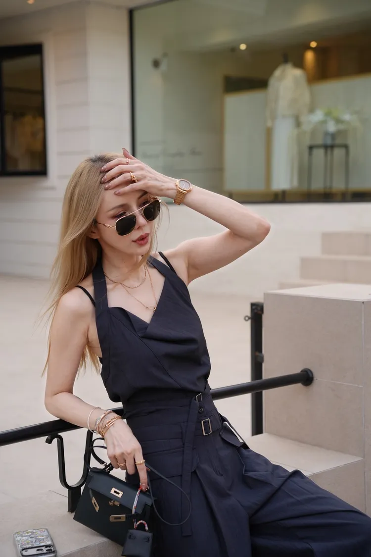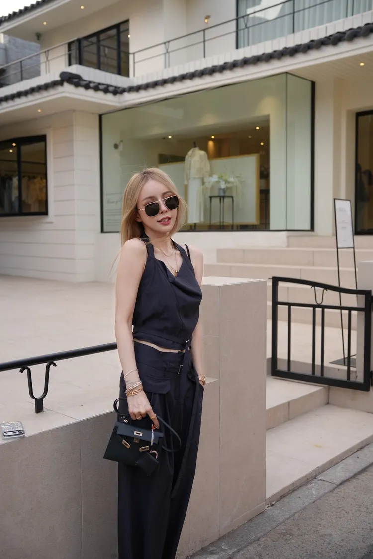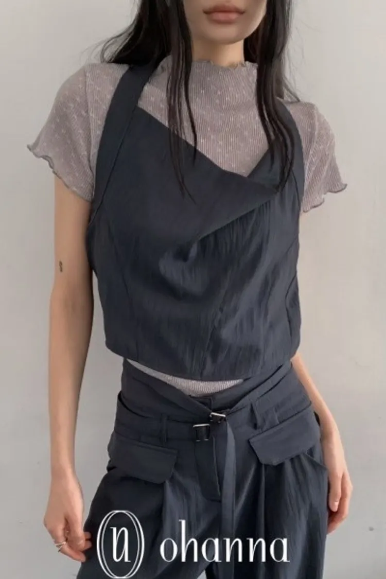 A046墨色領垂墜繞頸上衣