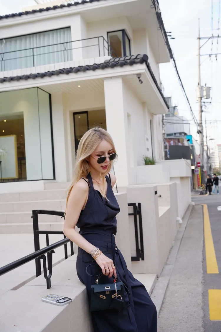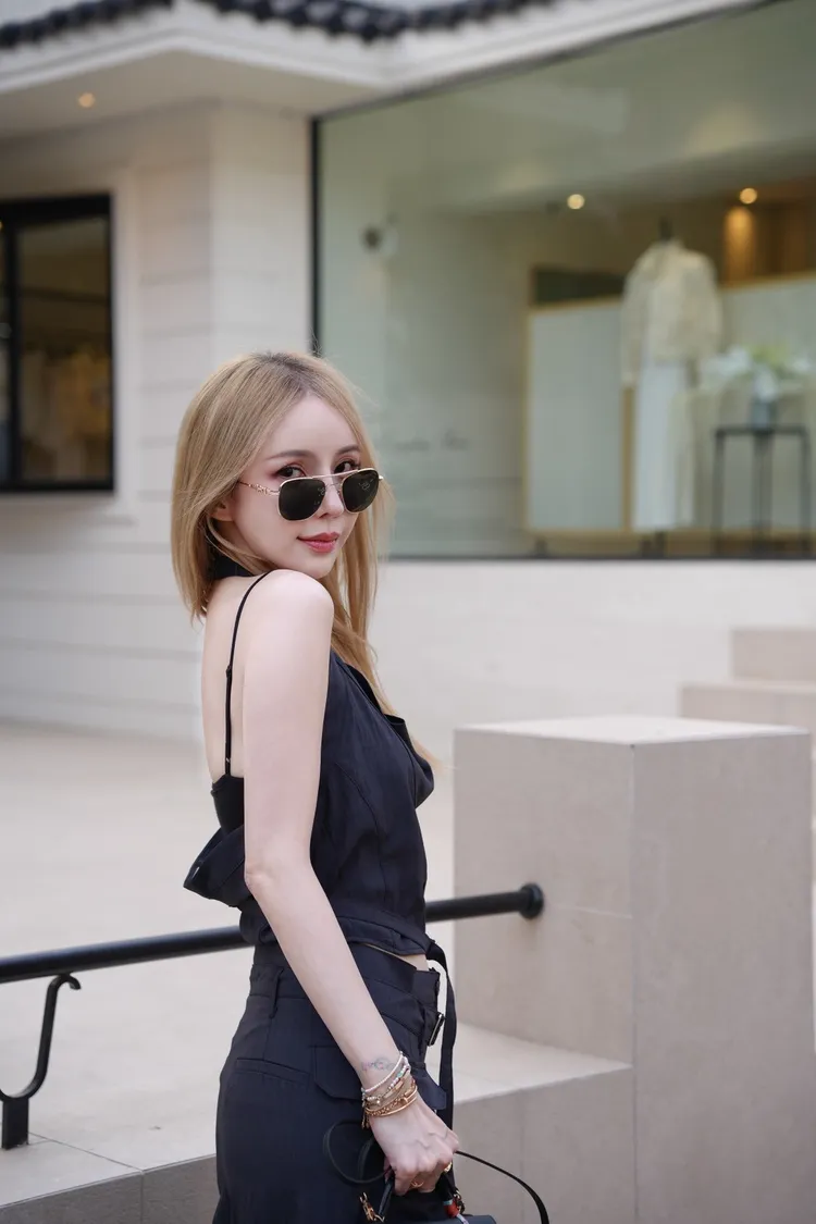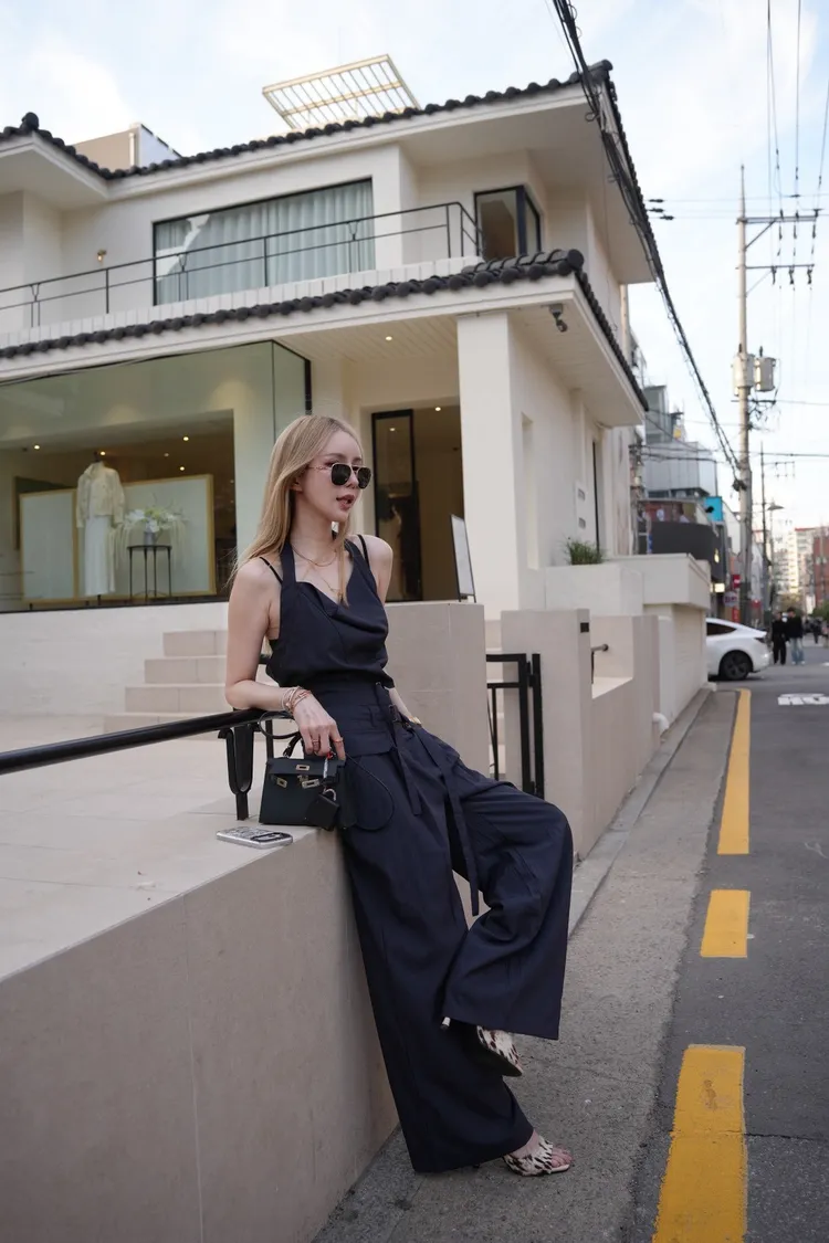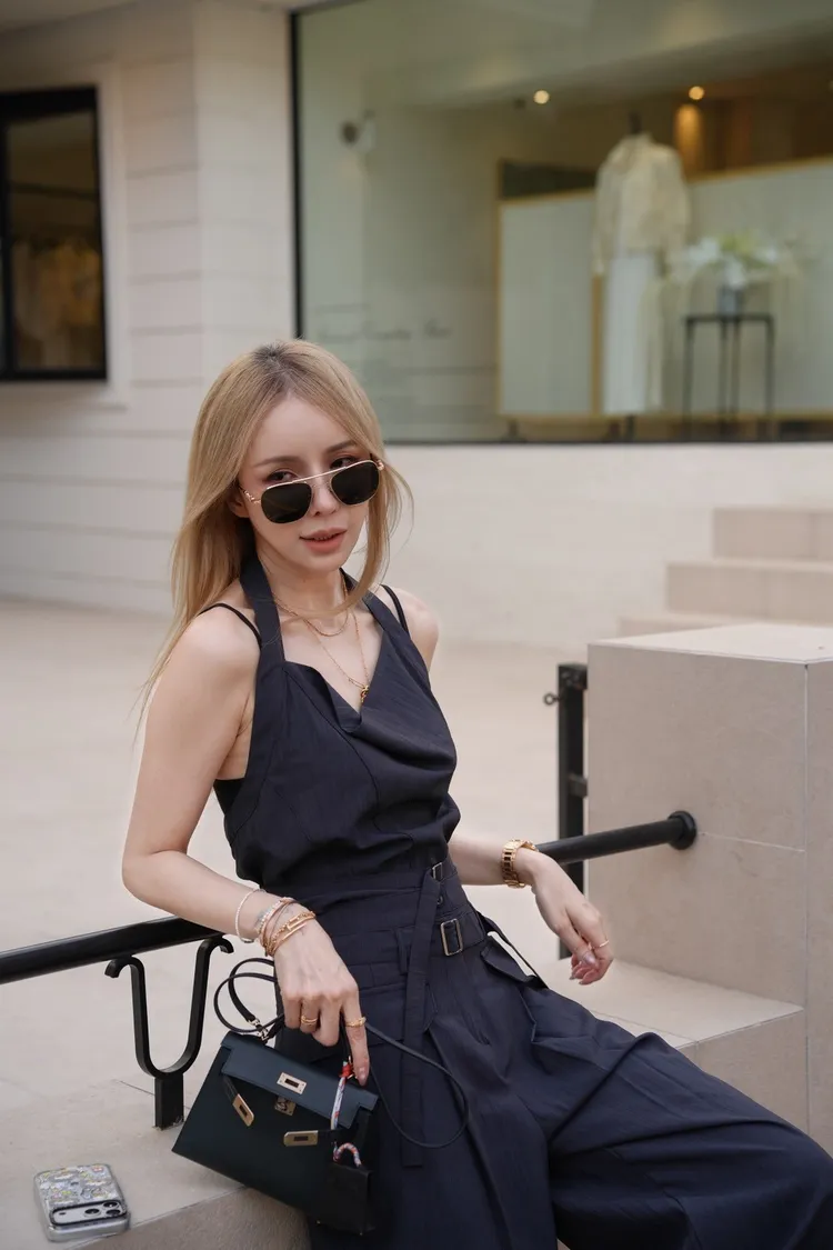 A046墨色領垂墜繞頸上衣