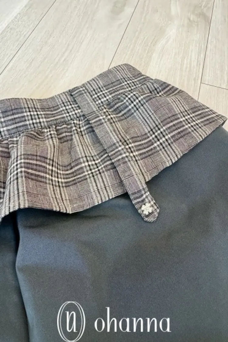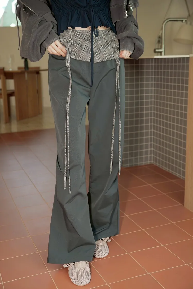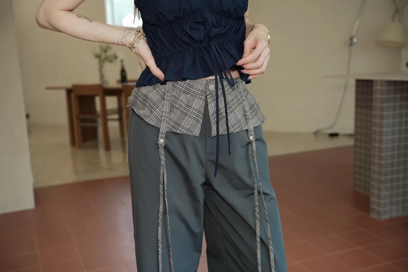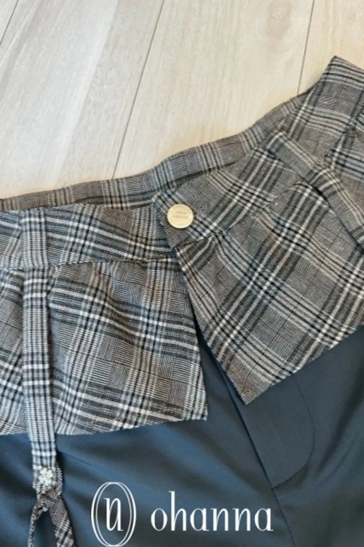 A053(自訂款)褲頭拼接格紋蝴蝶結造型長褲