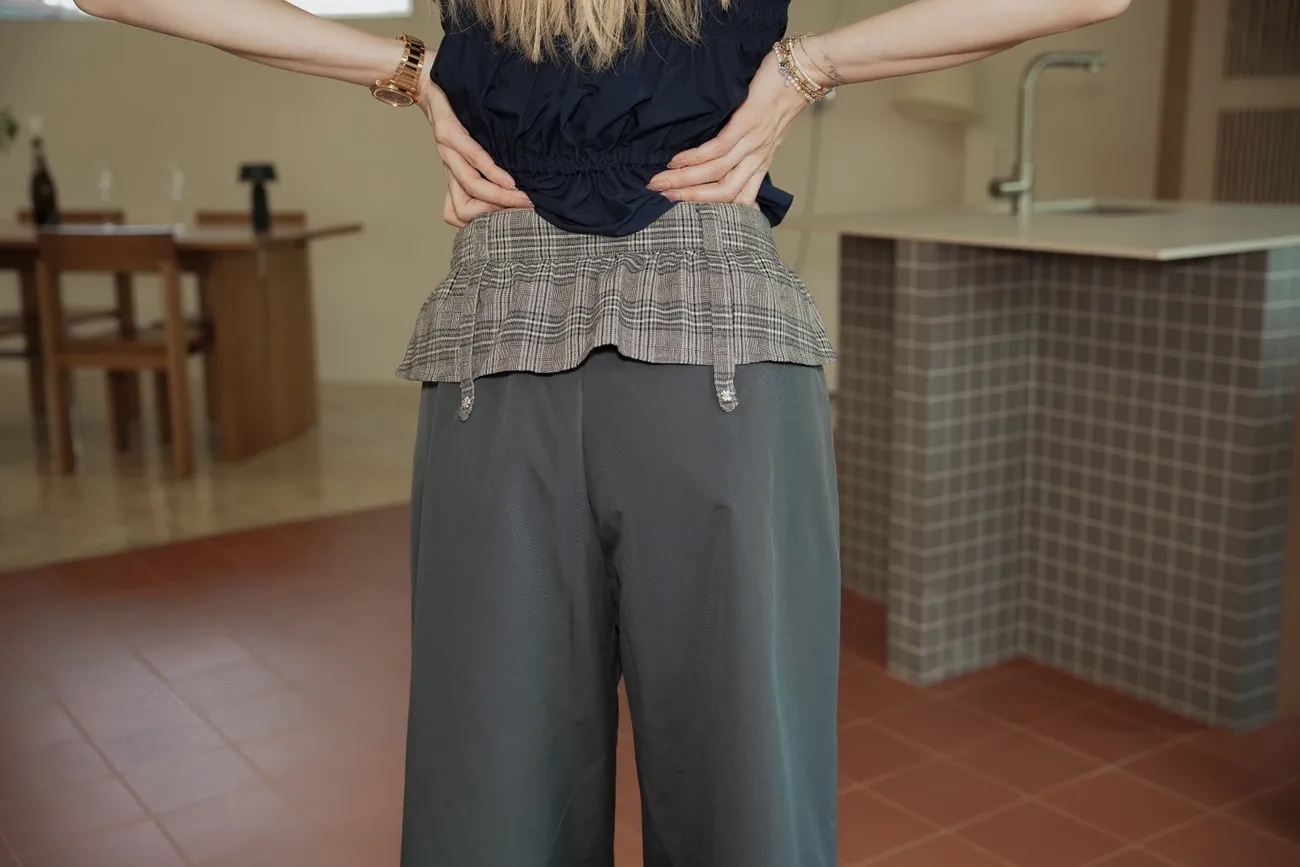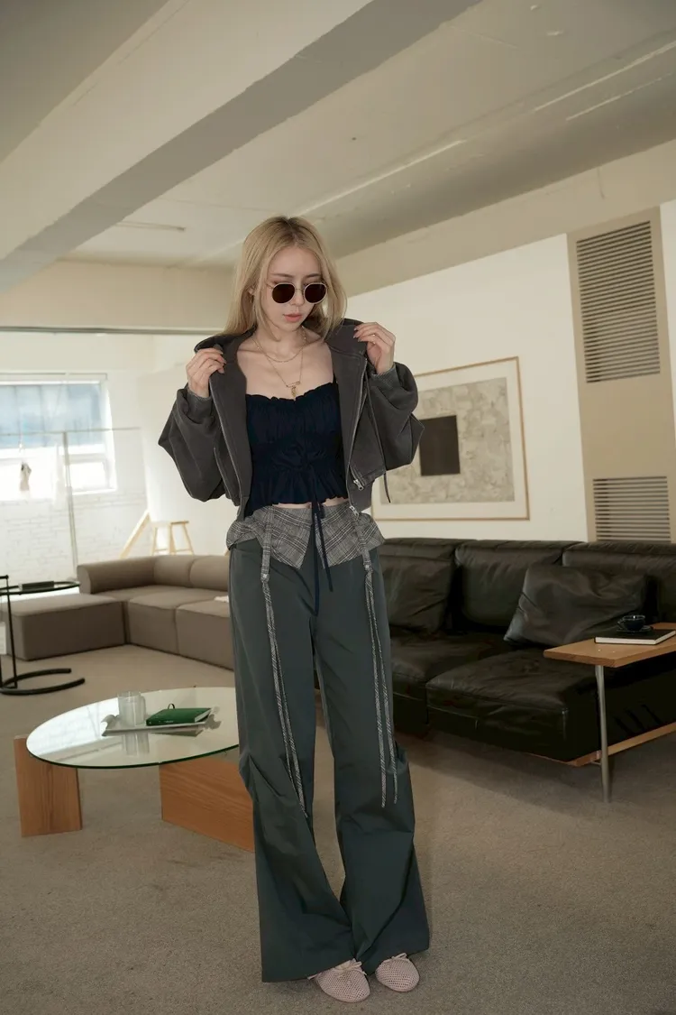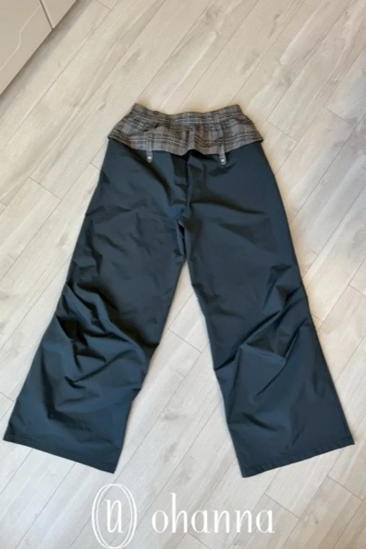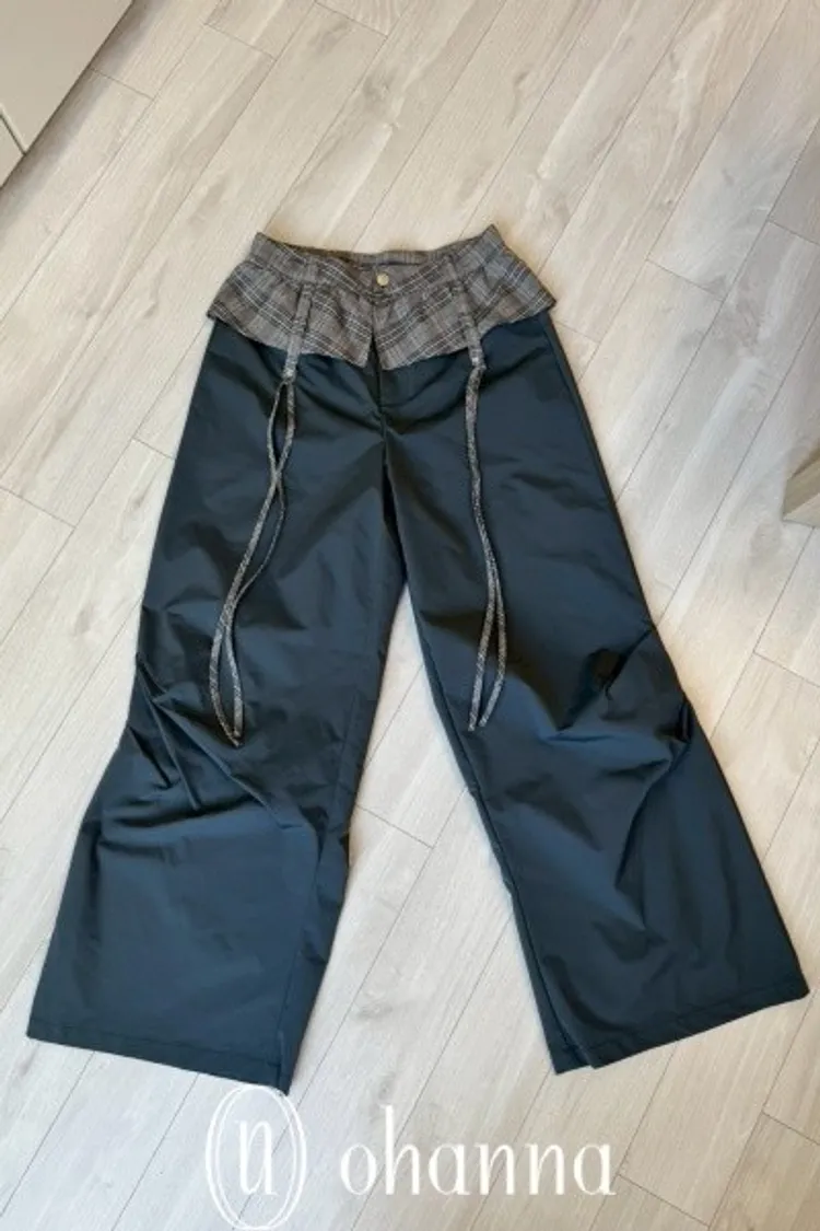 A053(自訂款)褲頭拼接格紋蝴蝶結造型長褲