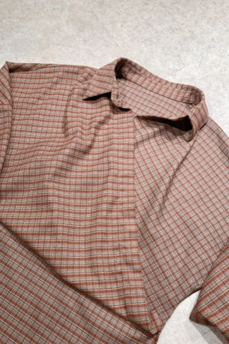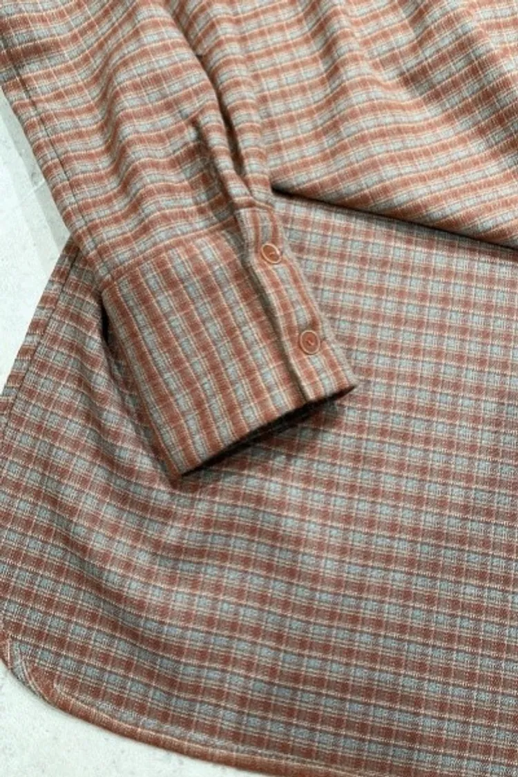 F002(自訂款)咖灰混色格紋前短後長上衣