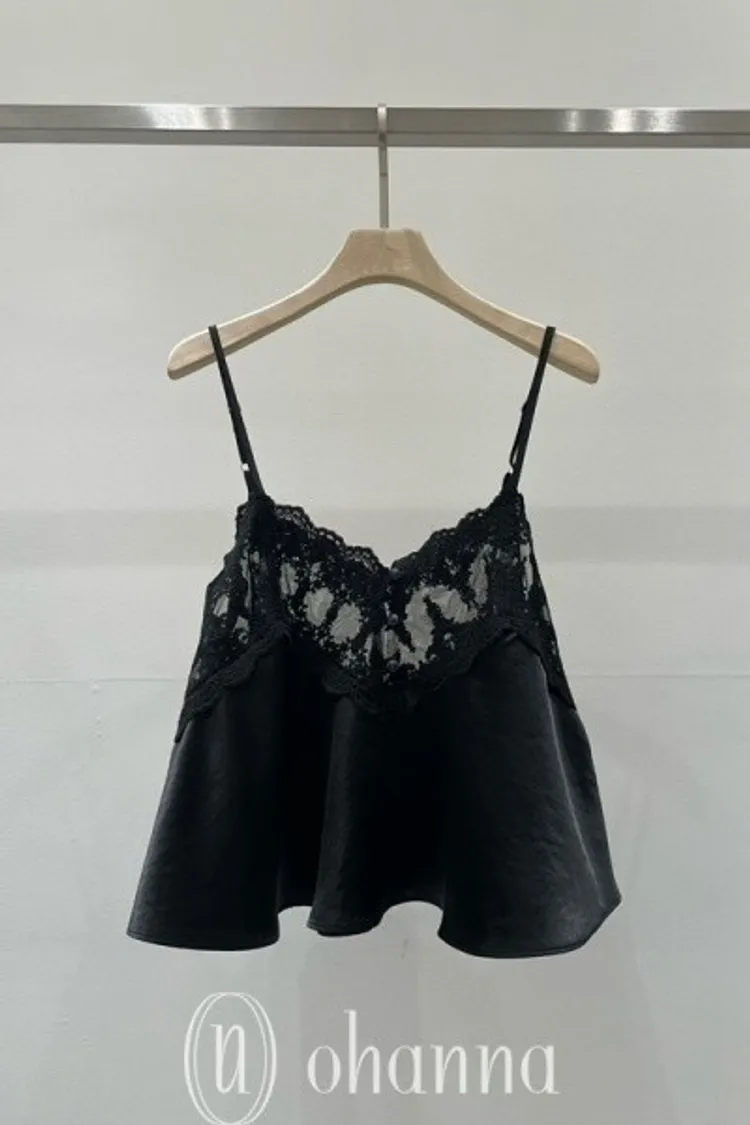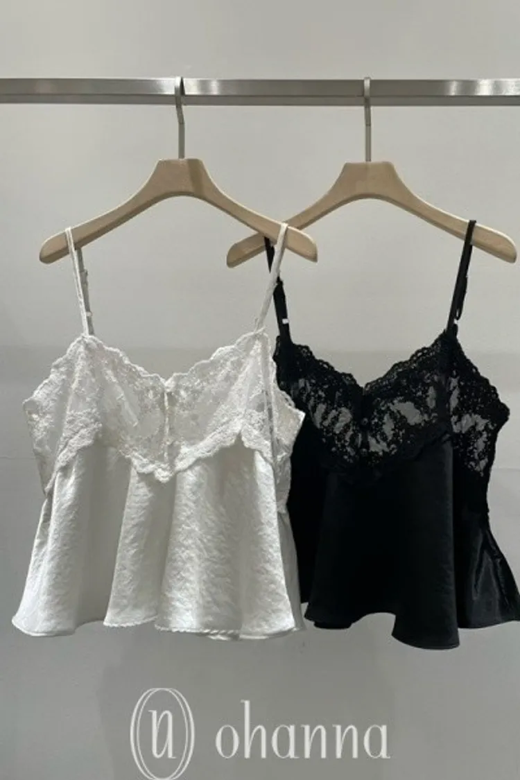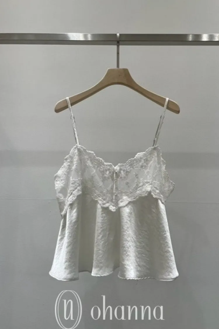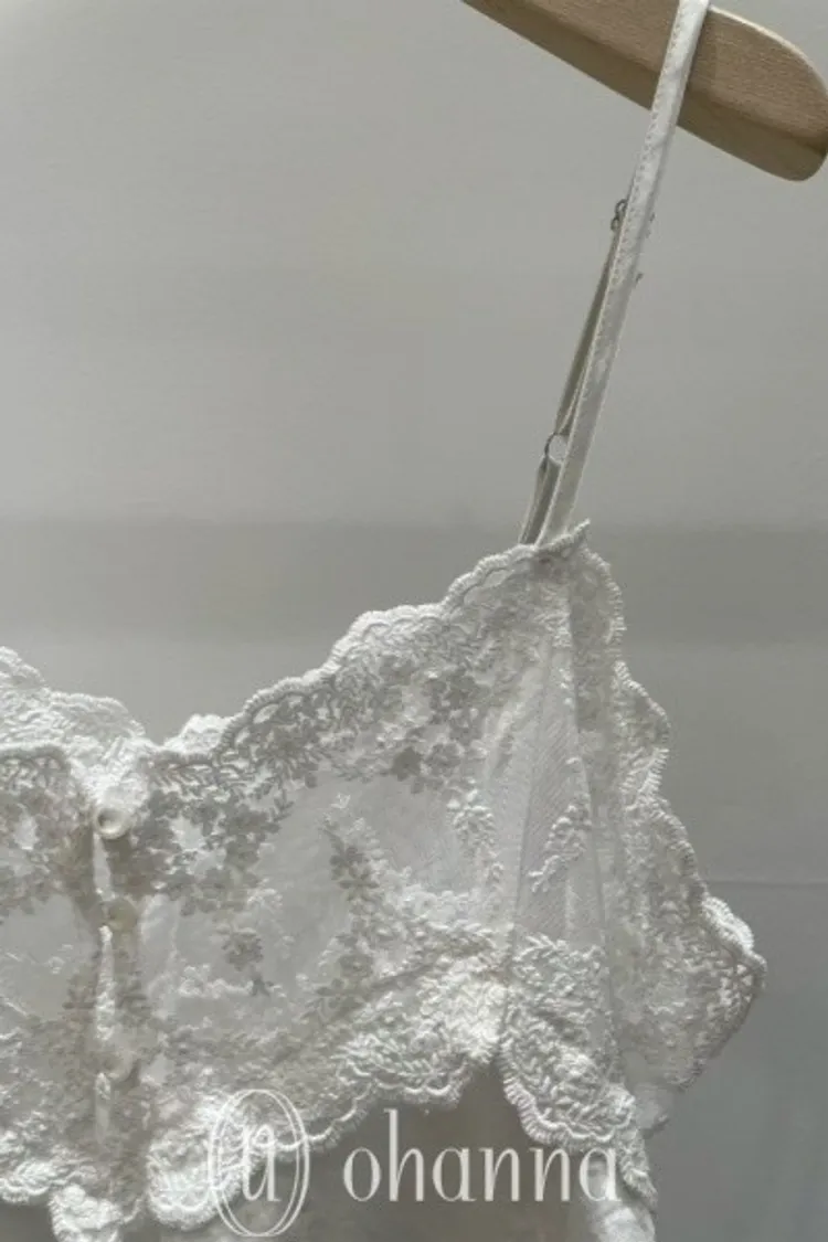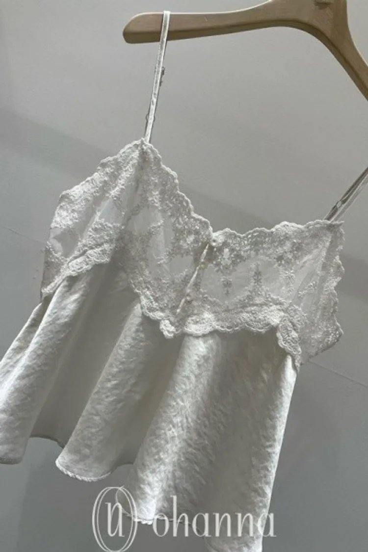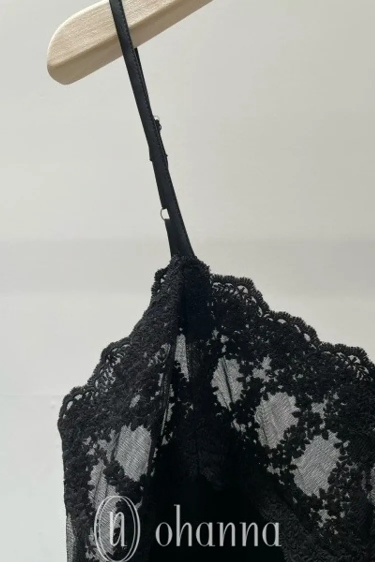 M042胸排扣刺繡紗網細肩帶背心
